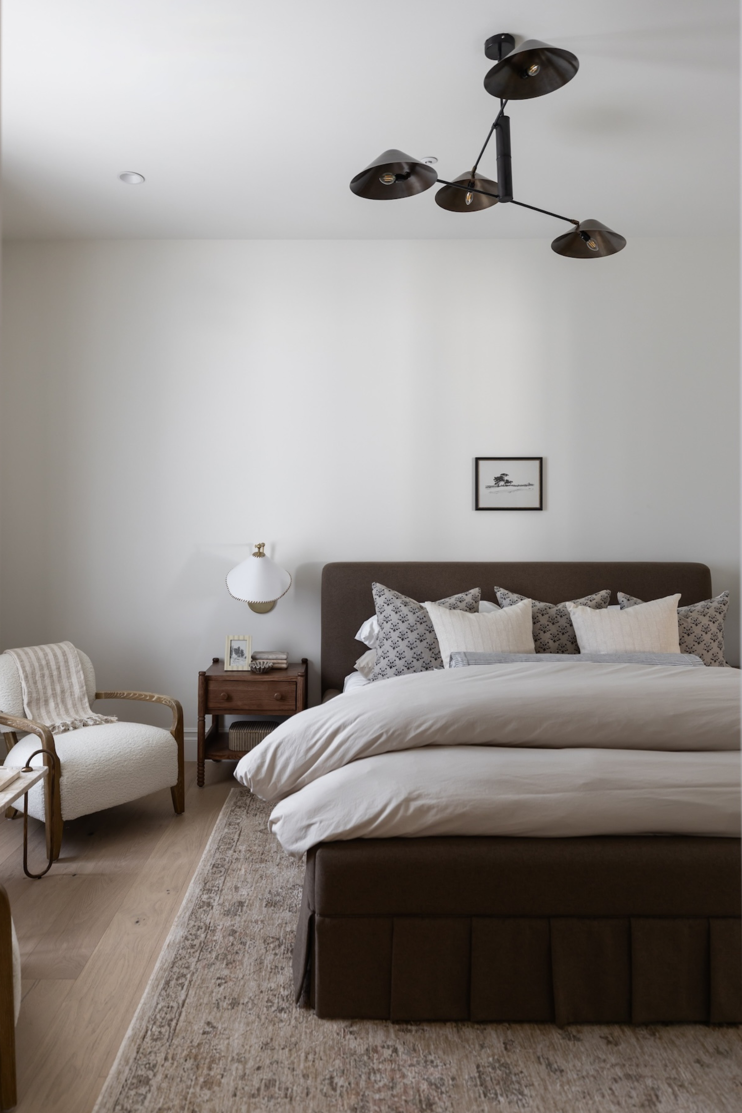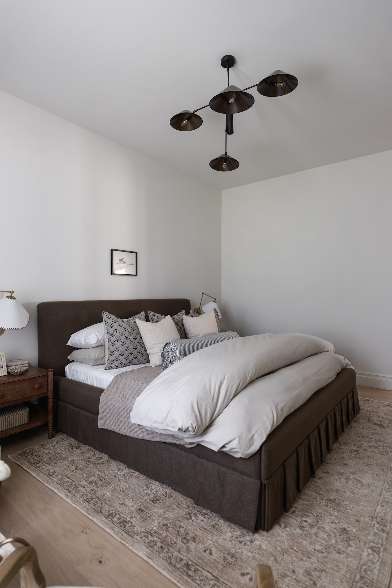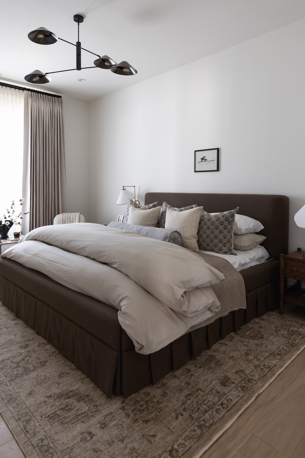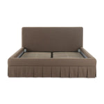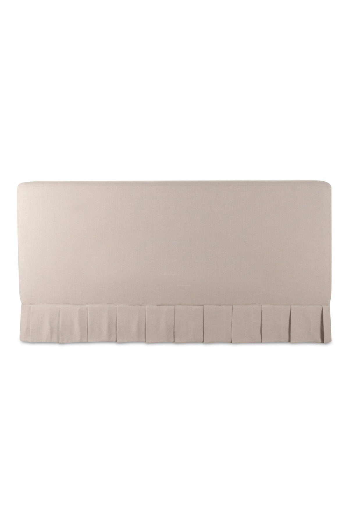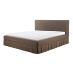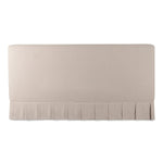 The Maren Bed exudes a soft, feminine aesthetic, upholstered in a warm, neutral fabric and featuring a playful yet refined box pleat base reminiscent of vintage finesse, straddling the line between contemporary form and traditional finish. With smoothly rounded corners and graceful, curving forms adding softness to the design, this piece is a study in elegance and subtlety. Slats included.