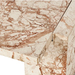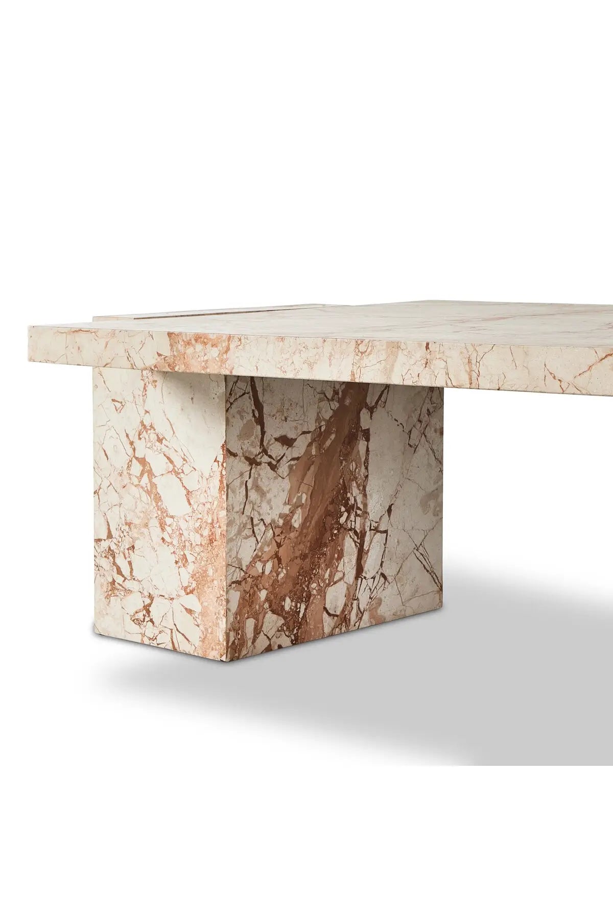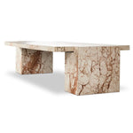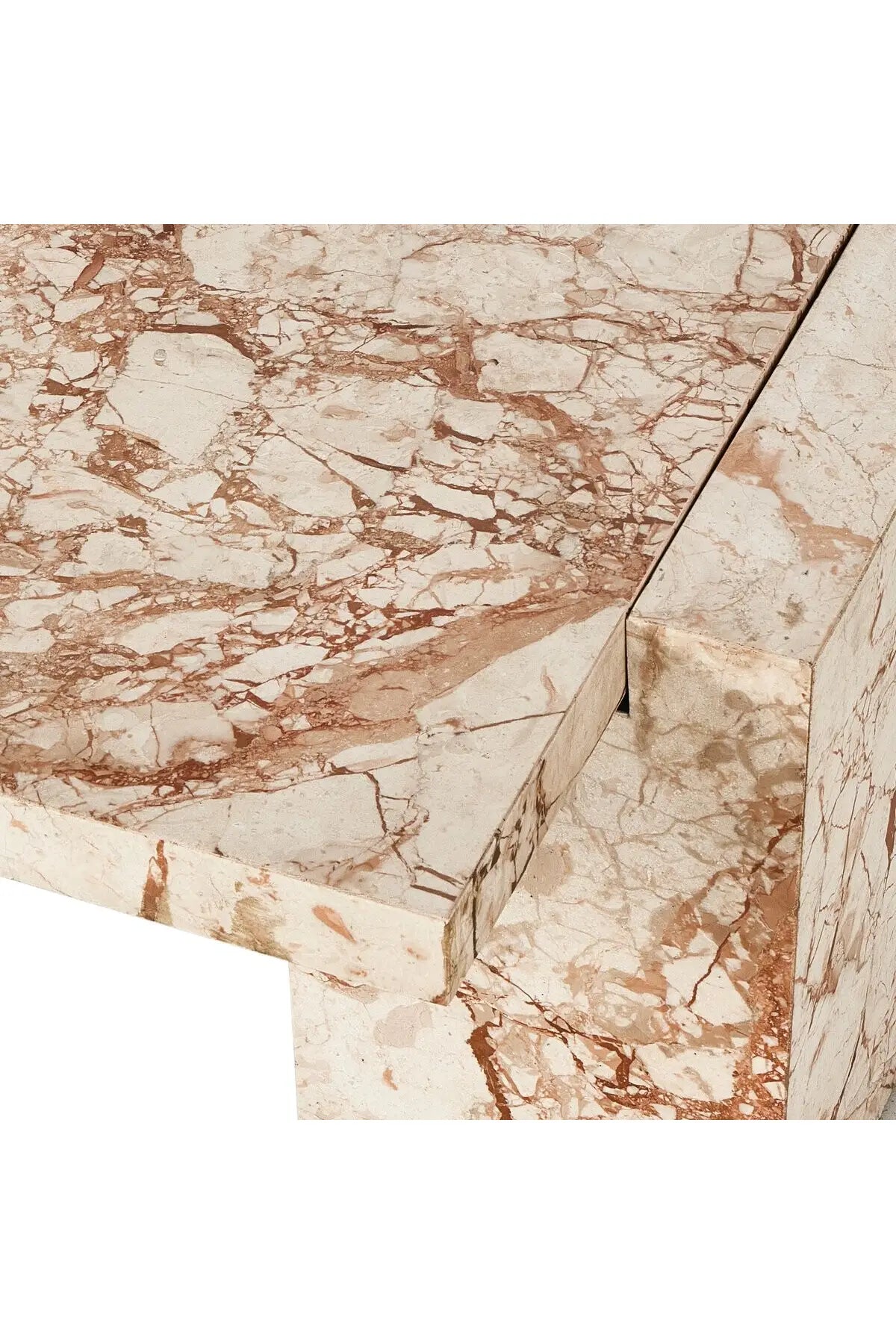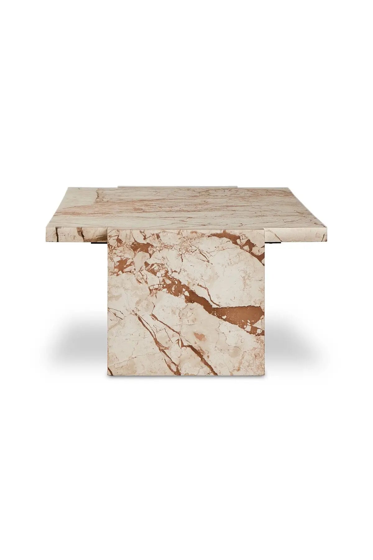 Meet the Romano Coffee Table. Solid marble sheets are laminated to create cubed cradle bases for a thick-cut tabletop. Heavy veining and natural swirls speak to the nature of marble, with each piece being entirely unique.