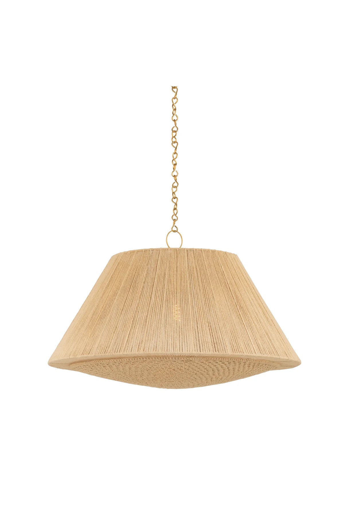 Meet the Mystic Pendant. Woven in different patterns and directions, the fine details of Mystic create a compelling display of craftsmanship. The side walls feature a traditional vertical string construction, while the lower surface has been constructed using a decorative crochet technique. The dyed jute fibers lend an air of natural softness, making this pendant perfect for eclectic or coastal design themes. Mystic is available in two sizes. Bulb(s) not included.