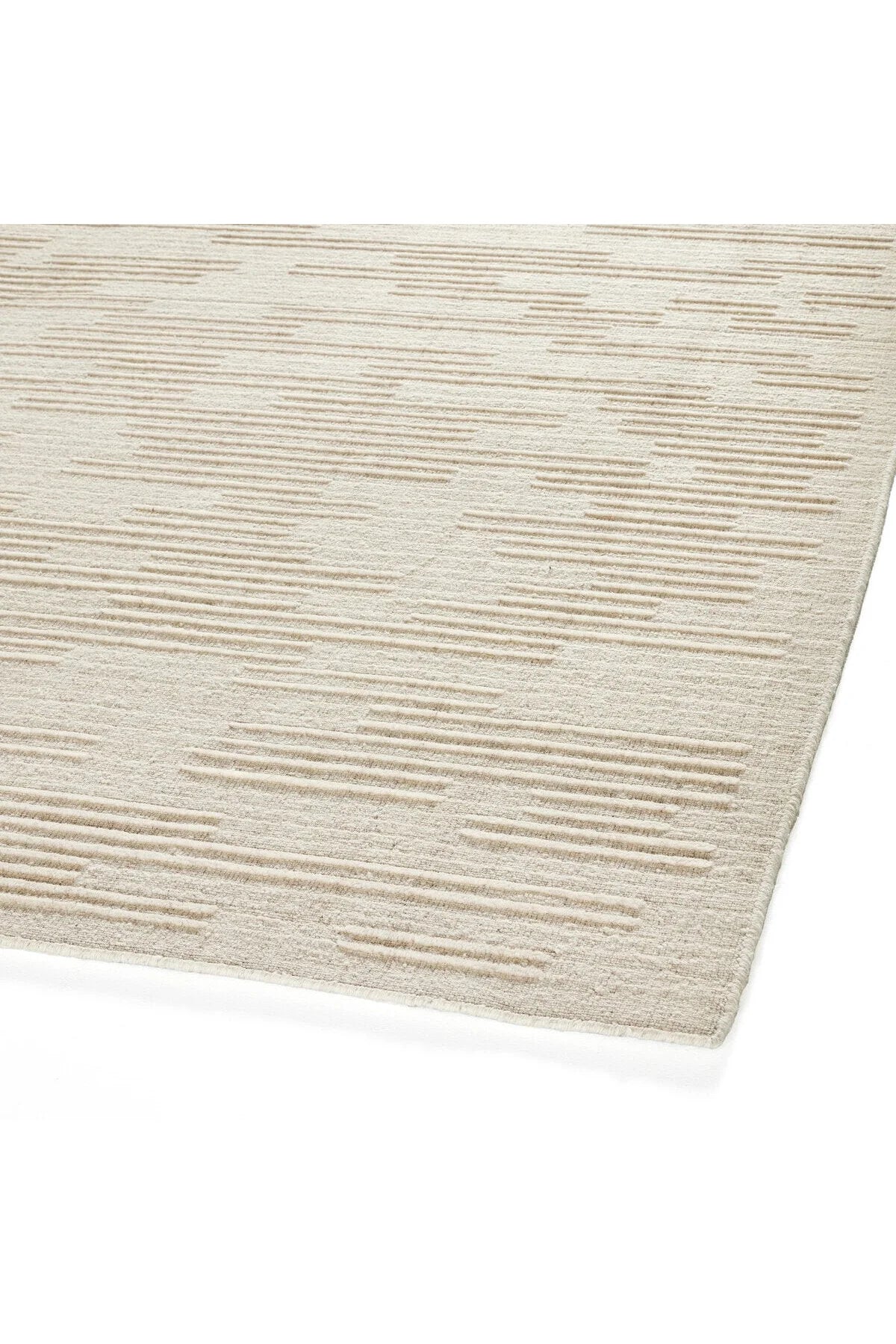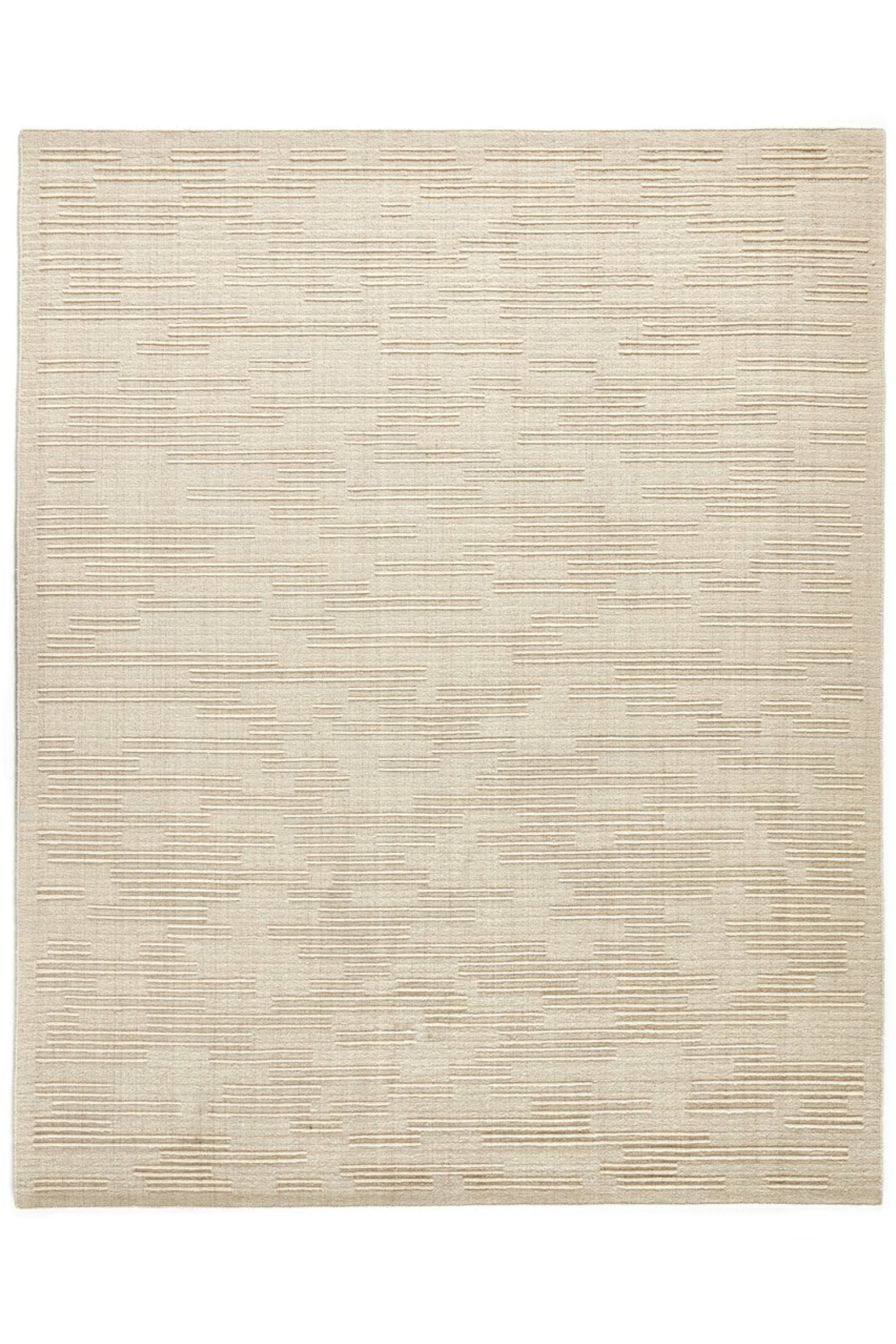 Meet the Geist Rug. Raised, broken stripes elevate this monochromatic area rug, creating a unique pattern that enhances its solid design.