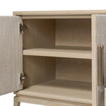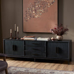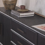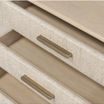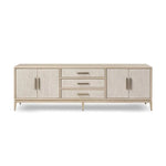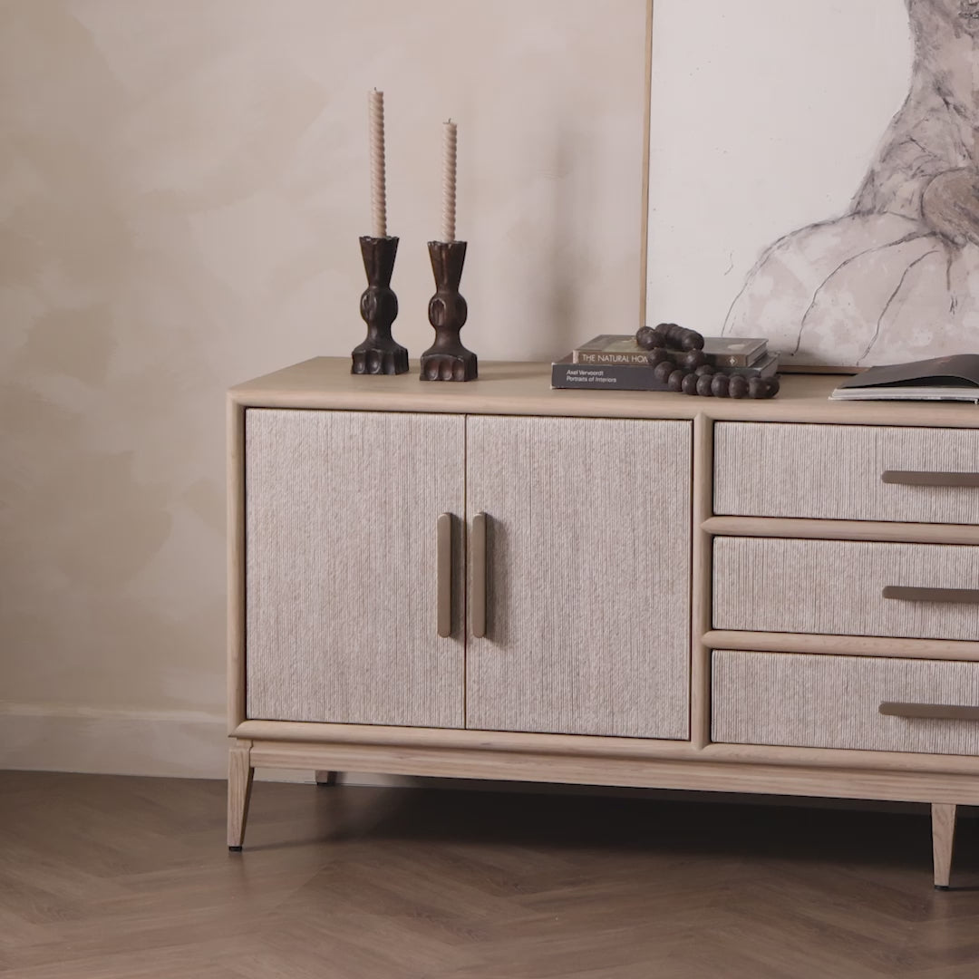 Meet the Rosenell Media Console. Elevate your media or living space with a console of light, natural oak. A smooth top pairs with three drawers and two cabinets each covered with woven paper cord. The result: a clean, Scandinavian-inspired look that will work into your collection beautifully.