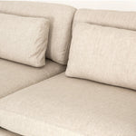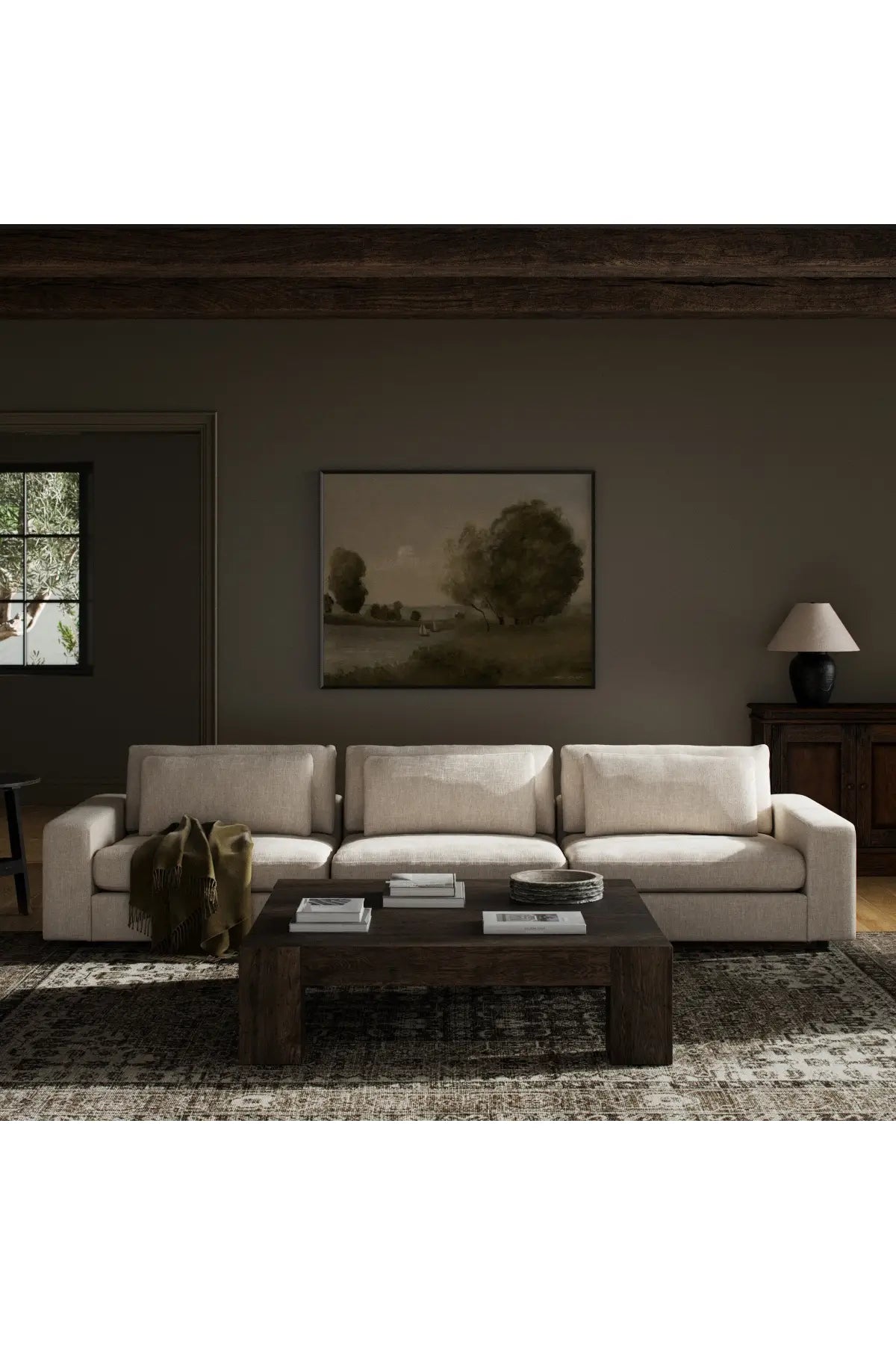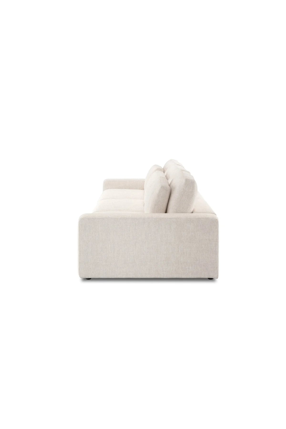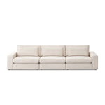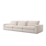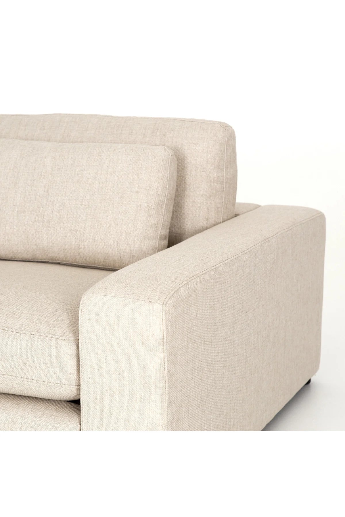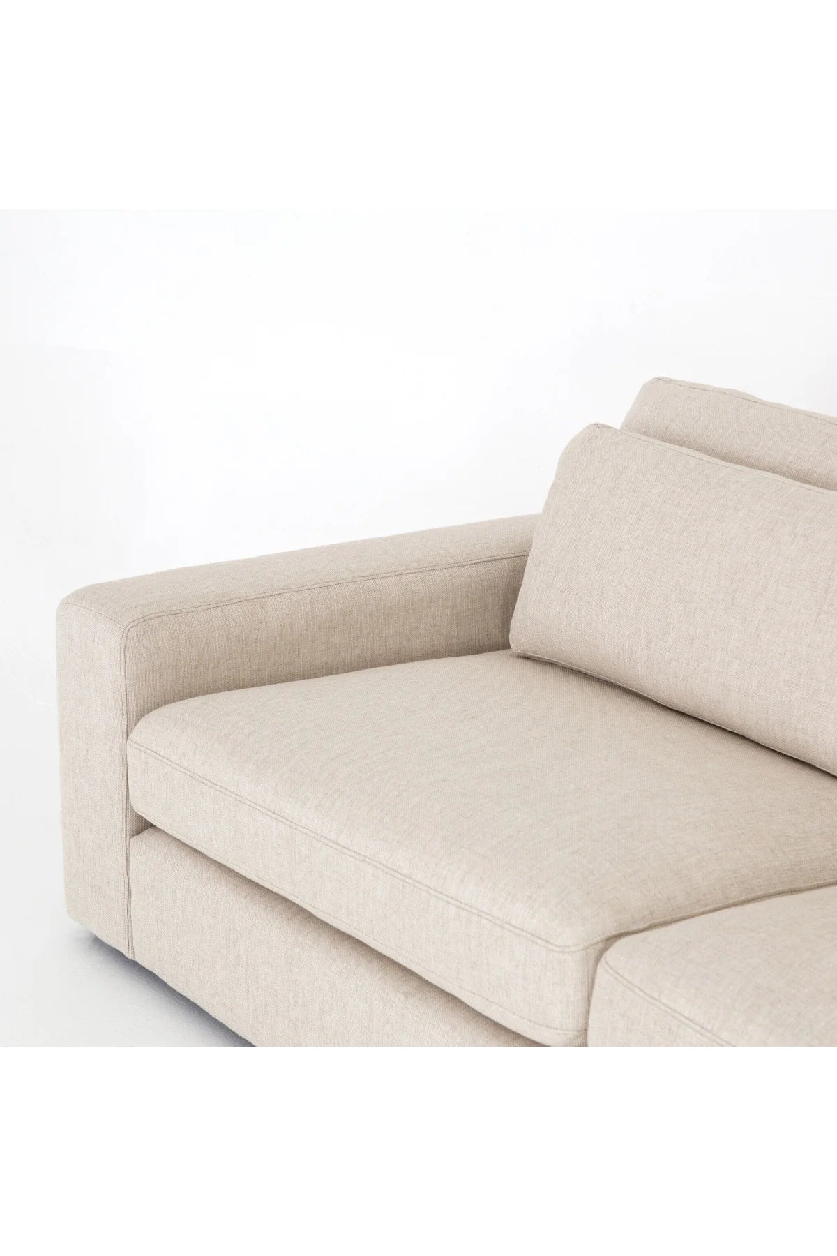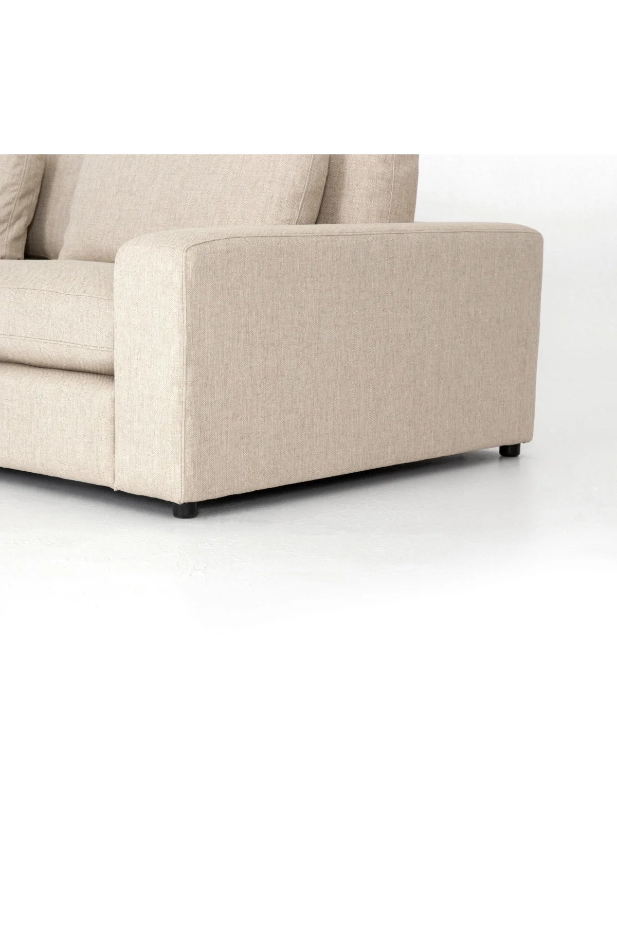 Meet the Bloor 3-Piece Sectional. Deep, low seating says relax. A flexible, one-armed chair is covered in an inviting, durable light neutral woven fabric. Modular components allow the perfect combination for any space.