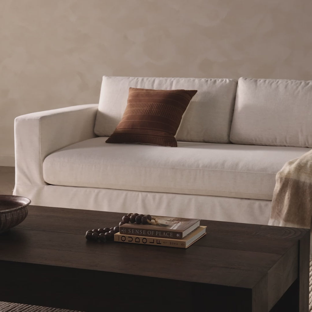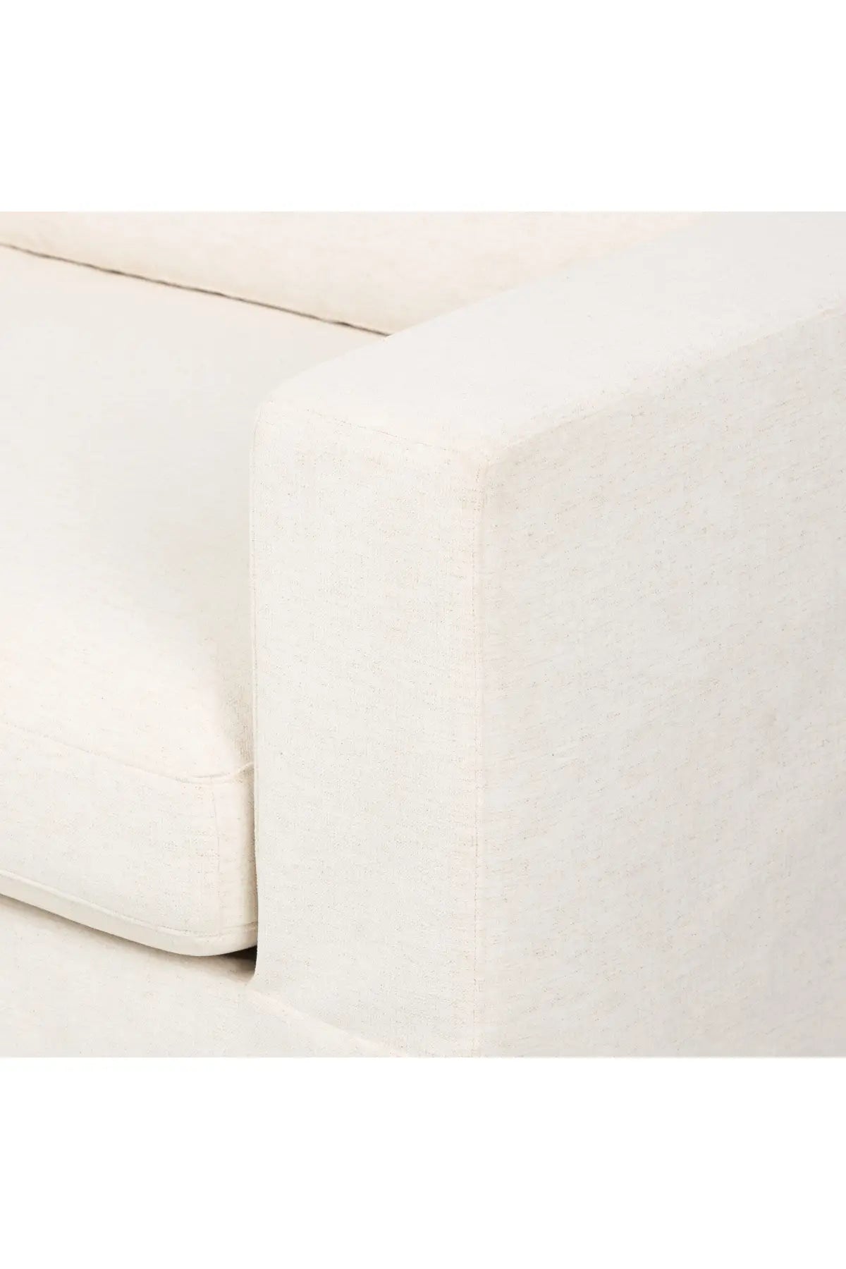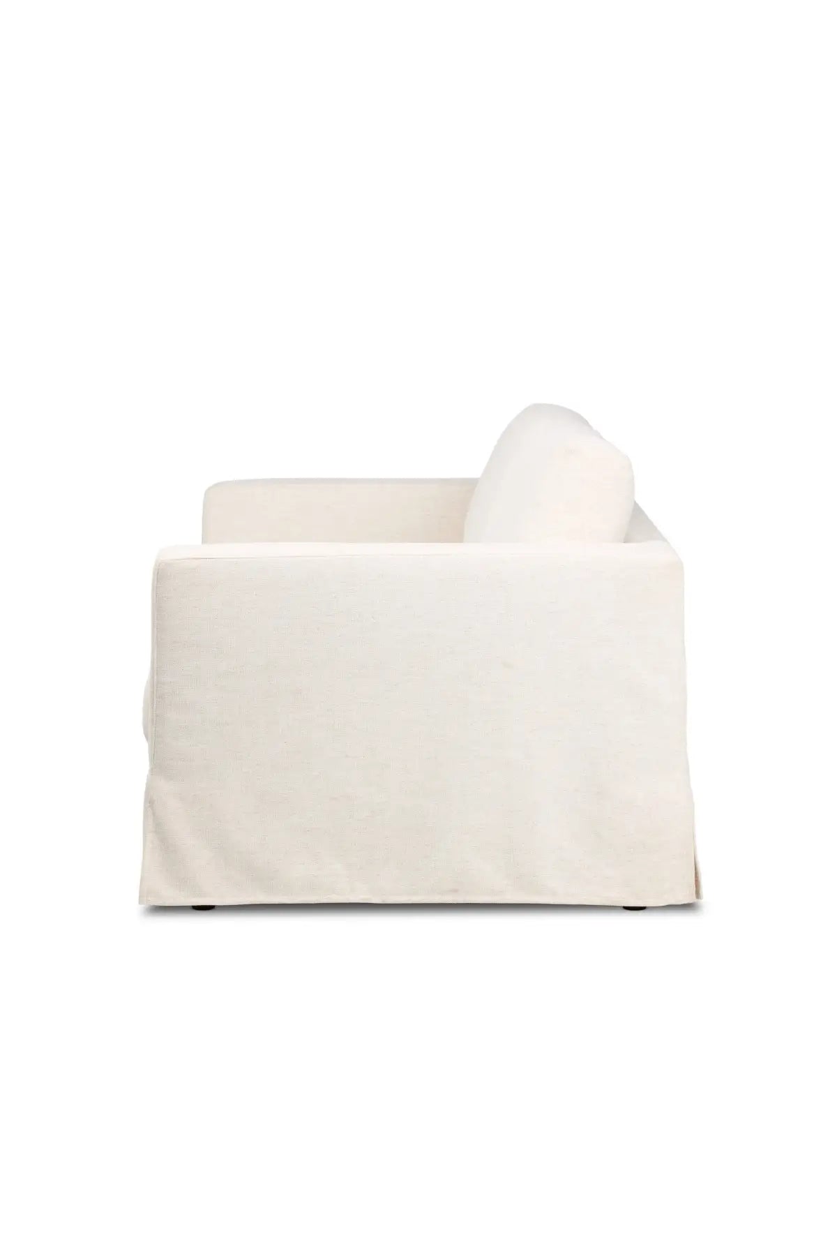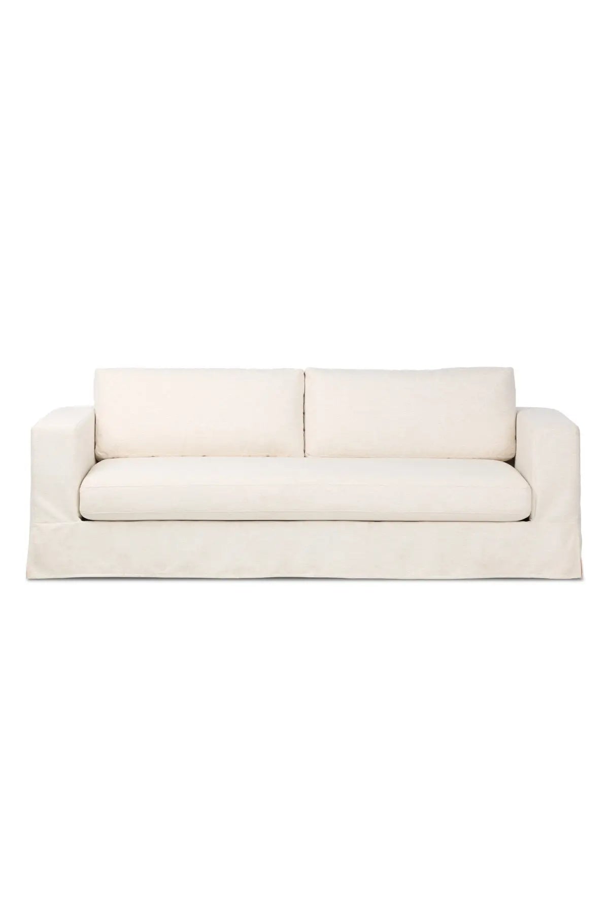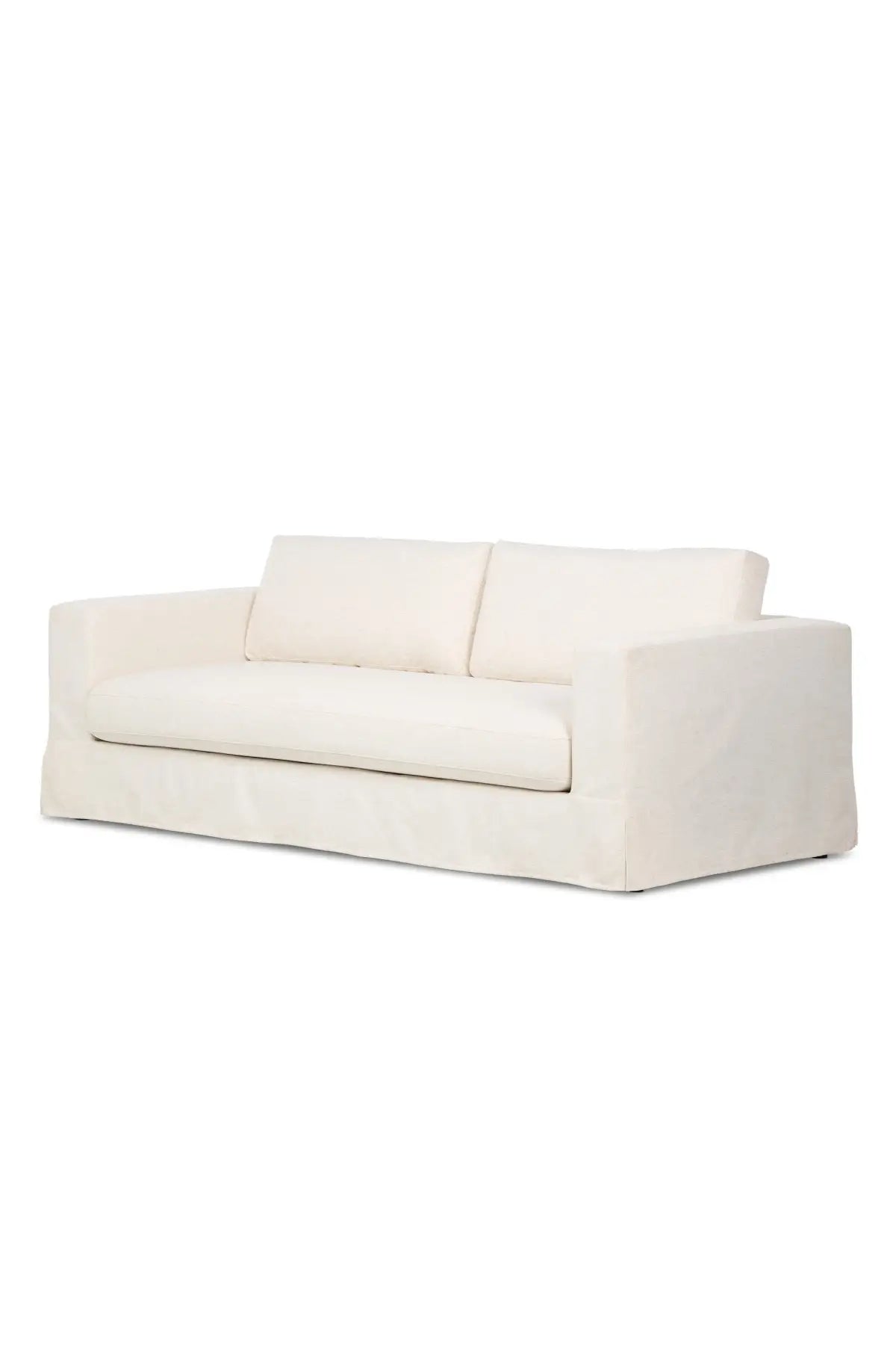 Meet the Tovana Sofa. This relaxed slipcovered sofa brings a clean, laid-back look to the living room. Deep pleats and a draped silhouette highlight the wide arms and oversized bench cushion, offering inviting comfort with a clean, modern aesthetic. Upholstered in snow-white Crypton® performance fabric, the slipcover is non-removable to ensure its perfectly tailored look stays intact. Crypton® performance fabric is specially engineered for protection against stains, moisture and odor.