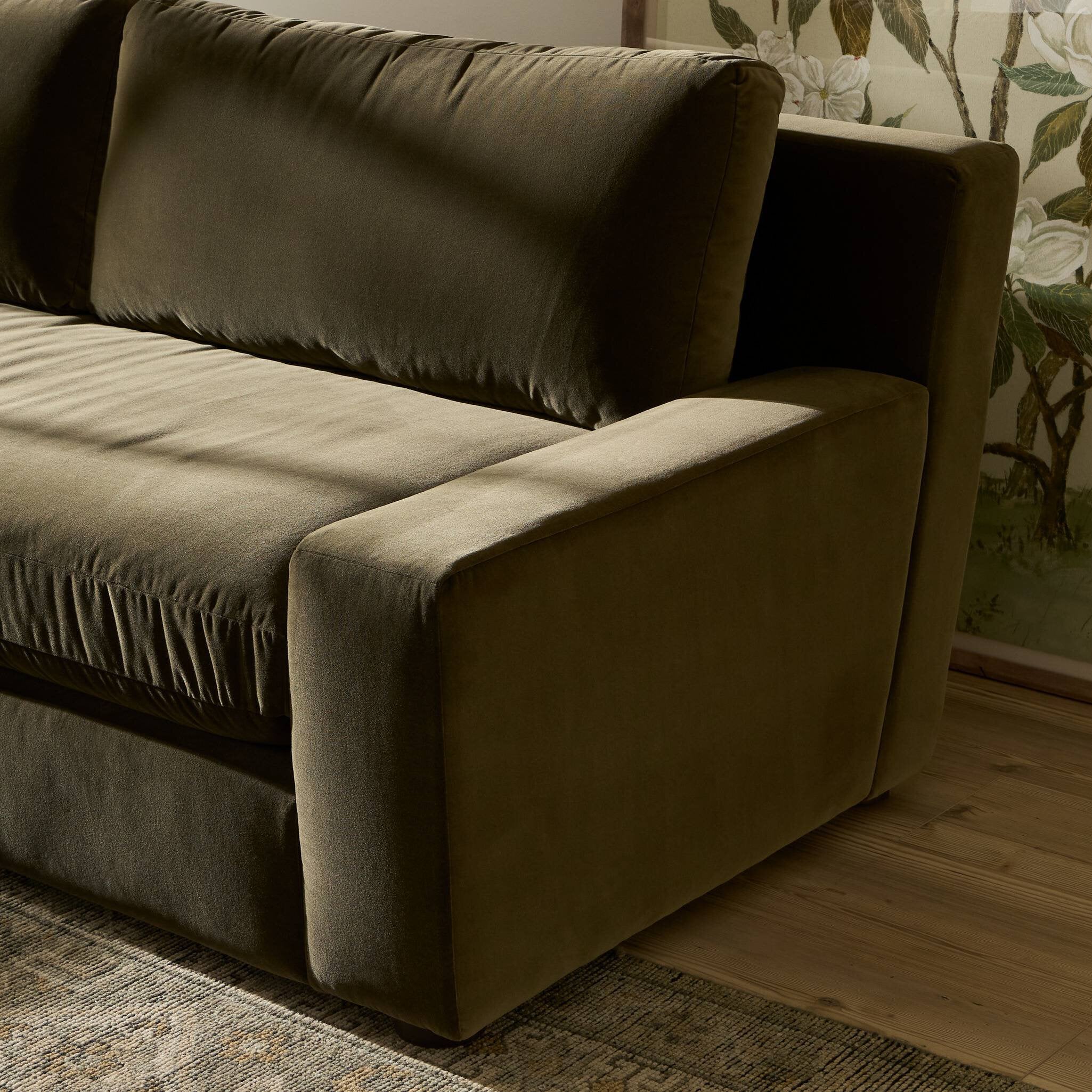 Meet the Yelena 3-Piece Sectional. Add a hint of modern to your space with the streamlined silhouette and dramatic side profile of this track arm sectional. Designed with subtle tapering seen from the side and inviting bench-style seating. Crafted with extra plush foam cushions and S-spring suspension.