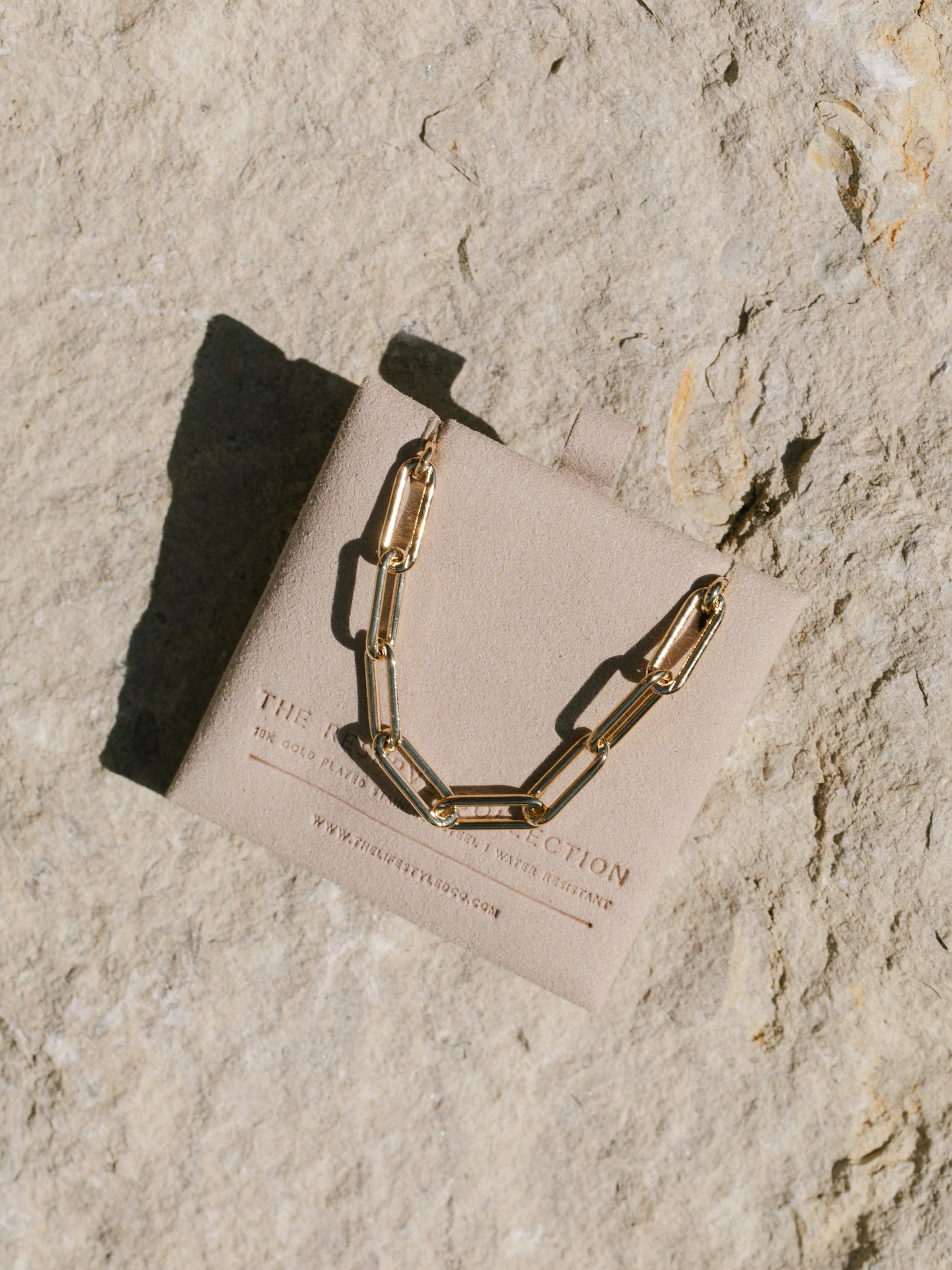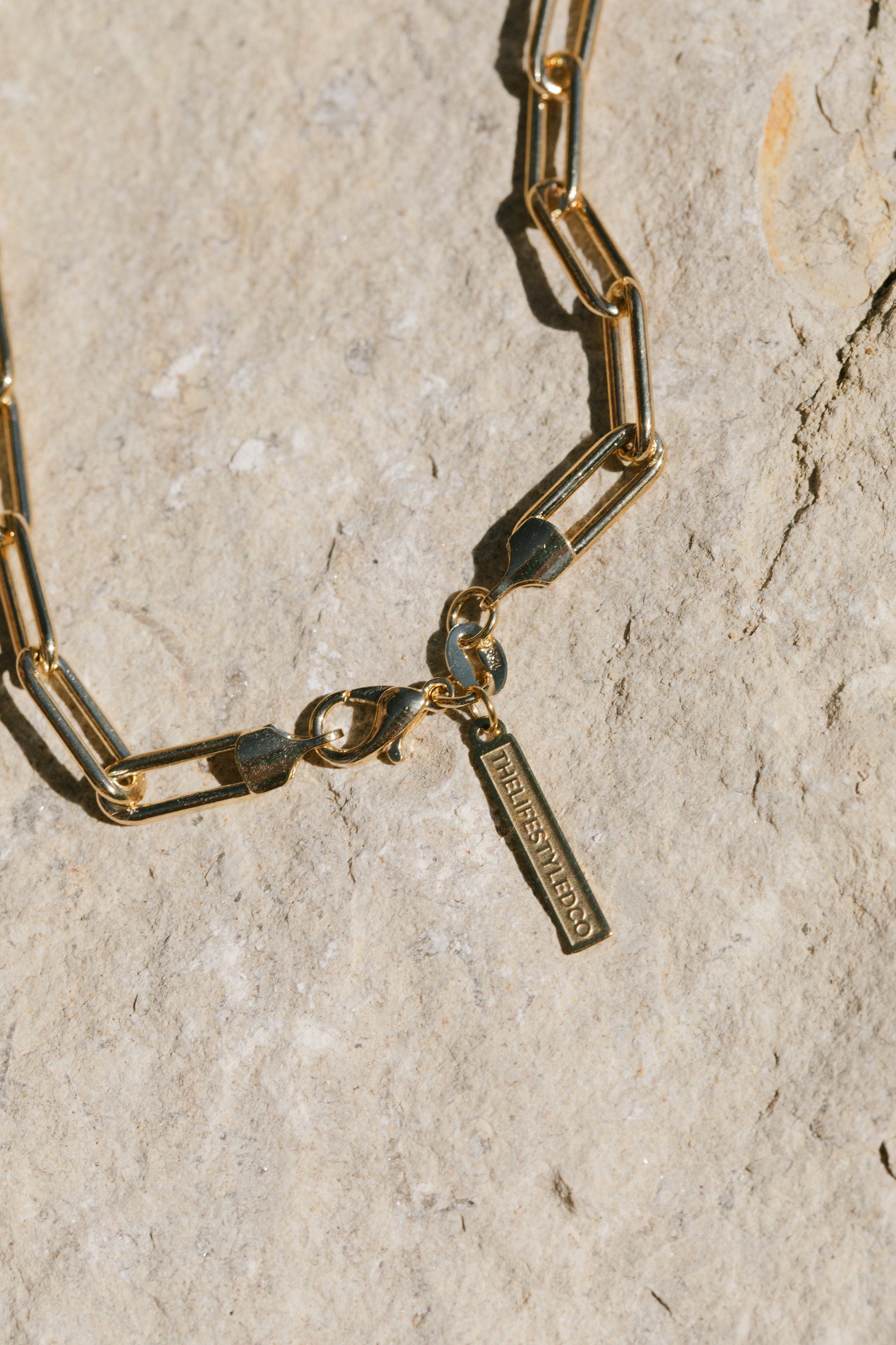 STYLE AND FIT NOTES: The Sand Link Necklace is the staple necklace that we ALL need! Paper clip chain detail that works with any ensemble. Toss on with your look for an instant refresh that will have you looking polished and elevated!