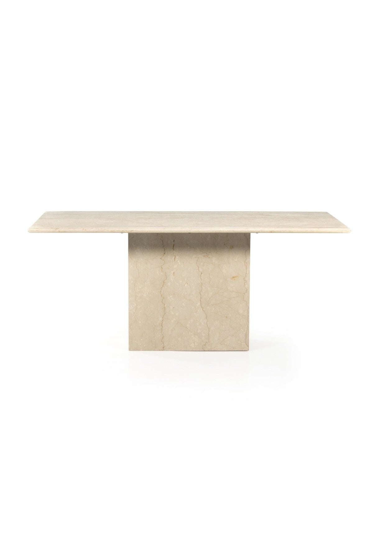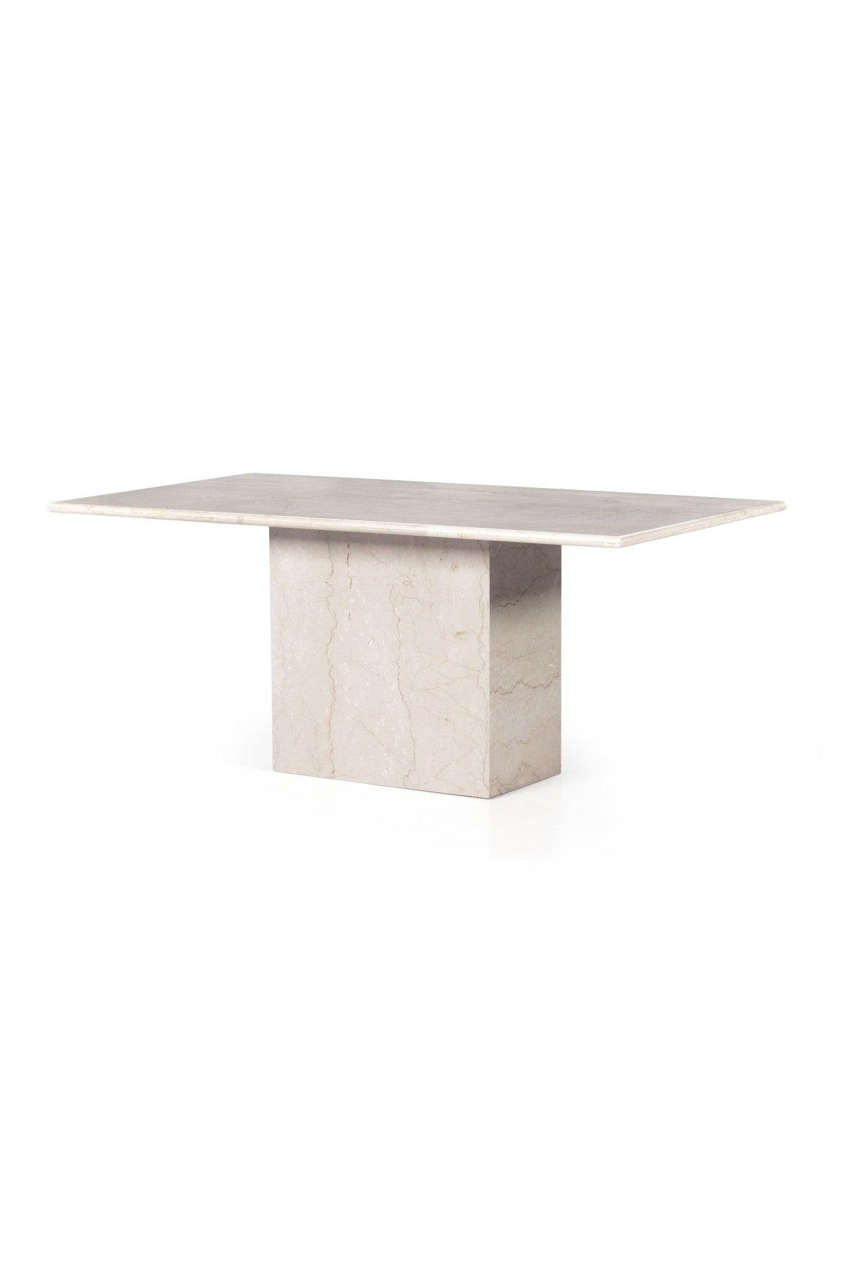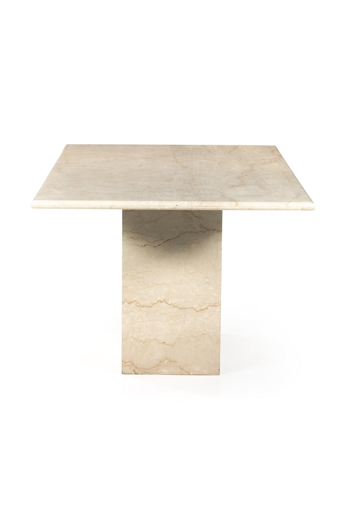 Meet the Arum Dining Table. Inspired by grand Italian design of the 1970s, a monolithic dining table of solid cream marble seats six comfortably.