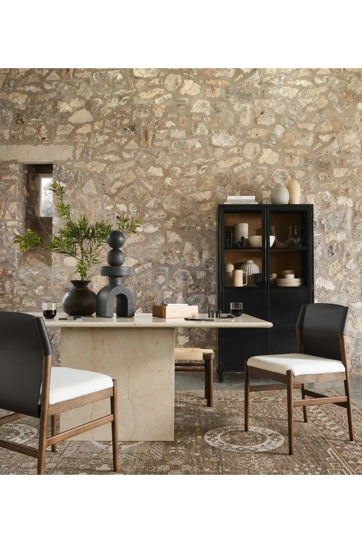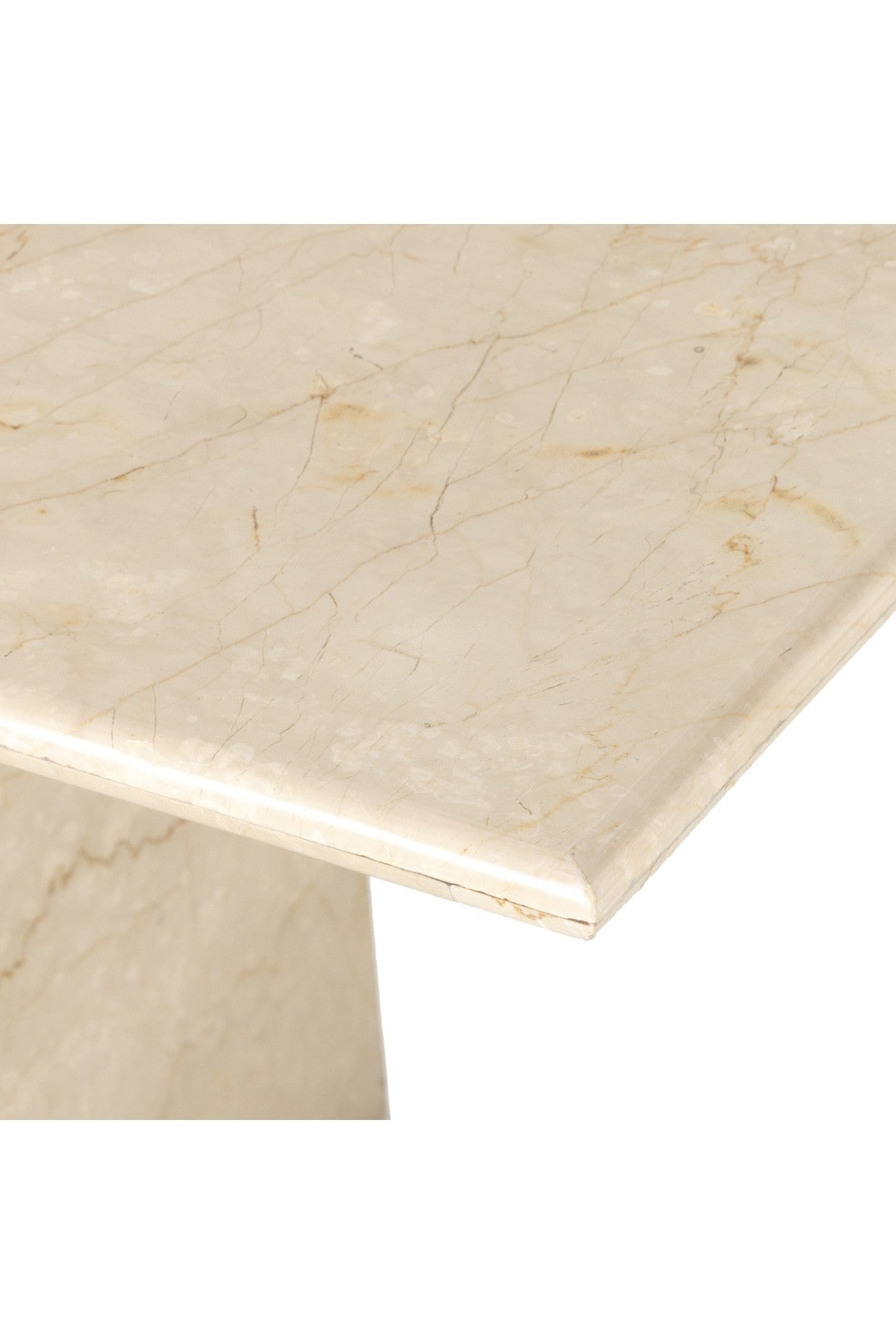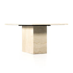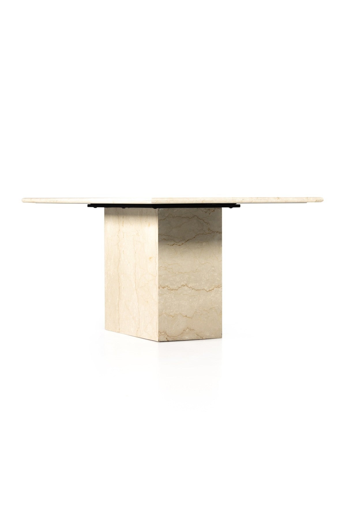 Meet the Arum Dining Table. Inspired by grand Italian design of the 1970s, a monolithic dining table of solid cream marble seats six comfortably.
