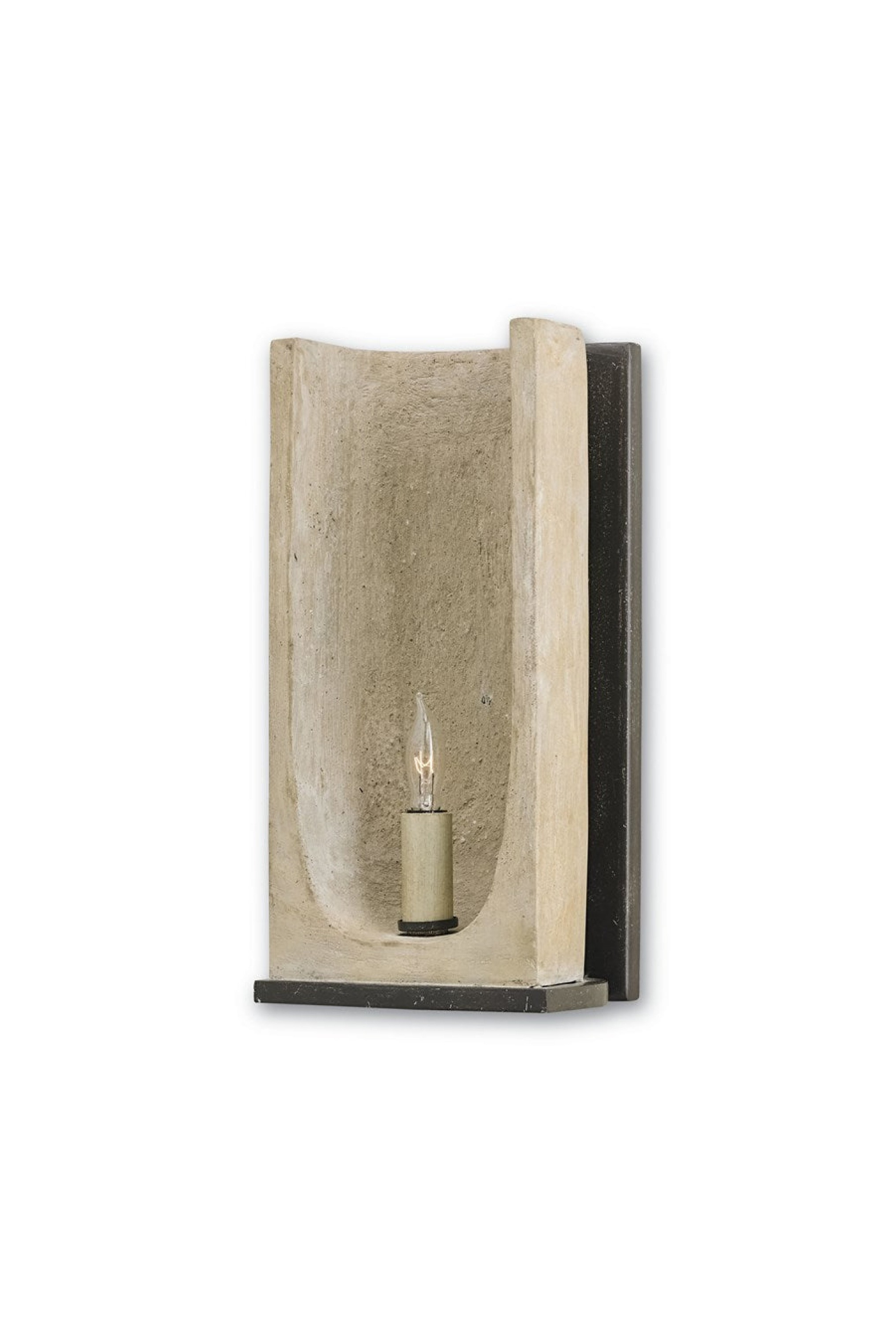 Our Rowland Wall Sconce has a rustic allure furthered by the way the single bulb is recessed, by the Portland finish on the concrete, and by the aged steel finish on the wrought iron. Bulb(s) not included.
