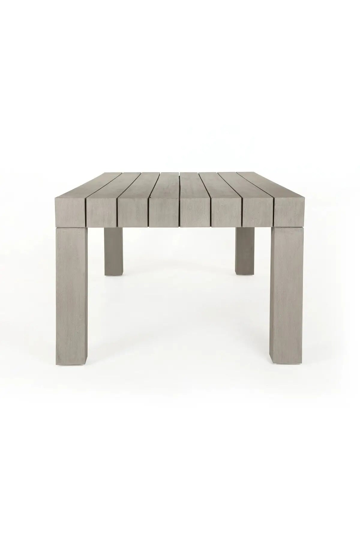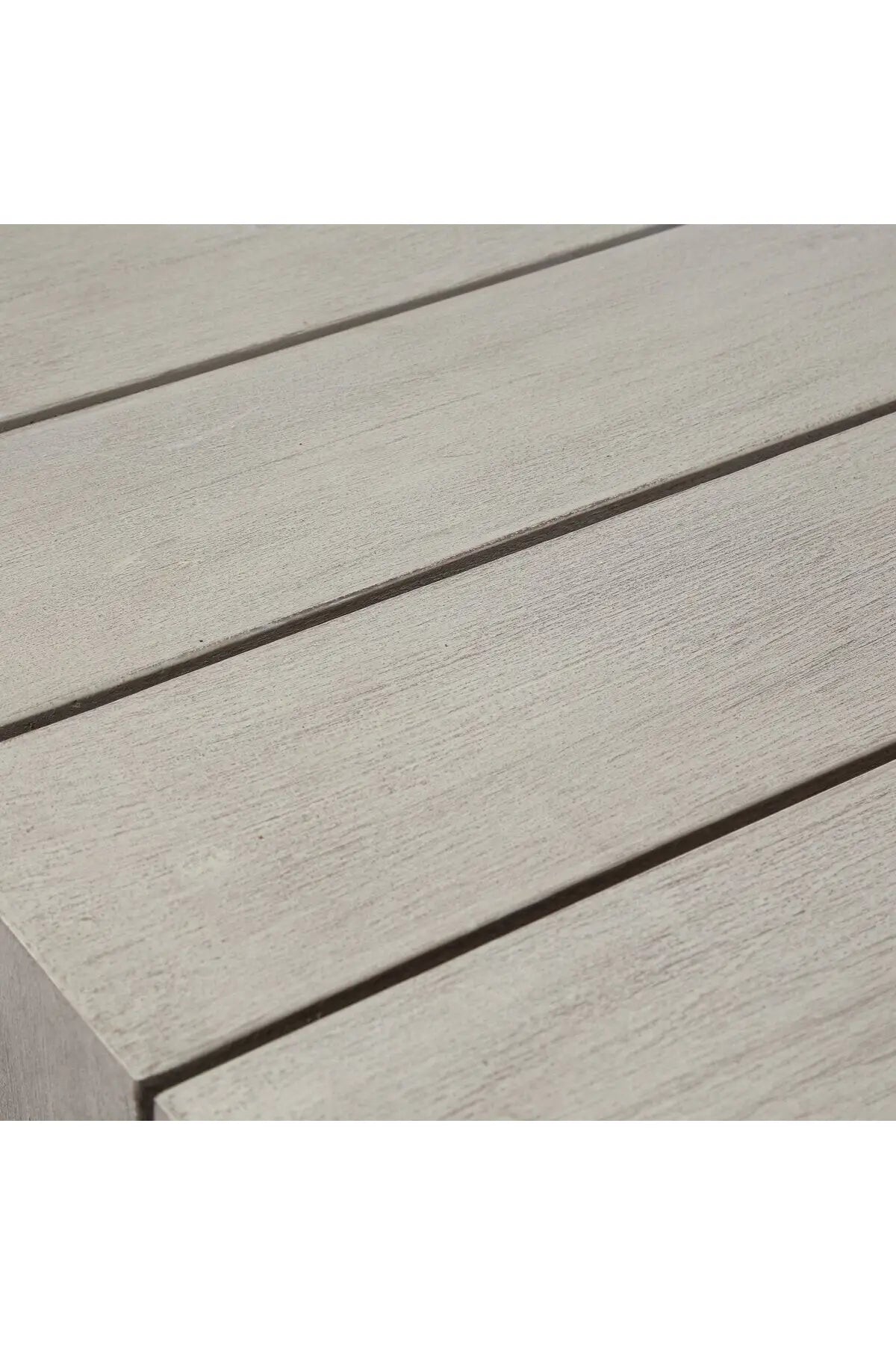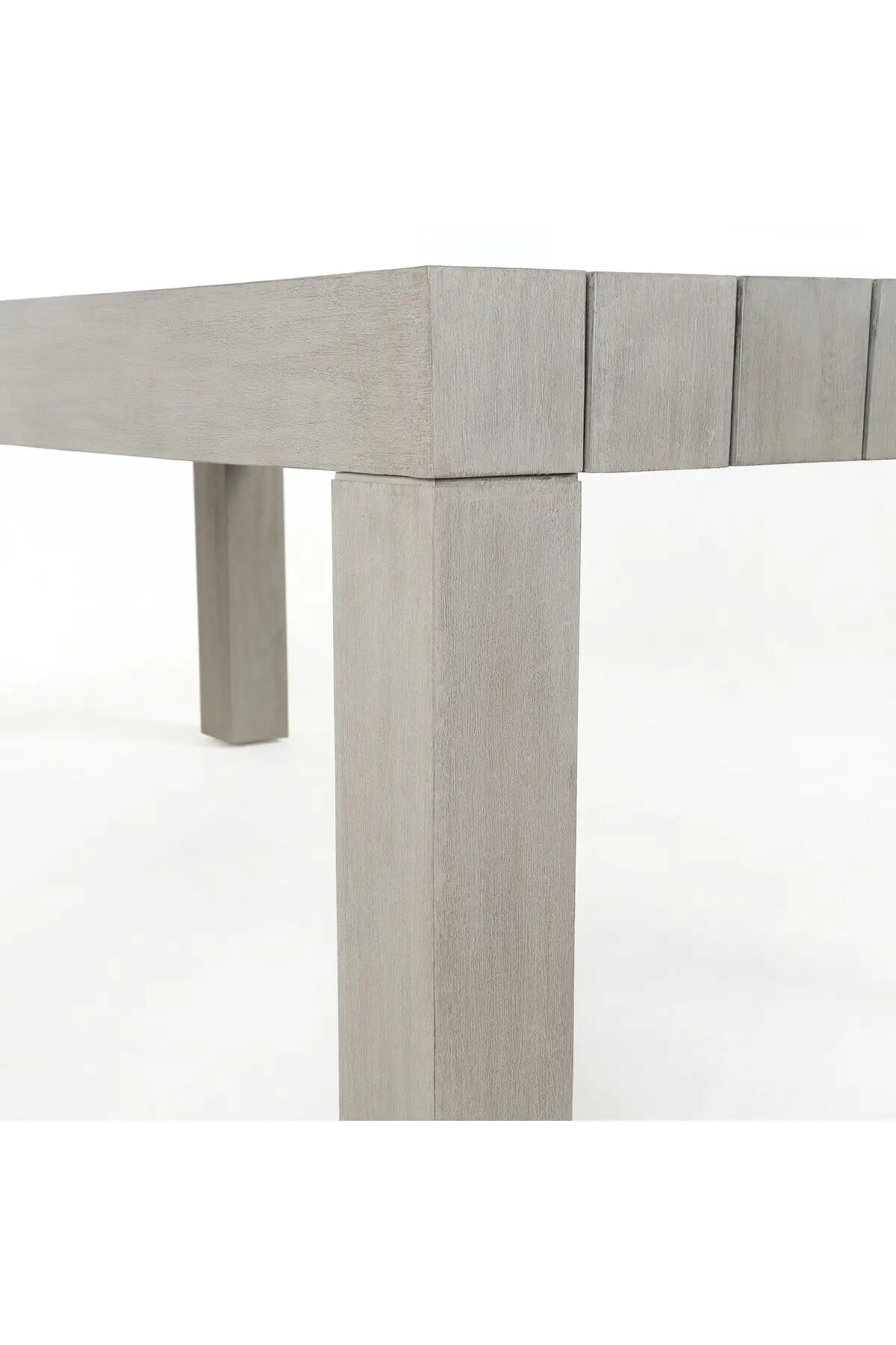 Meet the Sonora Outdoor Dining Table. Organic elements, indoors or out. Teakwood is fashioned into a clean-lined dining table and weathered to a natural grey. Safe for outdoor use — cover or store indoors during inclement weather and when not in use.