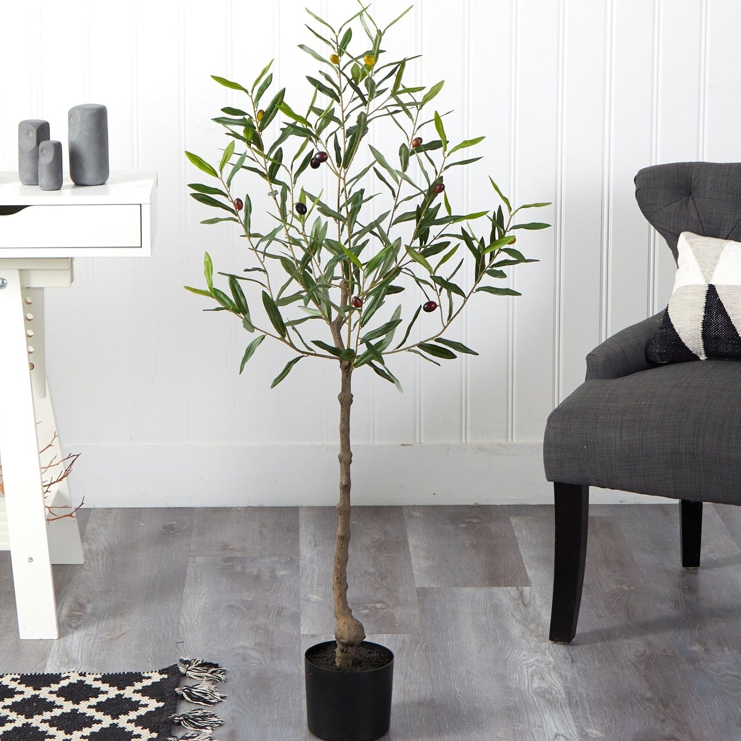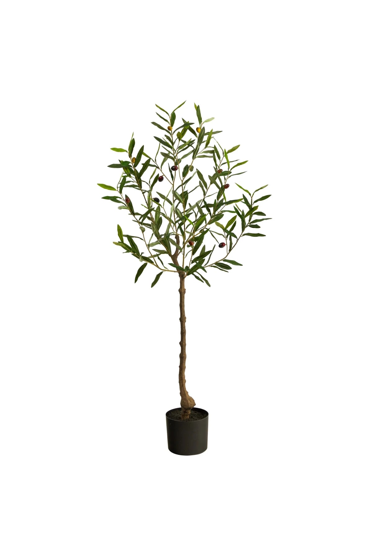 Walk through the Italian countryside with our 4’ Artificial Olive Tree. Featuring a thin brown trunk that splits into stems, this fake tree elegantly displays faux leaves and is accented throughout with fake olives. This best-seller is perfect for minimalist, mid-century modern, boho and homes that need a touch of greenery.