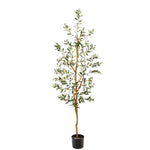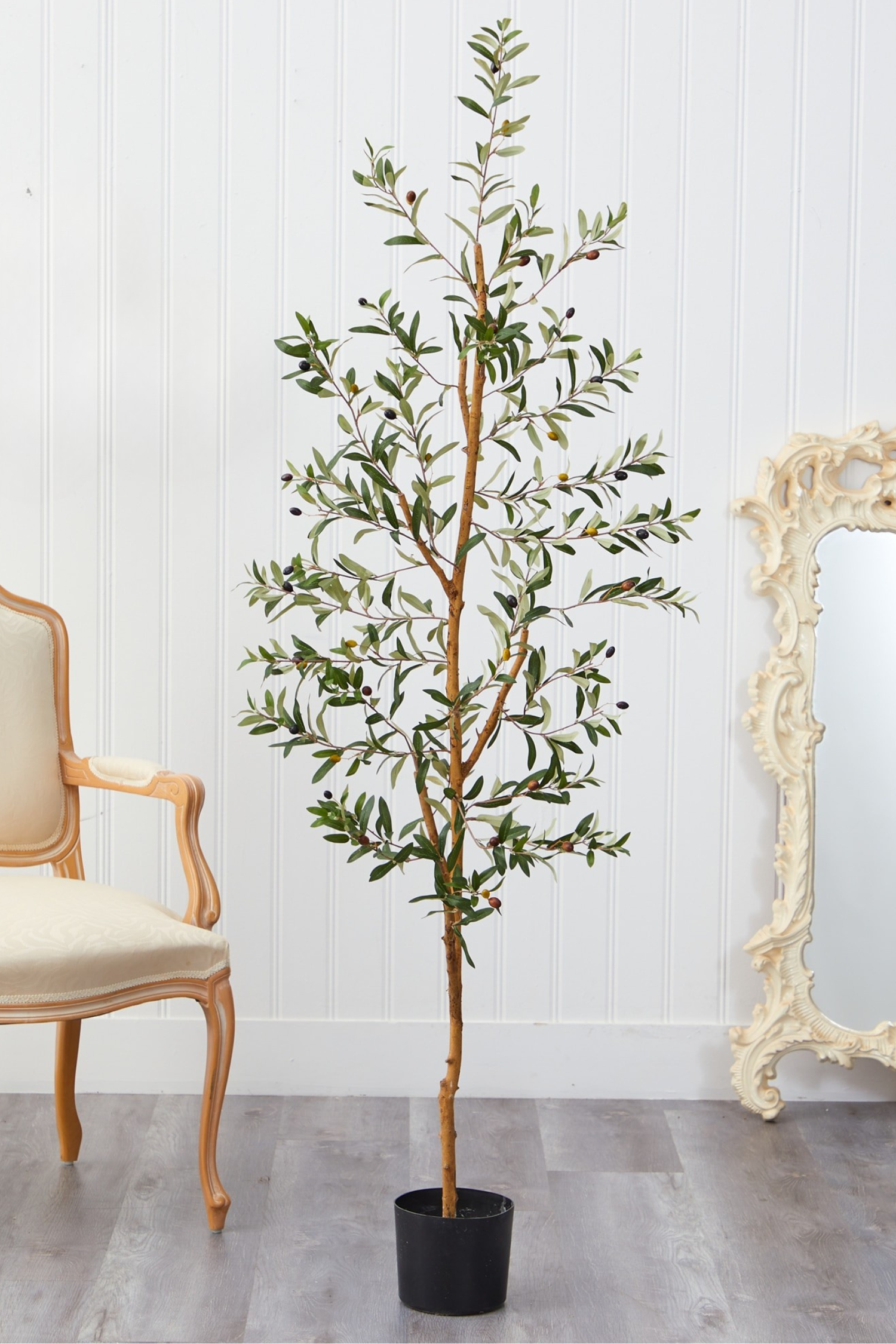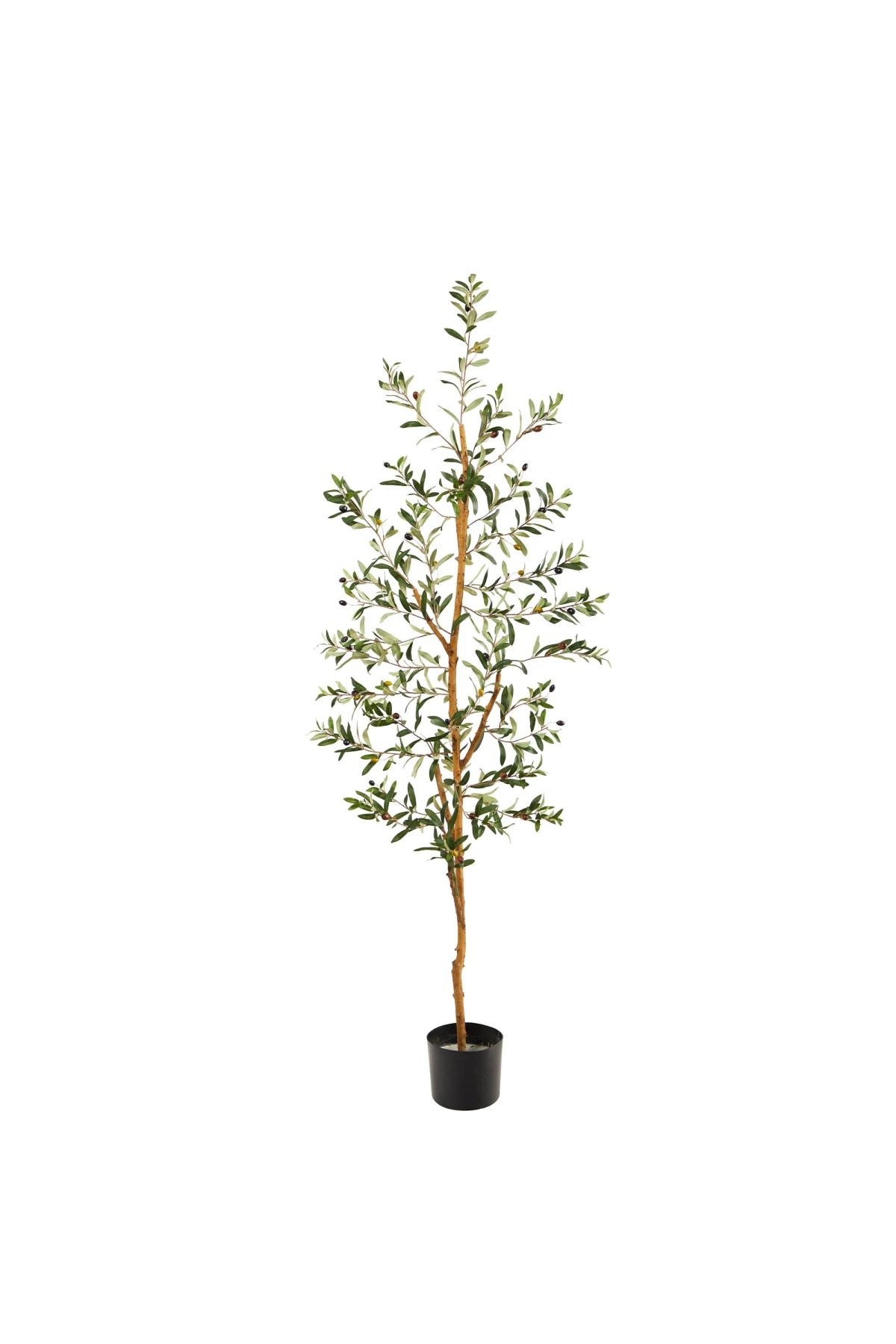 Embrace the Mediterranean lifestyle with our 5.5' Artificial Olive Tree showcasing a sparse design with variegated olive leaves adorned by small olives – a delicacy in the region. Standing at 5.5’ tall from its black pot, you can customize this tree with the planter you like and make this piece truly unique. Incredibly lifelike, easy-to-bend branches allow you to shape as you desire fit to your space.