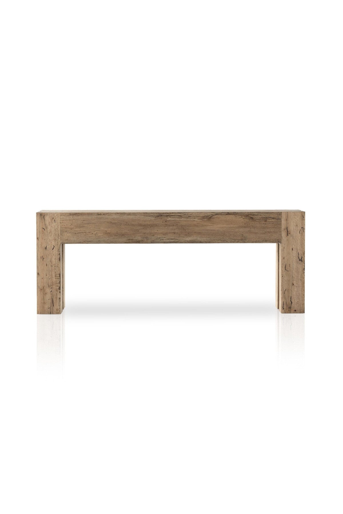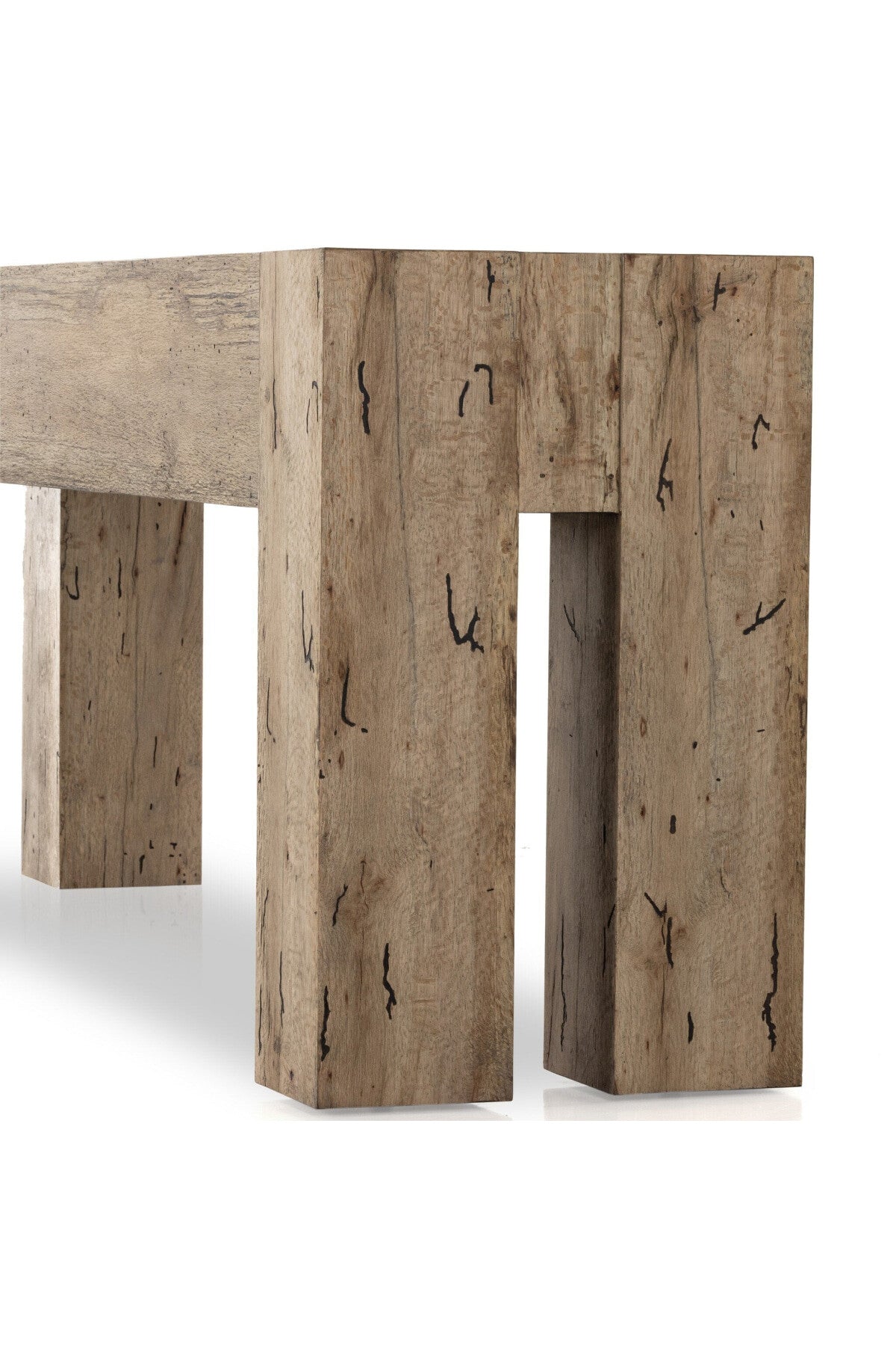 Meet the Abaso Console Table. Made from thick-cut oak veneer with a faux rustic finish made to emulate wormwood, this low, large-scale console table features chunky squared legs and dovetail joinery detailing. Finish may vary.