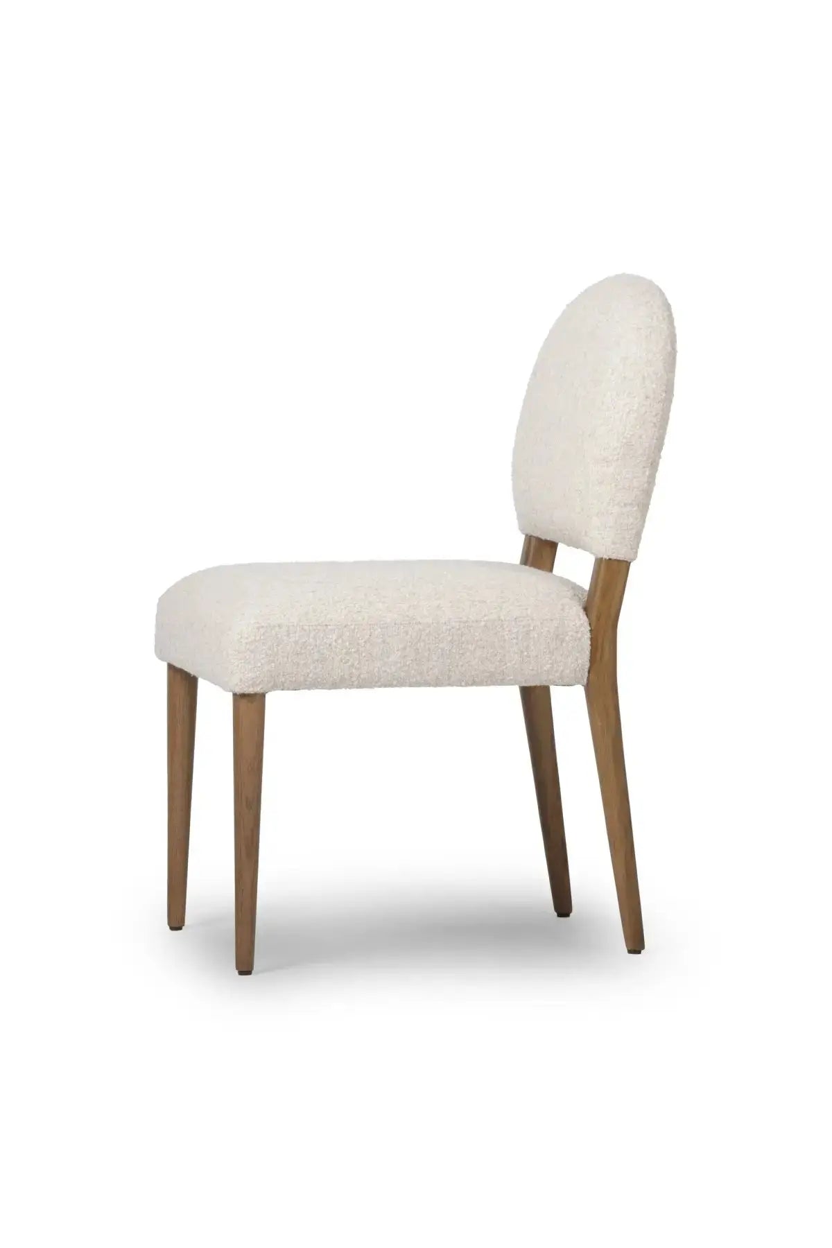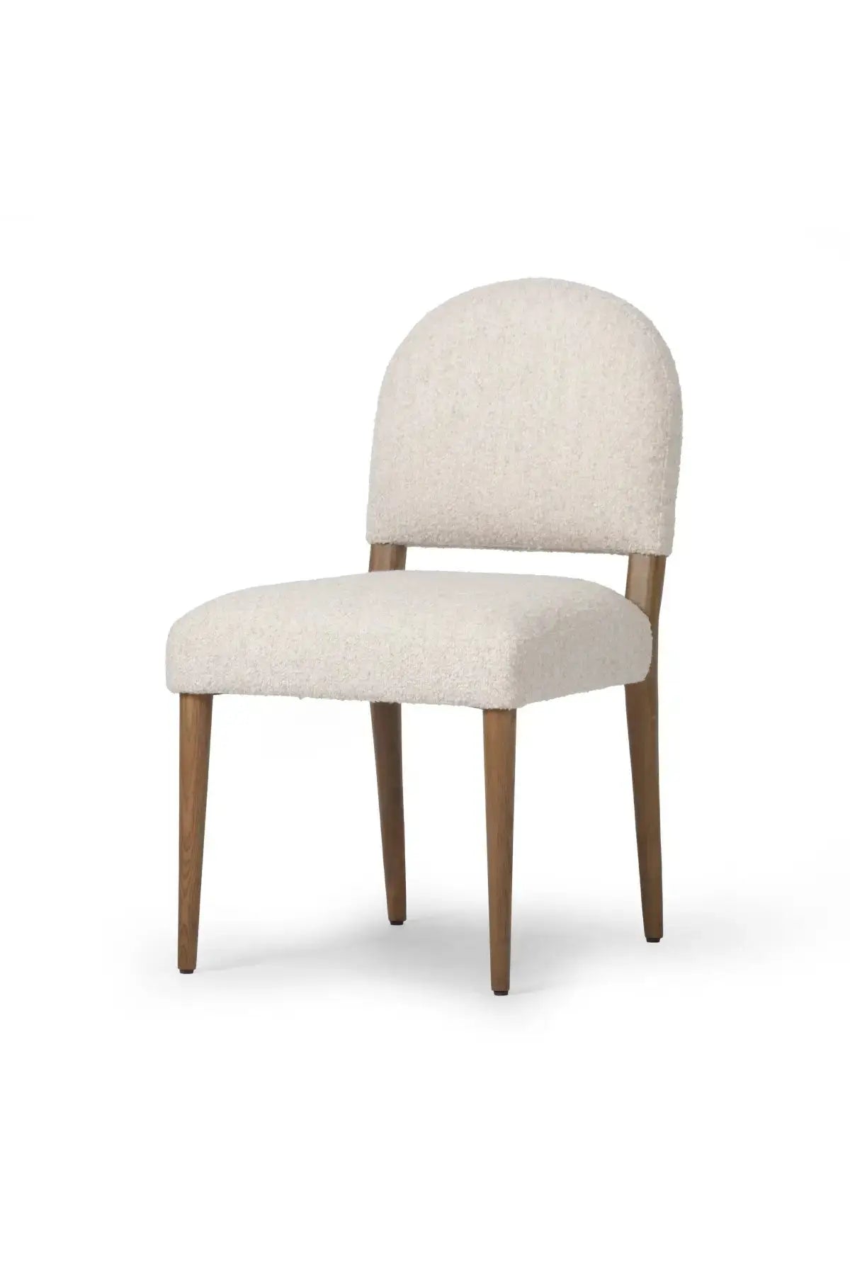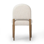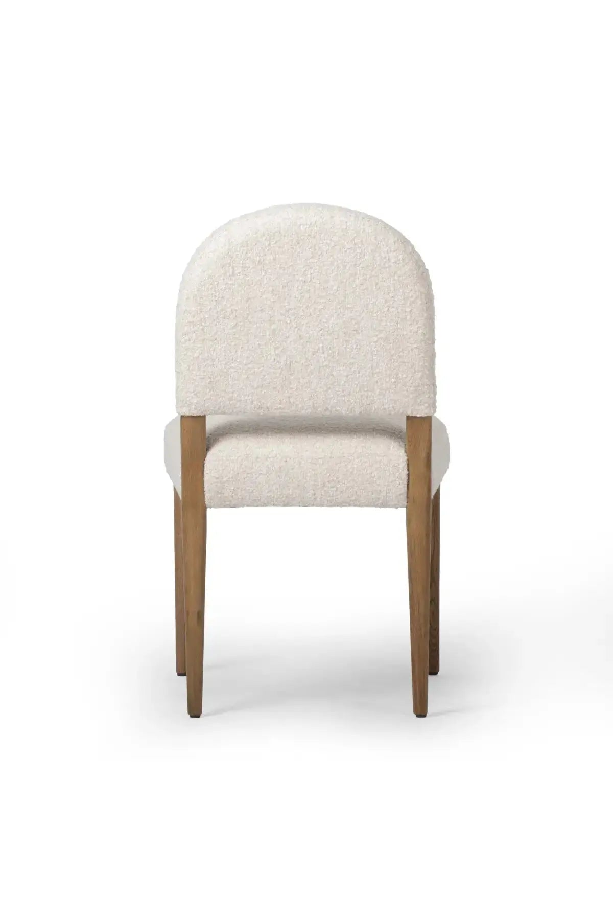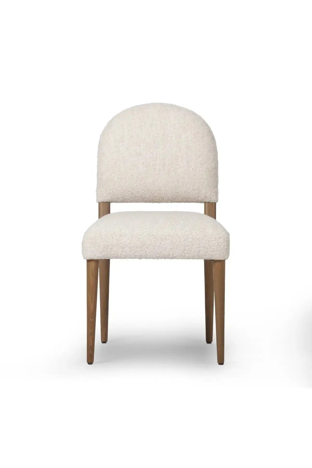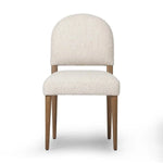 A heritage design gets a modern twist in the Abilene Dining Chair. Simple tapered legs of warm oak mark this dining room chair's traditional form, while an arched seat back upholstered in light wool-blend upholstery updates this comfortable seating style.
