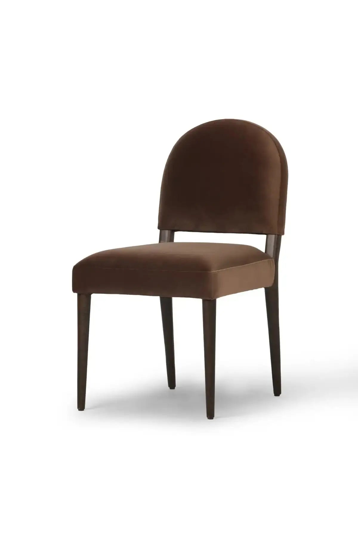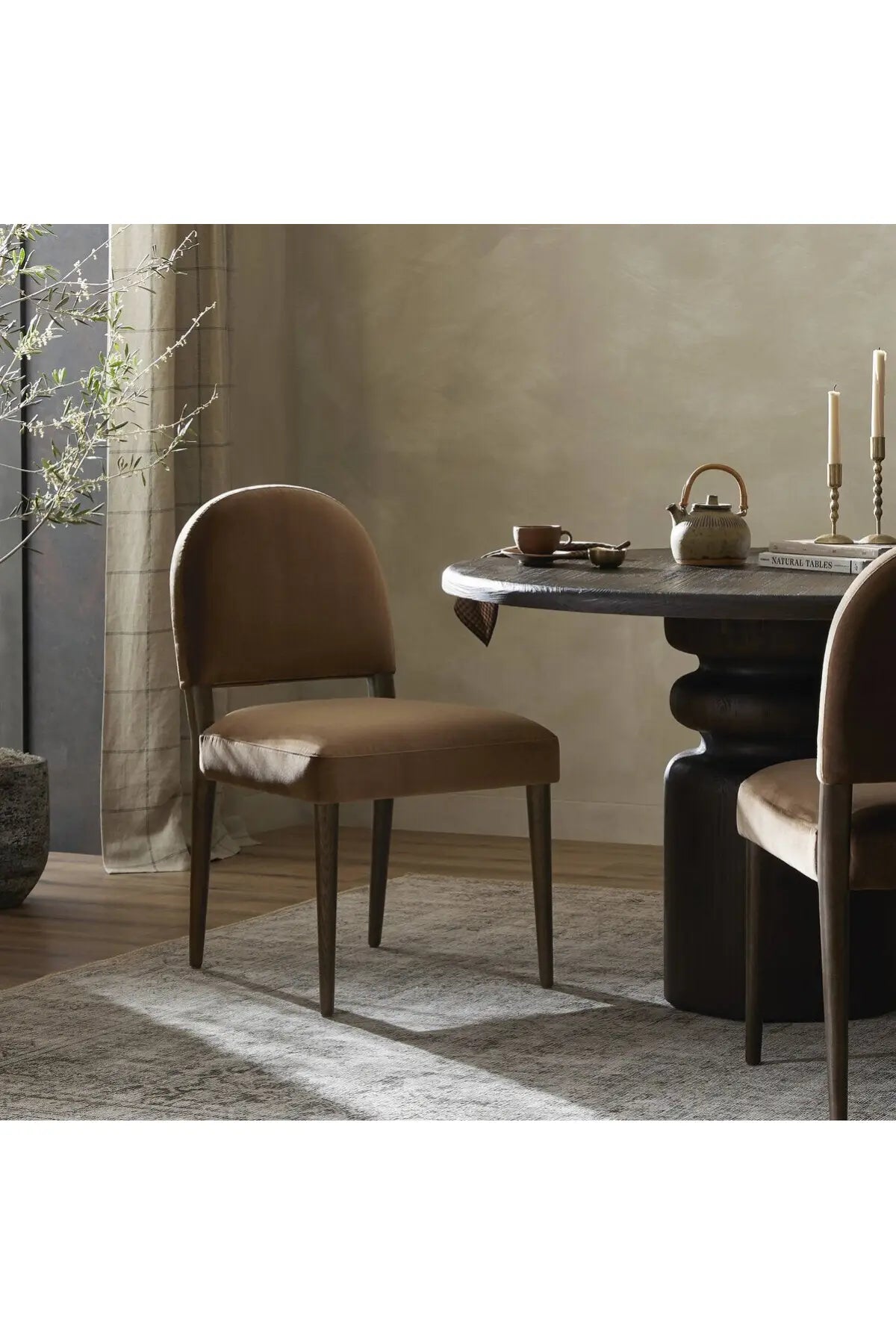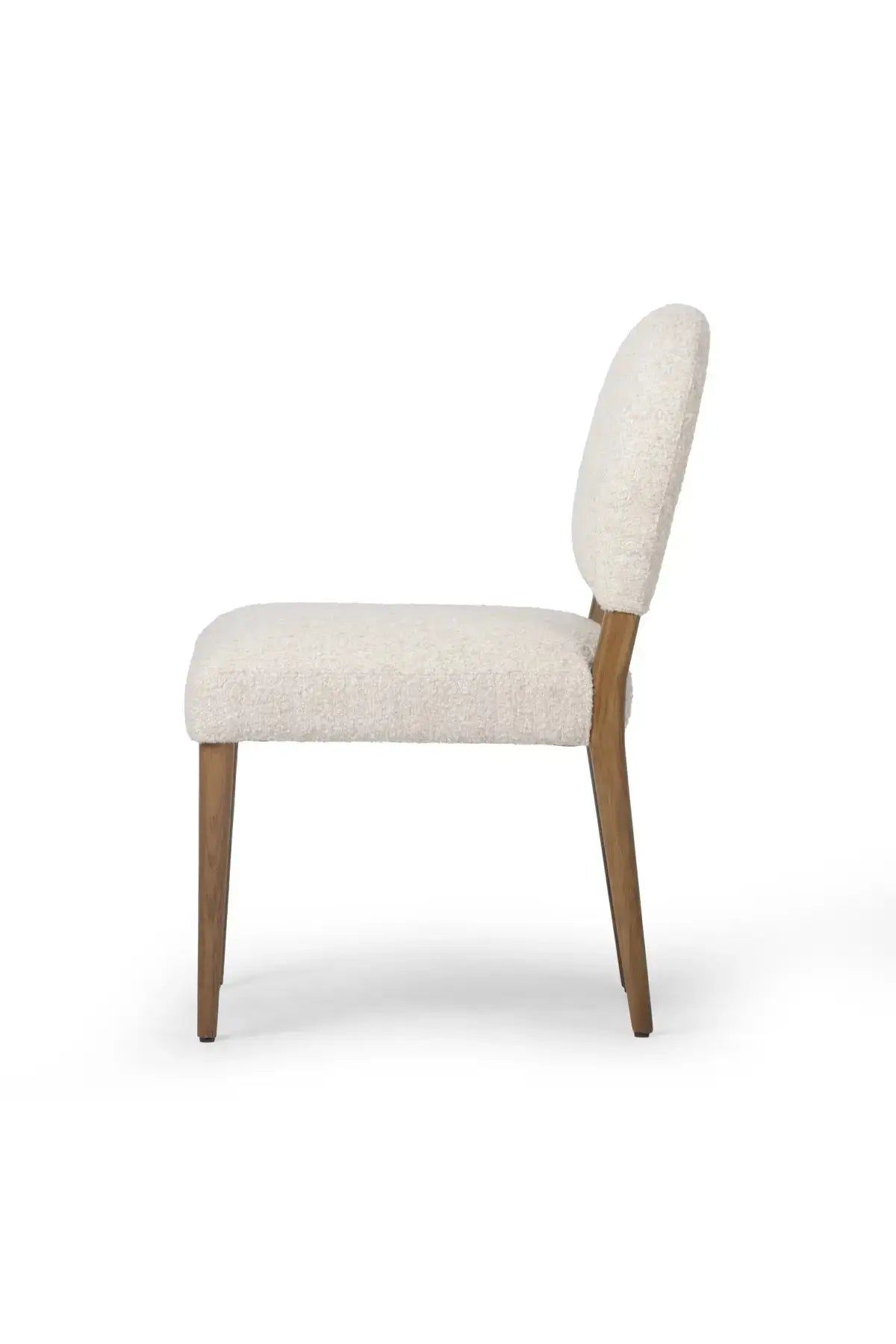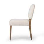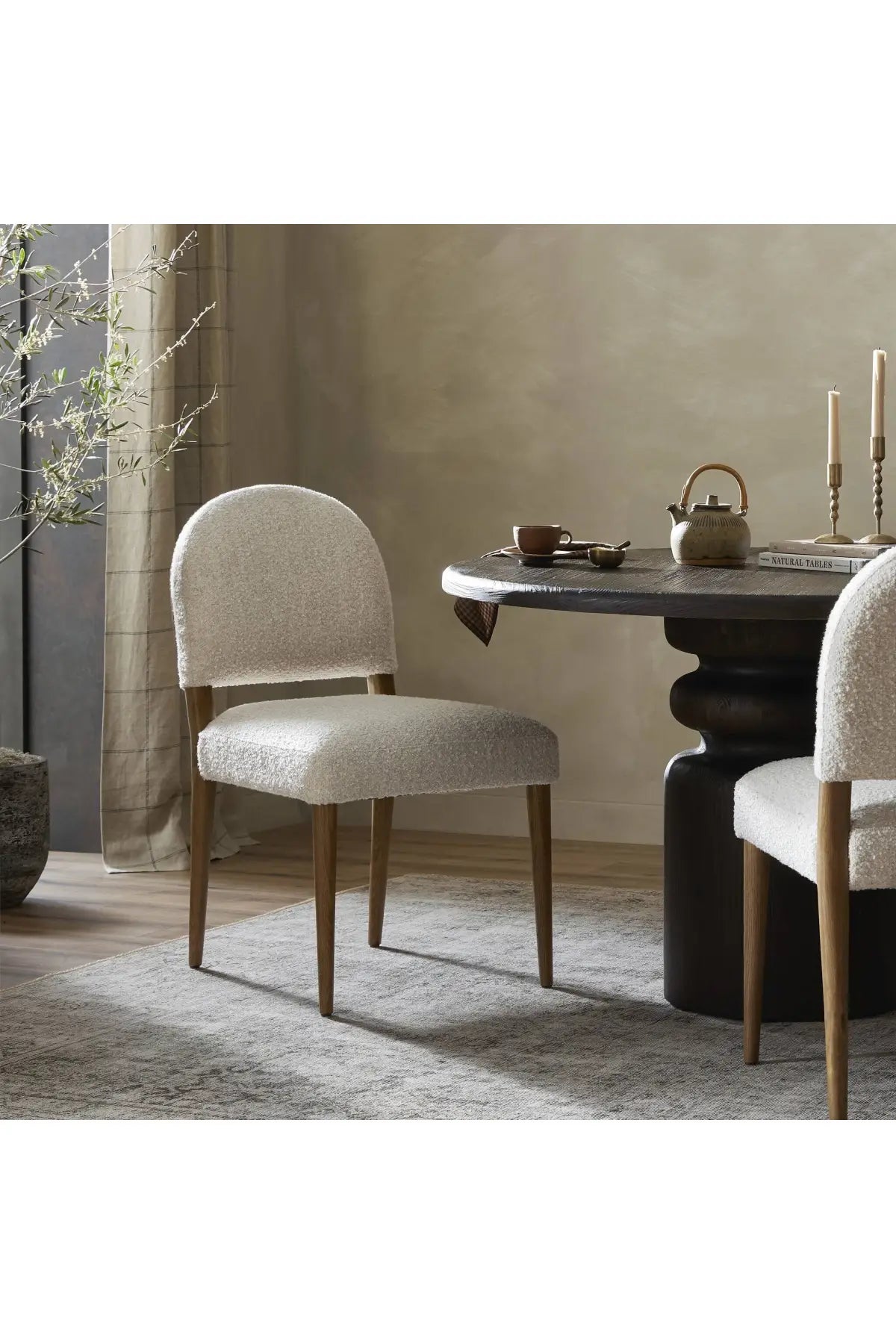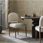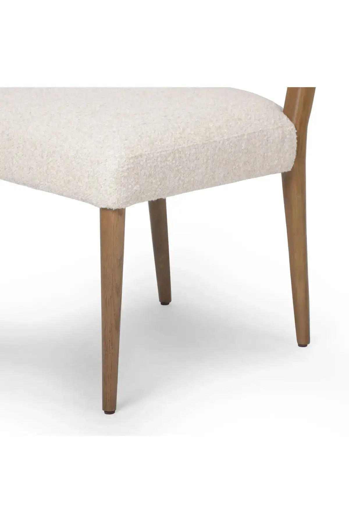 A heritage design gets a modern twist in the Abilene Dining Chair. Simple tapered legs of warm oak mark this dining room chair's traditional form, while an arched seat back upholstered in light wool-blend upholstery updates this comfortable seating style.