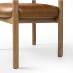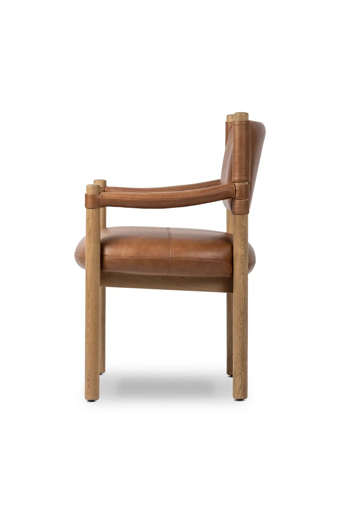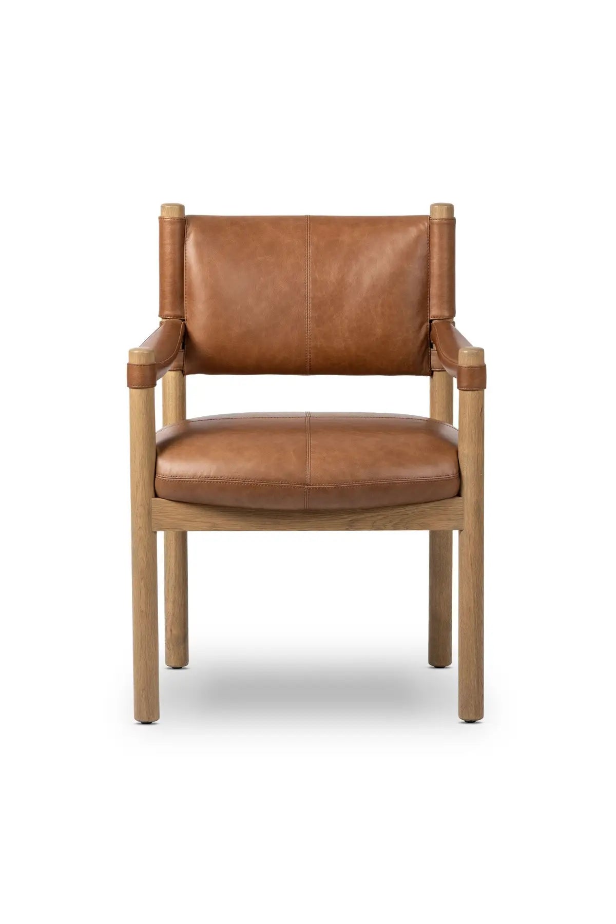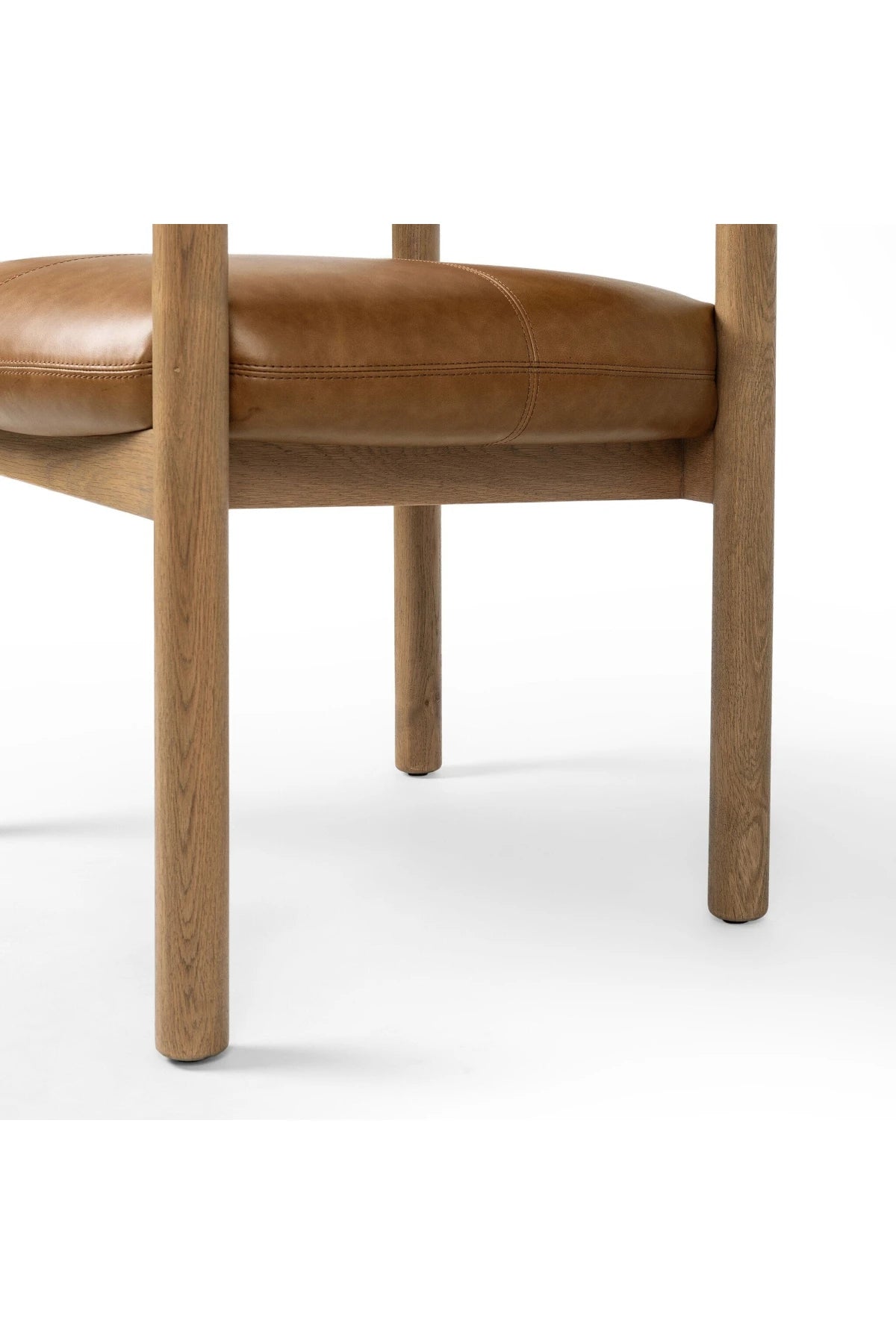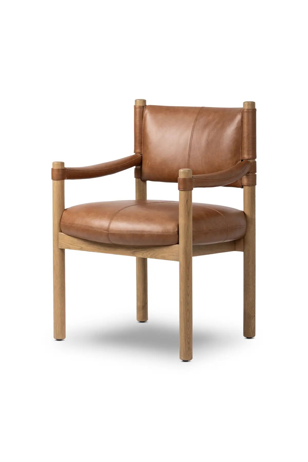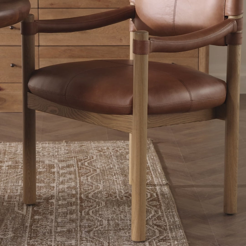 Meet the Adaline Dining Armchair. Elevate your dining space with a mixed-material seat inspired by Nordic minimalism. Plush cushioning upholstered in exclusive top-grain leather add volume, while a natural oak frame lightens the whole look.