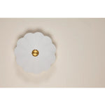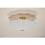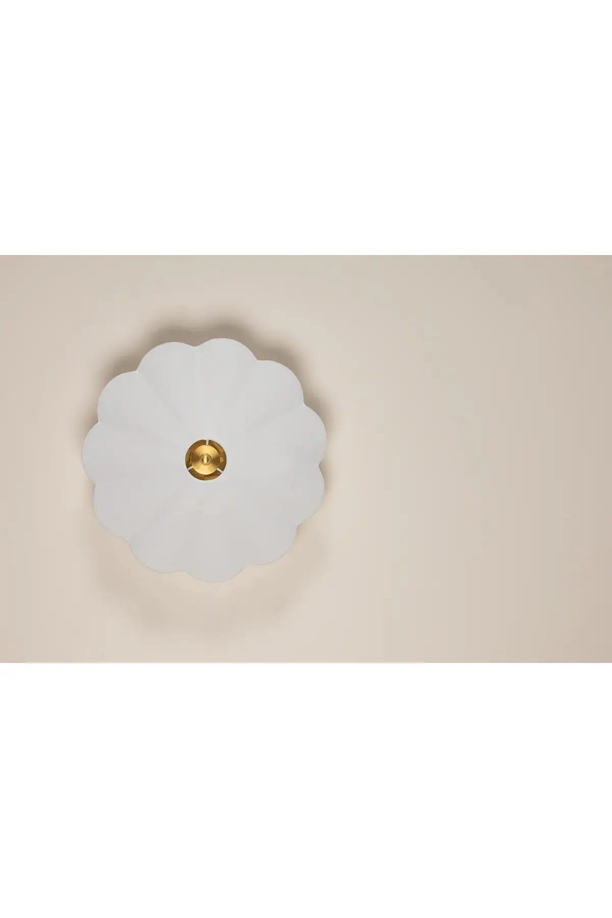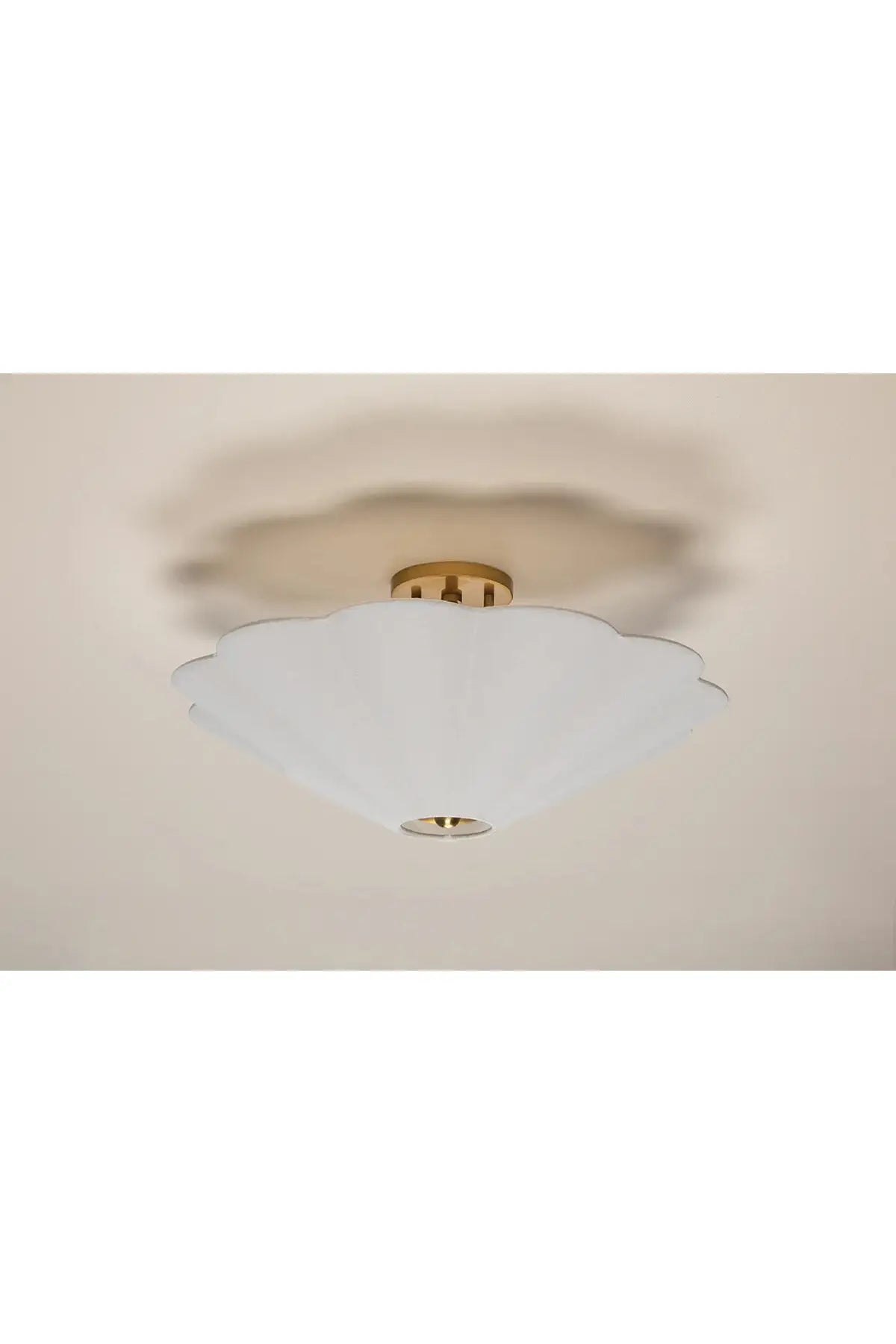 Meet the Alana Flush Ceiling Light. Alana keeps things light and airy. A pretty scalloped shade in white linen is adorned by aged brass accents. Bulb(s) not included.