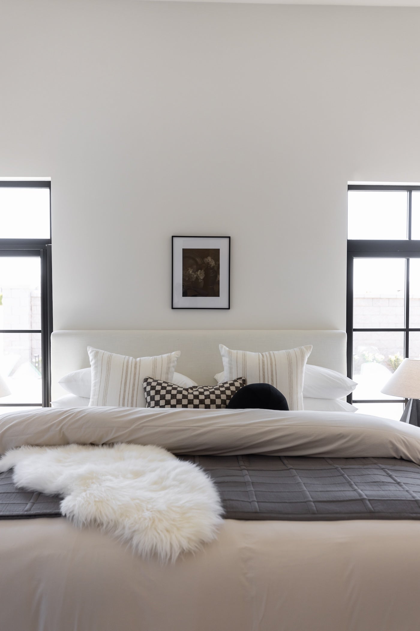 Give your bedroom a regal vibe when you add this Alfie Linen Textured Bed to the mix. The ultra tall headboard on this bed makes a bold impression from all angles and is covered in rich cream linen textured fabric that forms a pleasant contrast with the solid wood base. The full flat design lets you easily use this bed without a box spring - a top mattress is all that's needed. Slats included.