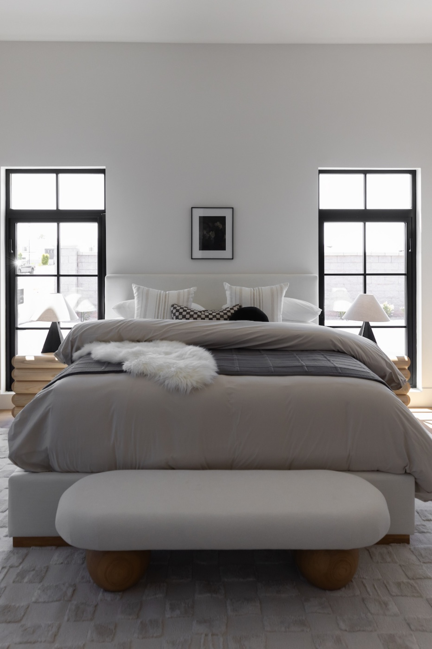 Materials: Linen Textured Fabric, Rubberwood, Plywood, Foam