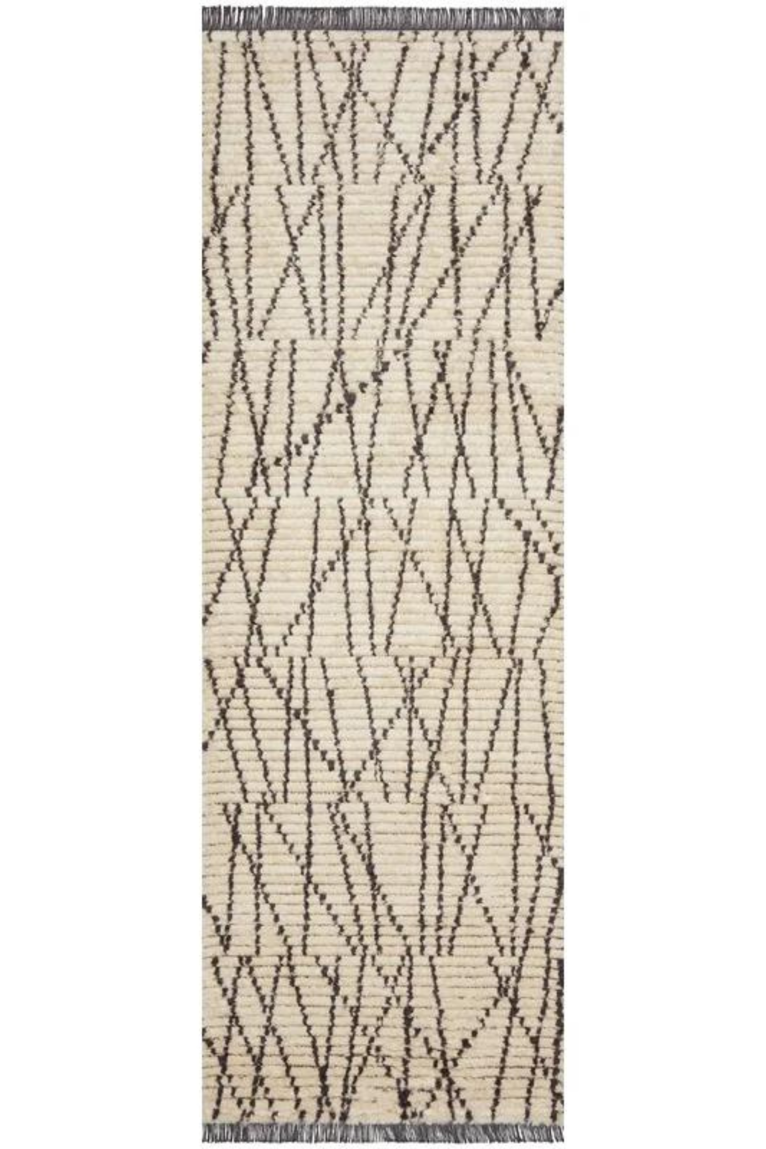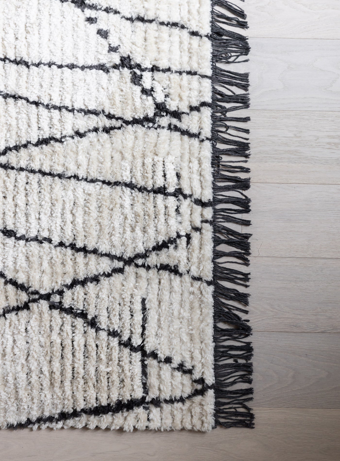 The Alice Rug is inspired by the classic Moroccan rug. Durable, graphic, and soft underfoot, Alice features a high-low texture with warm earthy colors. Power-loomed in Turkey of 100% polyester pile, each rug is finished by a subtle fringe.
