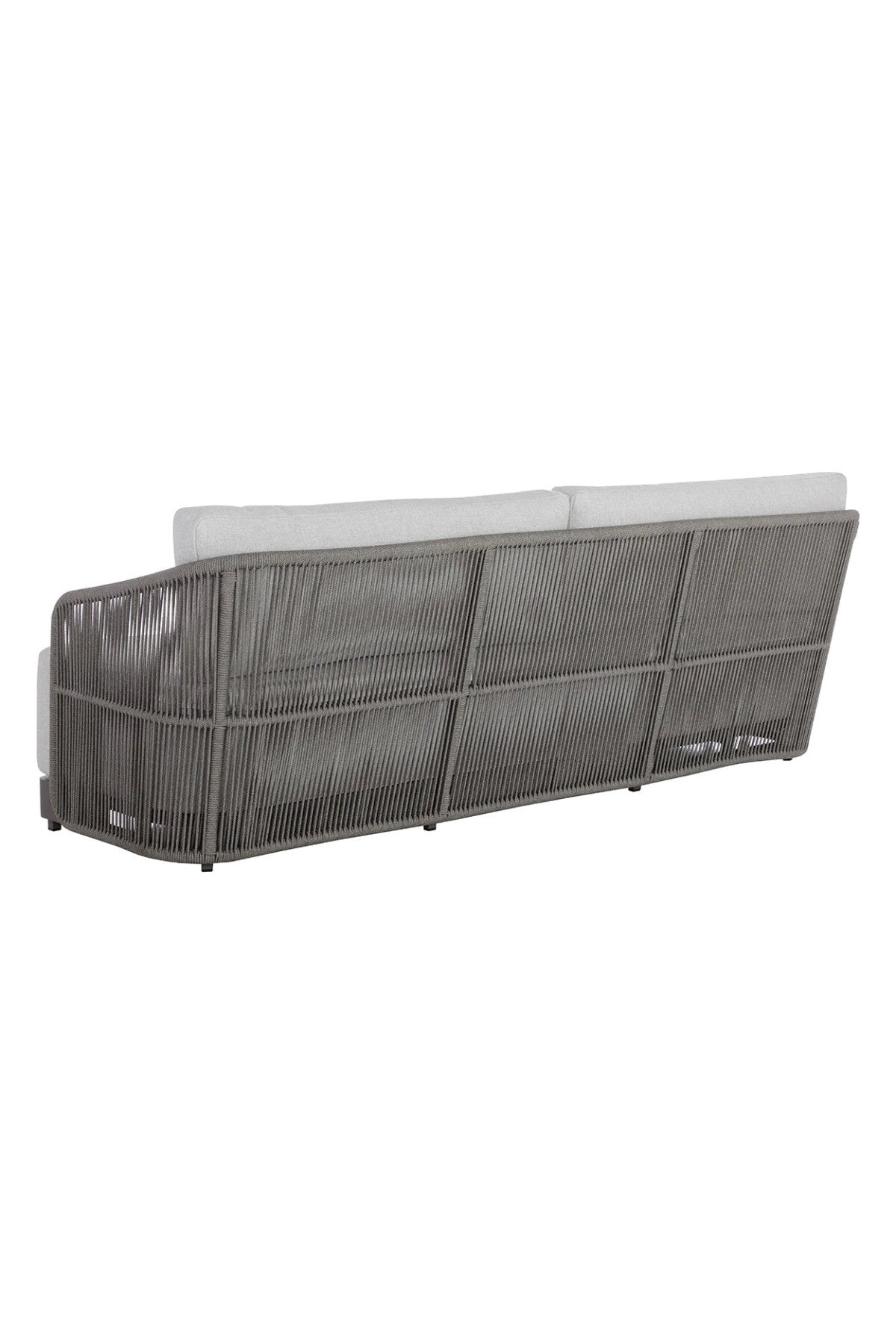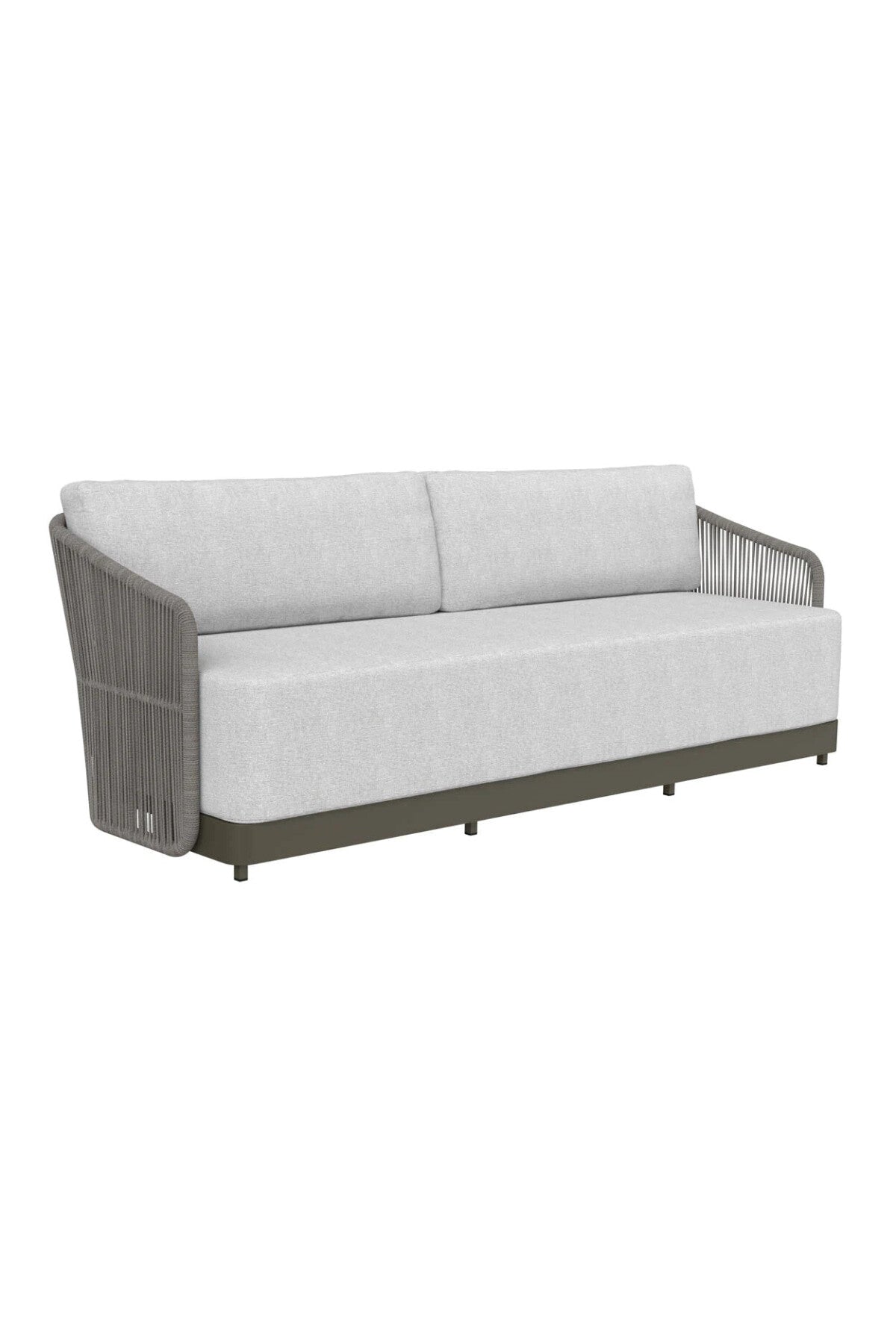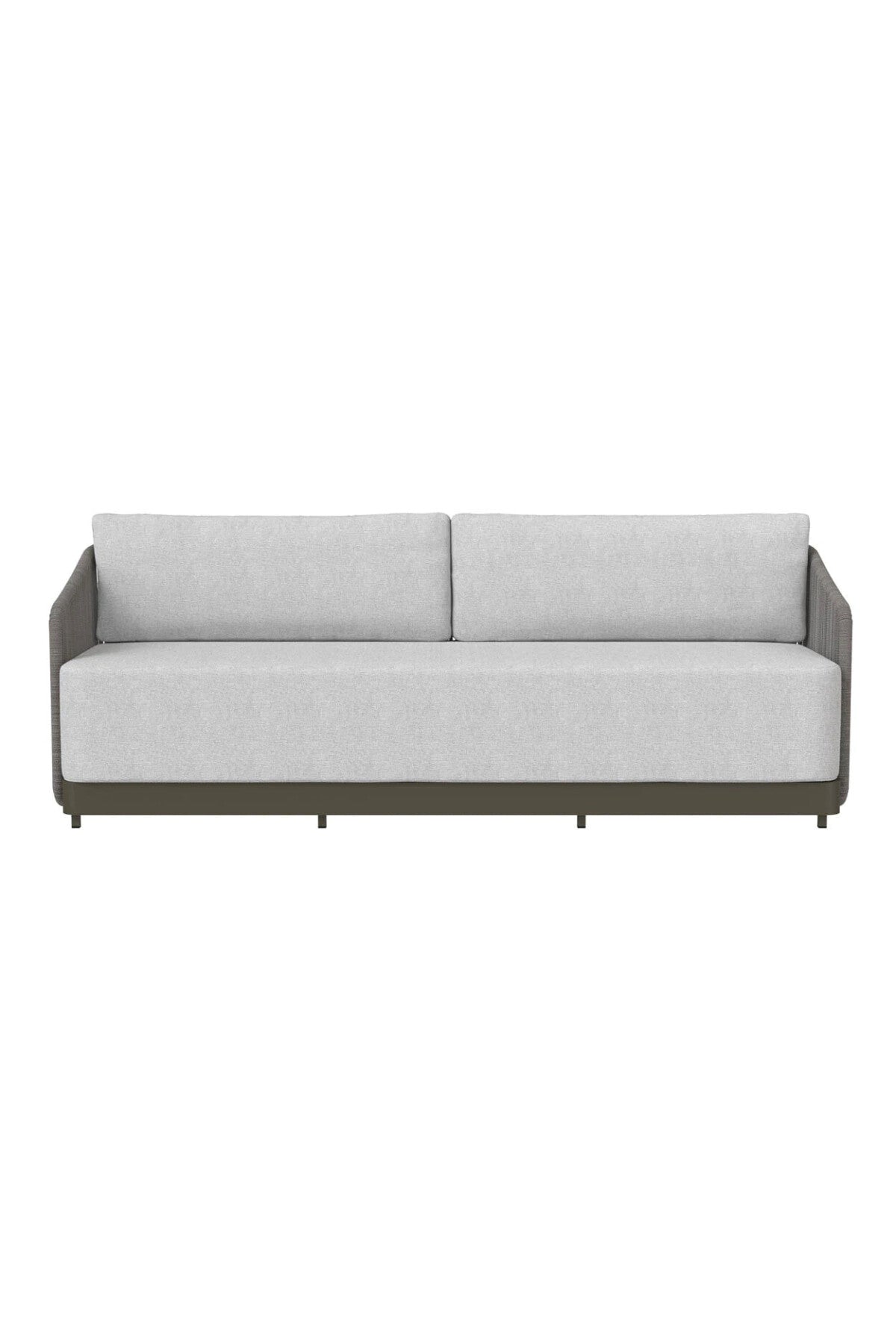 Introduce refined modern style outside with the impressive Allariz Sofa. Upholstered in gracebay light grey fabric with a powder coated warm grey aluminum frame. Completed with grey rope weaving on the seat exterior.