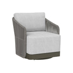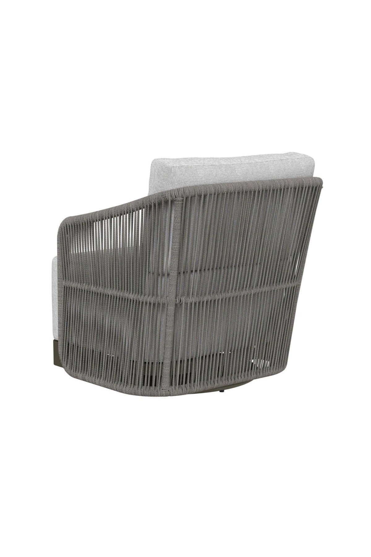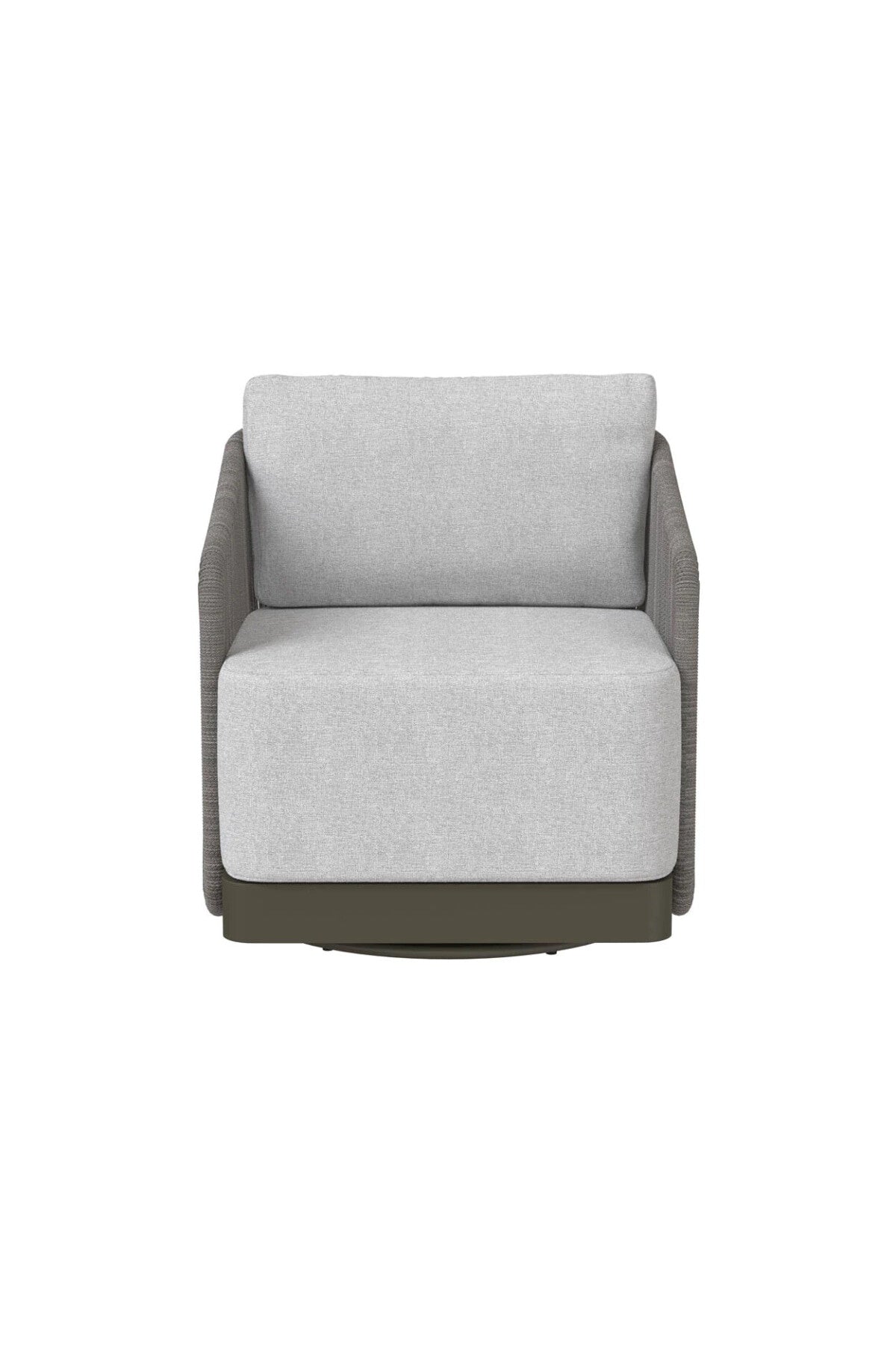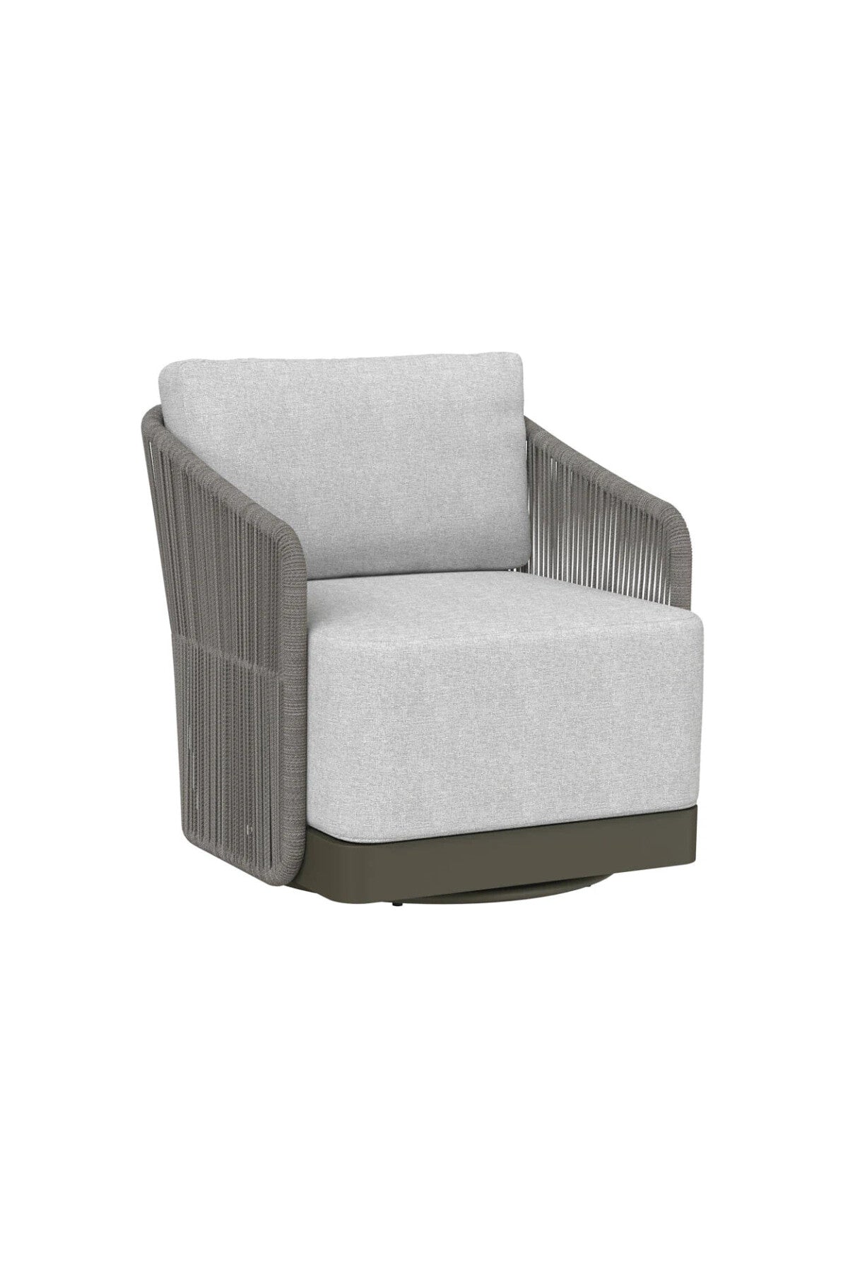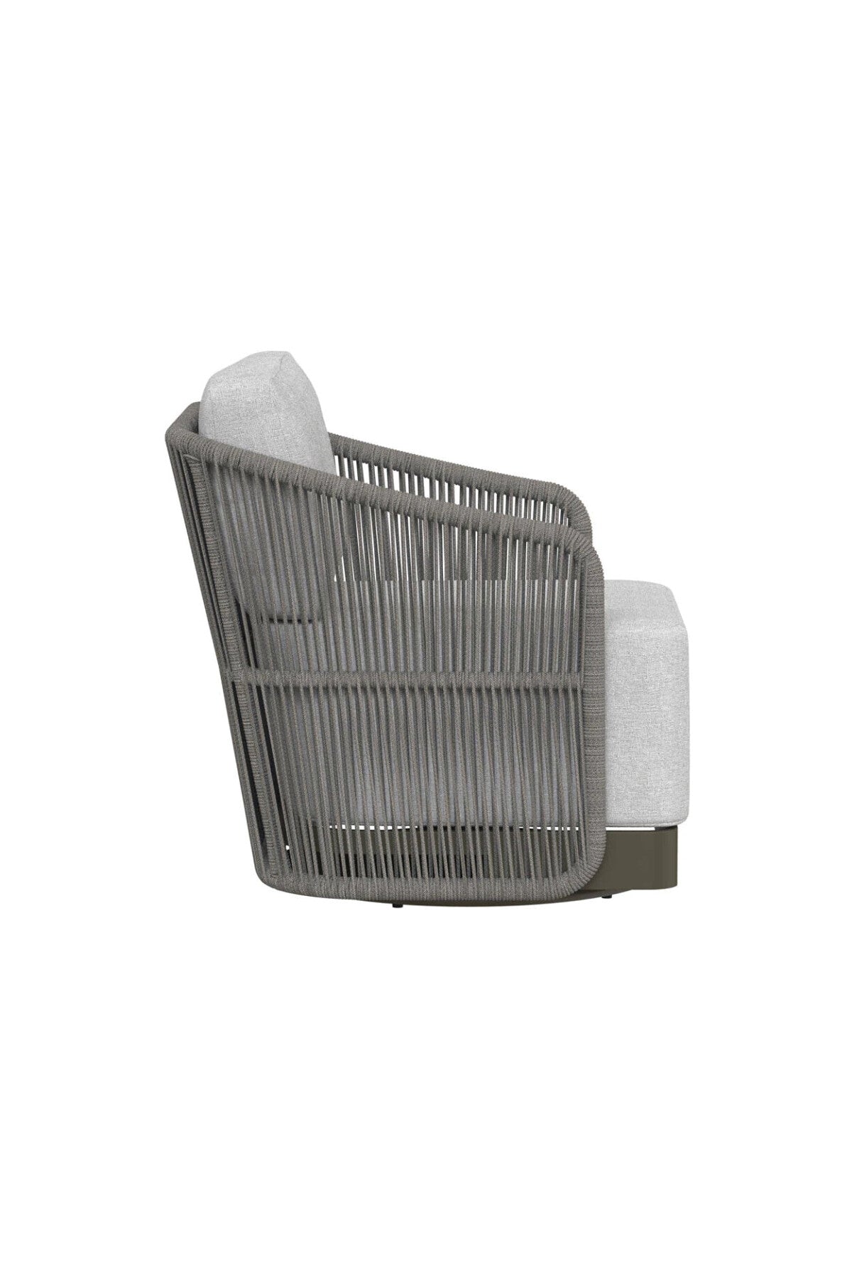 Introduce refined modern style outside with the impressive Allariz Swivel Armchair. Upholstered in gracebay light grey fabric with a powder coated warm grey aluminum frame. Completed with grey rope weaving on the seat exterior.
