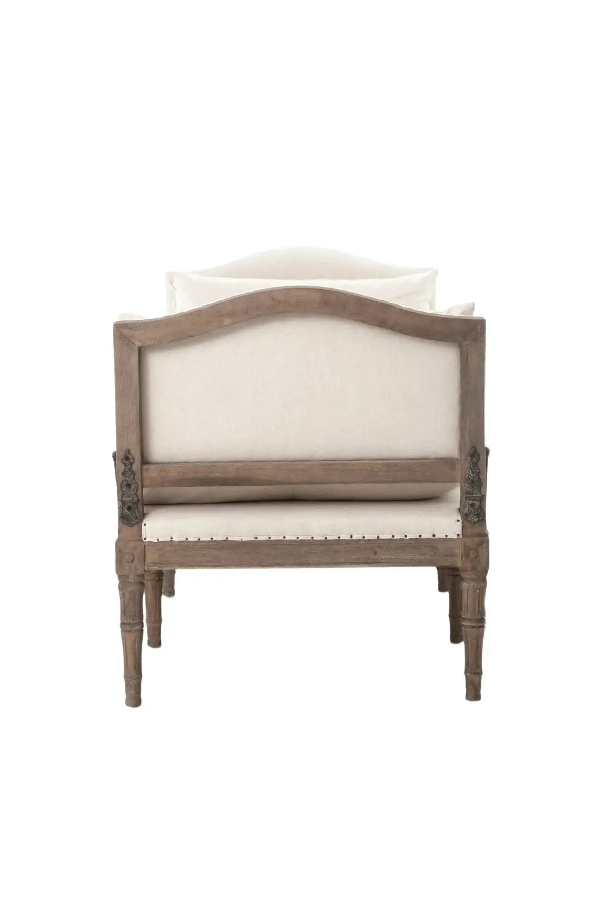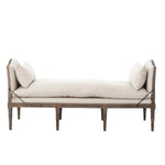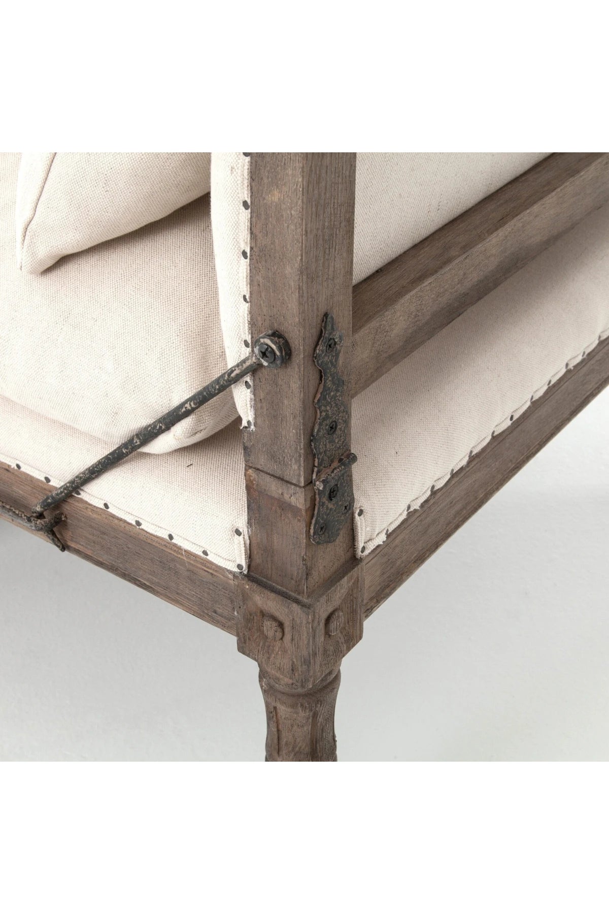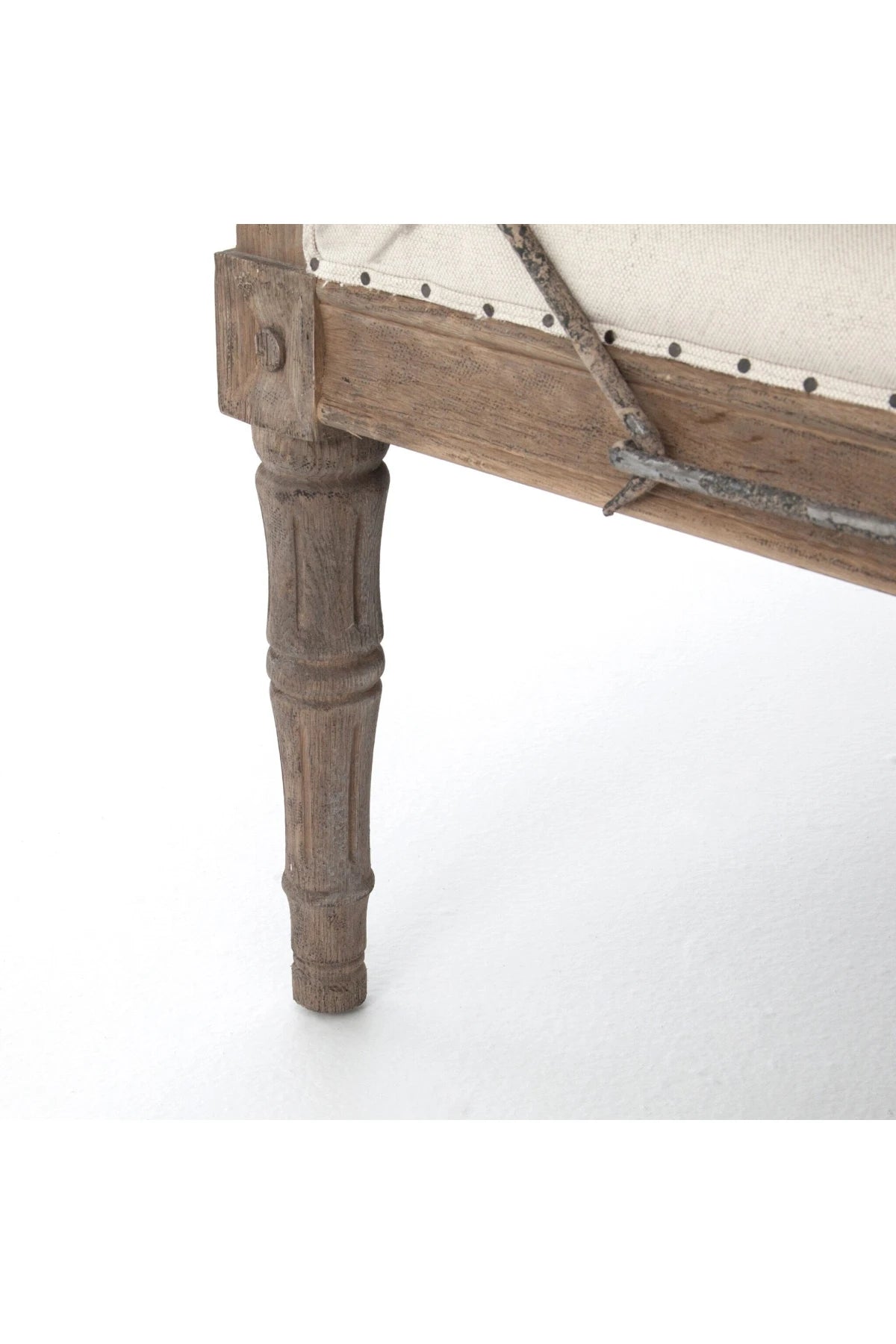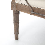 Meet the Allison Chaise. Play up a sense of French chic with a chaise featured and styled to look relaxed. Natural linen, spit tack, and iron fleur-de-lis detailing.