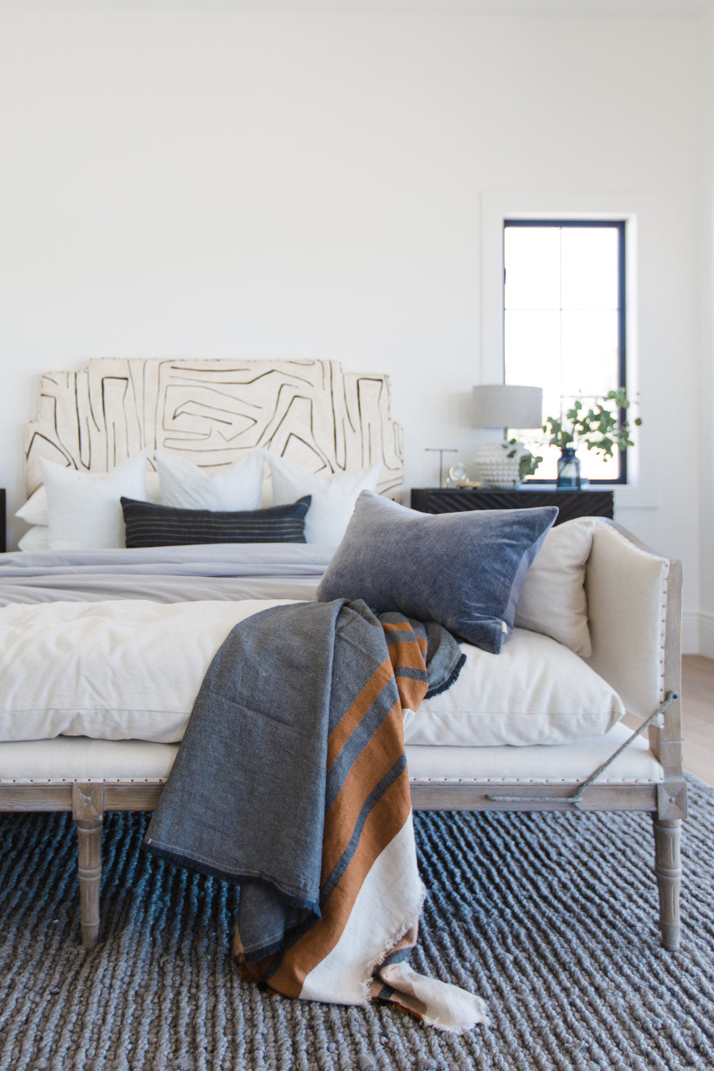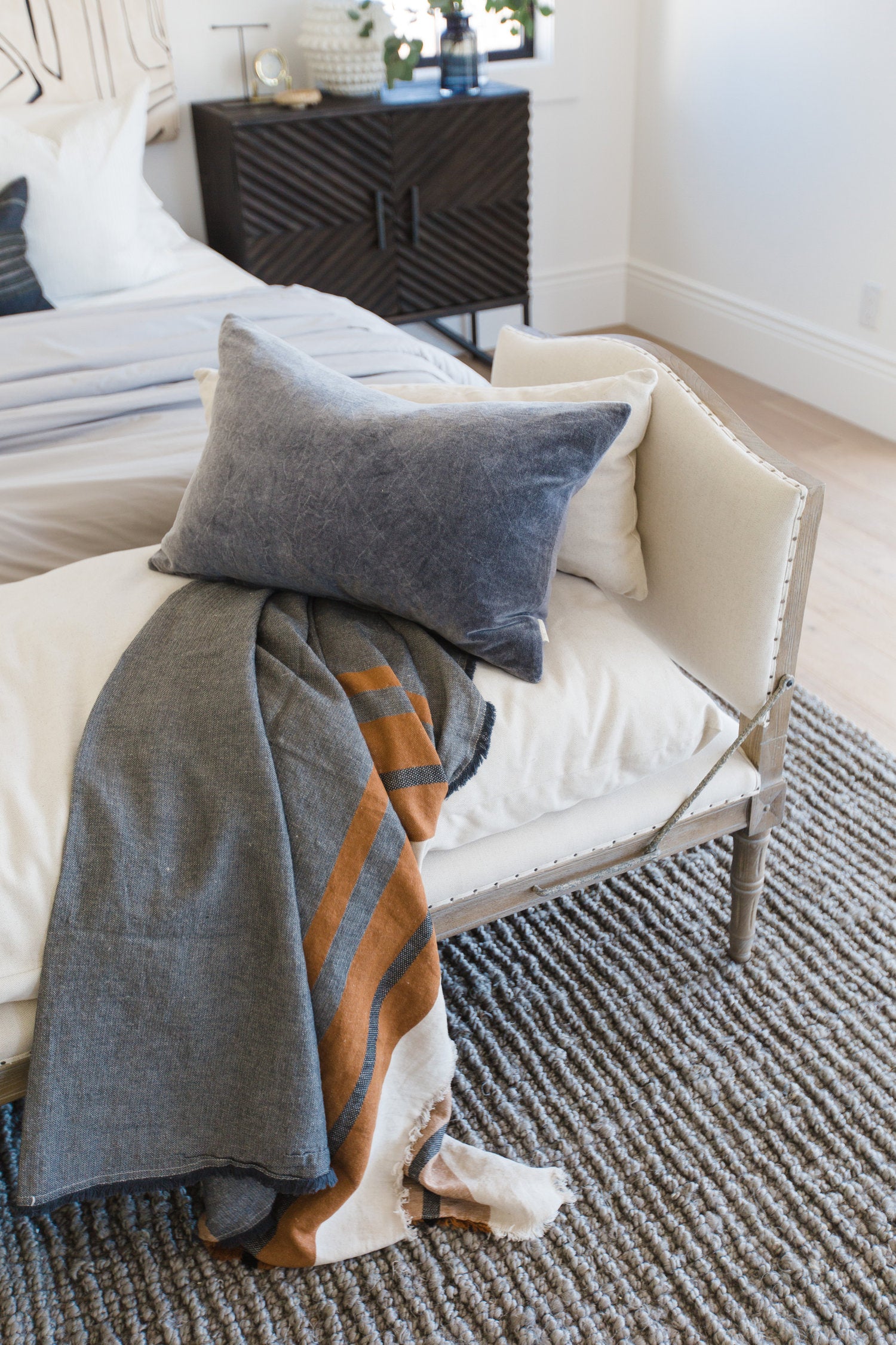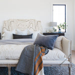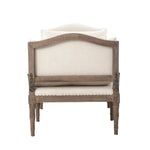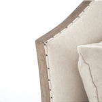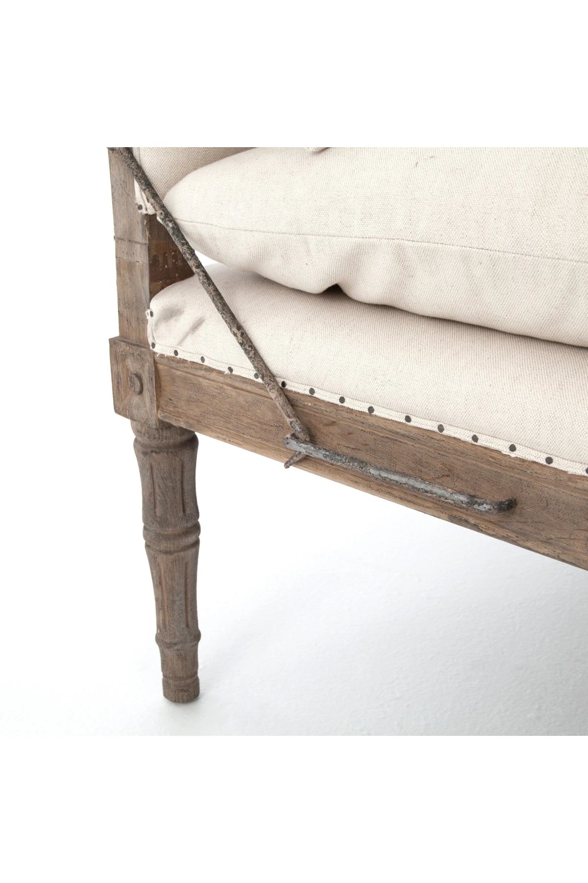 Meet the Allison Chaise. Play up a sense of French chic with a chaise featured and styled to look relaxed. Natural linen, spit tack, and iron fleur-de-lis detailing.