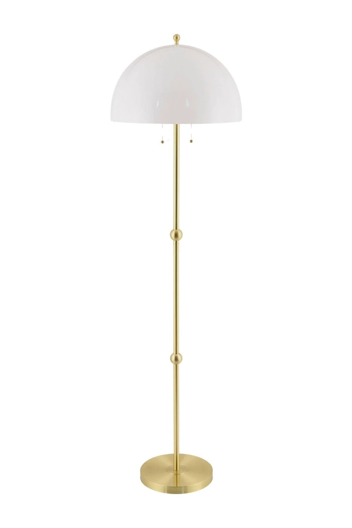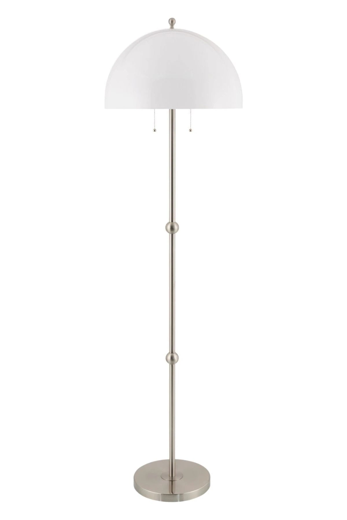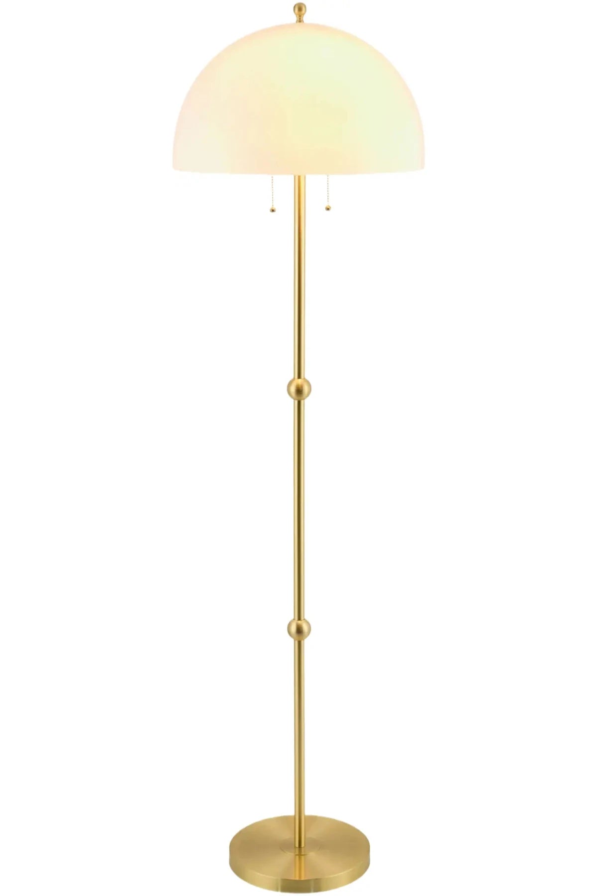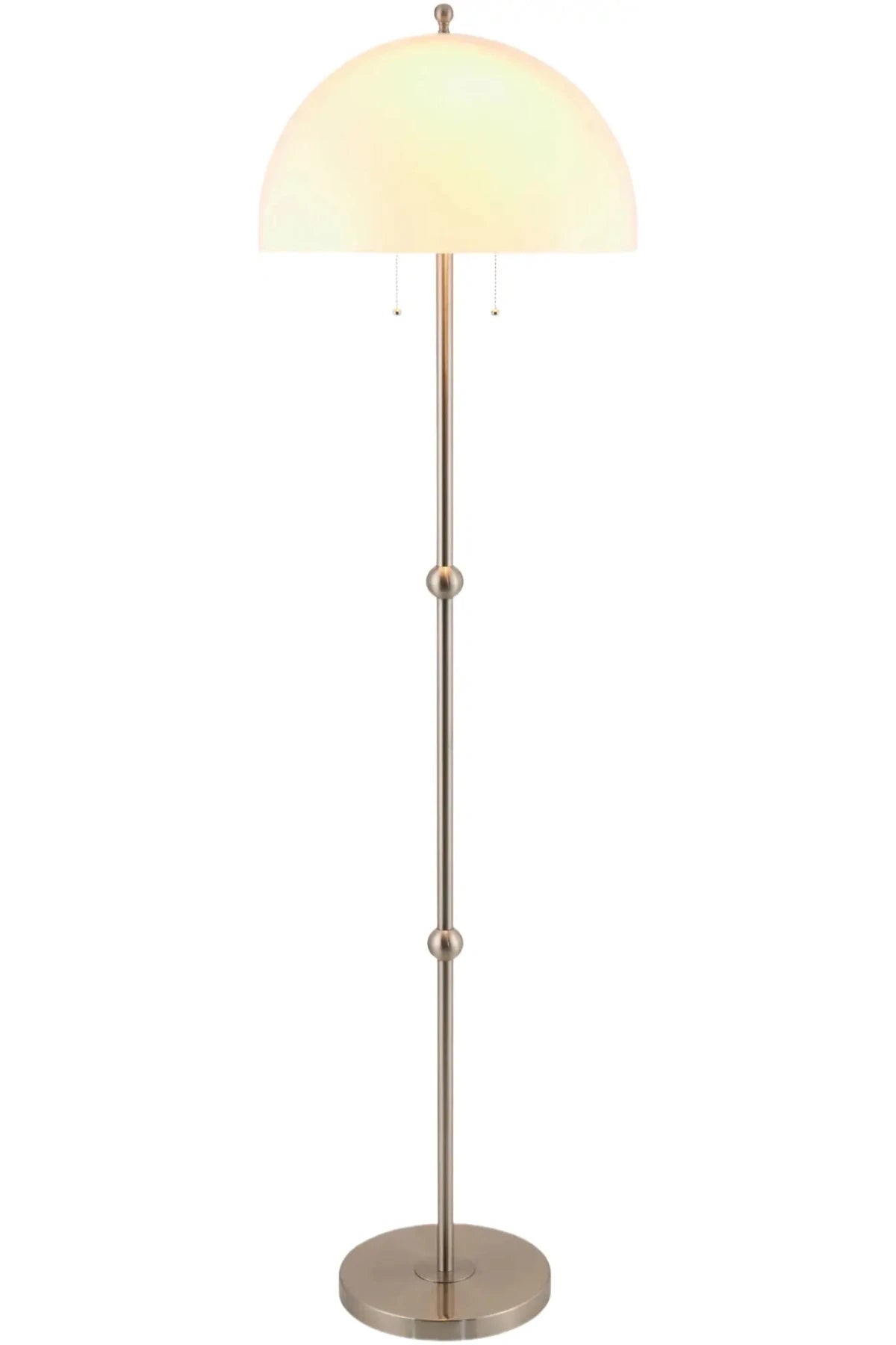 Meet the Starlux Accent Floor Lamp. This elegant light fixture combines the sleek shine of brass and nickel with the clean look of white glass, creating a sophisticated and timeless design. The iron frame adds durability while maintaining a light, airy feel perfect for any space. With its E26 socket and soft glow, it brings effortless style and warmth to your home. Bulb(s) not included.