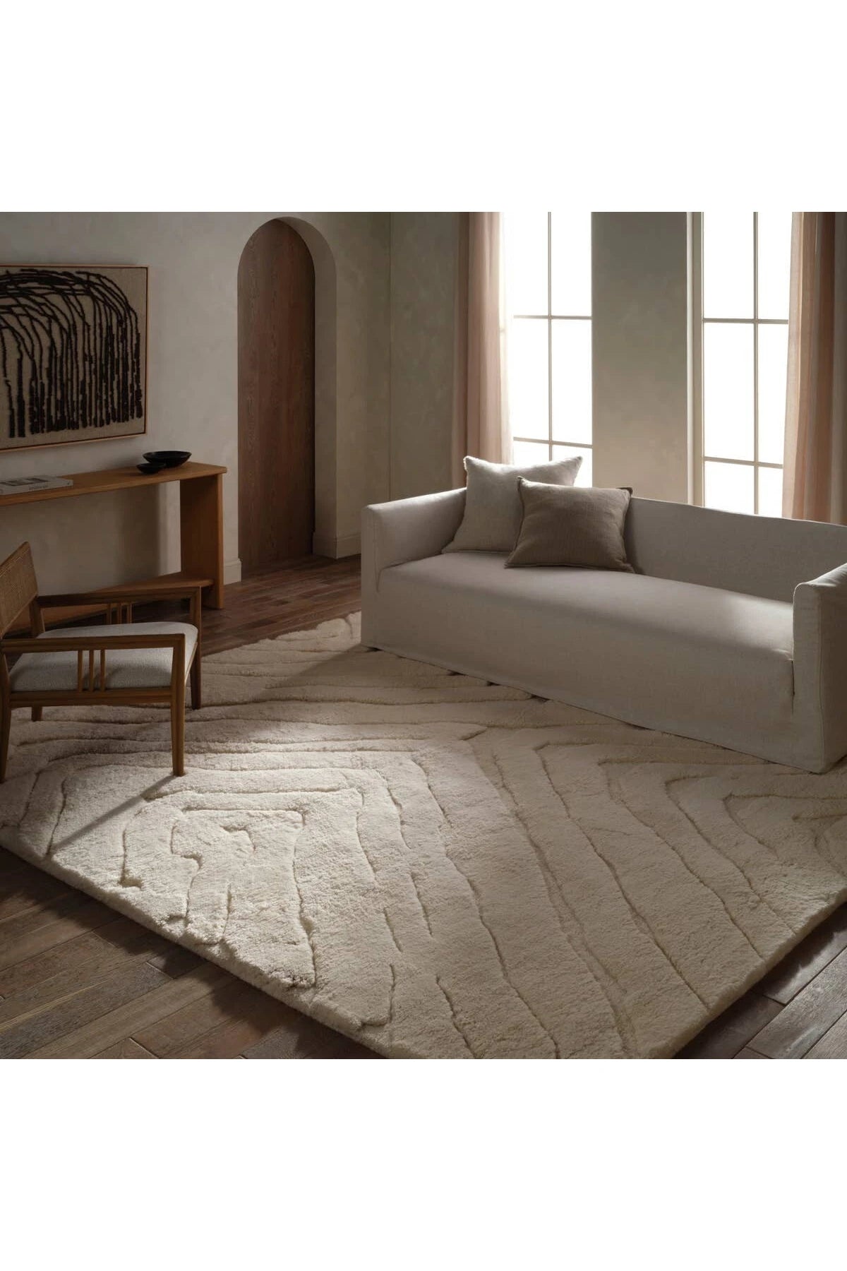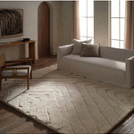 The Ameln Rug captures a refined and understated sophistication with its design. As artisans knot each strand by hand, they weave in modern, centric lines that balance Moroccan heritage with contemporary edge. Made from lush wool, the rug offers delicious dimension and a cloud-like texture, offering comfort with every step.