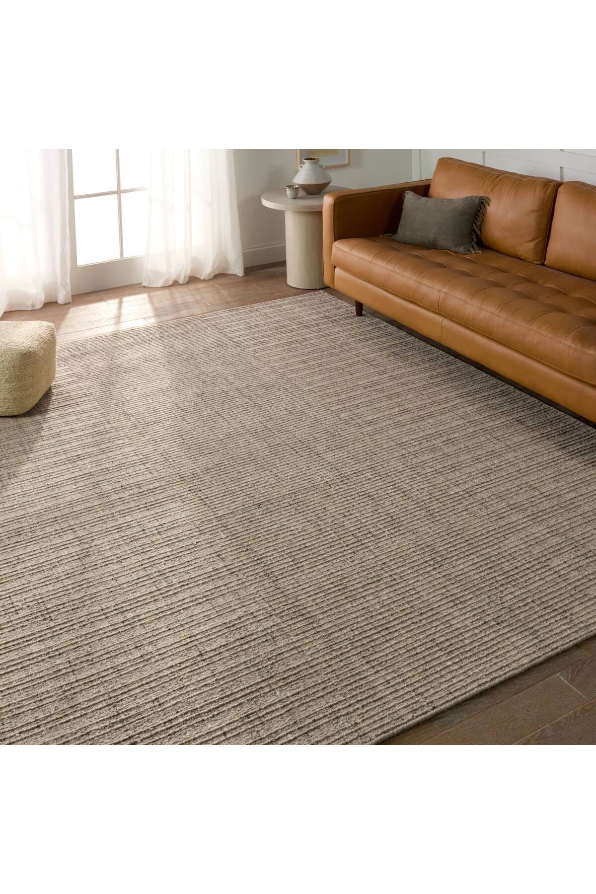 Meet the Amity Rug. This area rug features a heathered gray and cream colorway with flecks of brown and dark gray, and a ridged weave that adds dimension and depth to any modern home. The fiber-dyed wool and durable PET blend of this collection lends the perfect accent to heavily trafficked areas of the home such as living rooms, halls, and entryways.