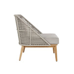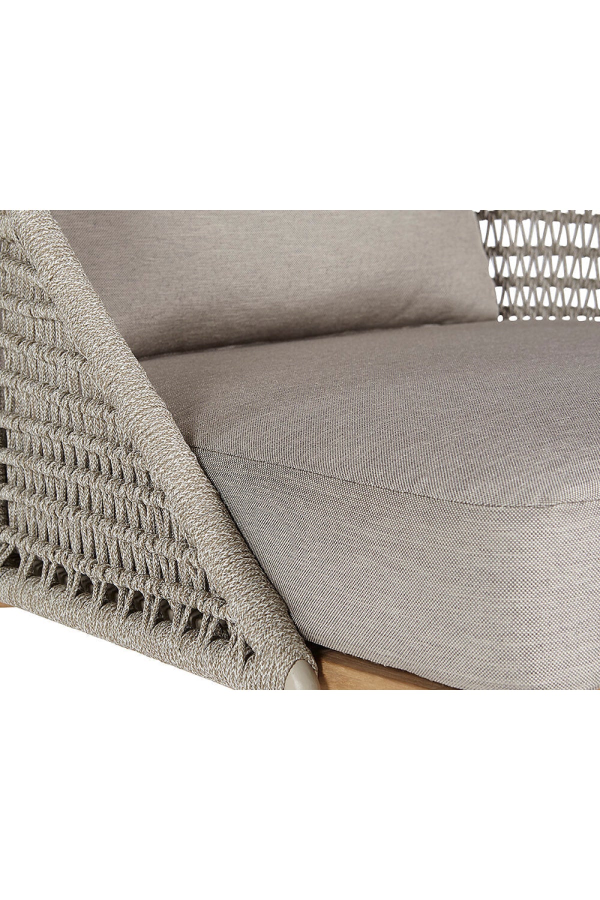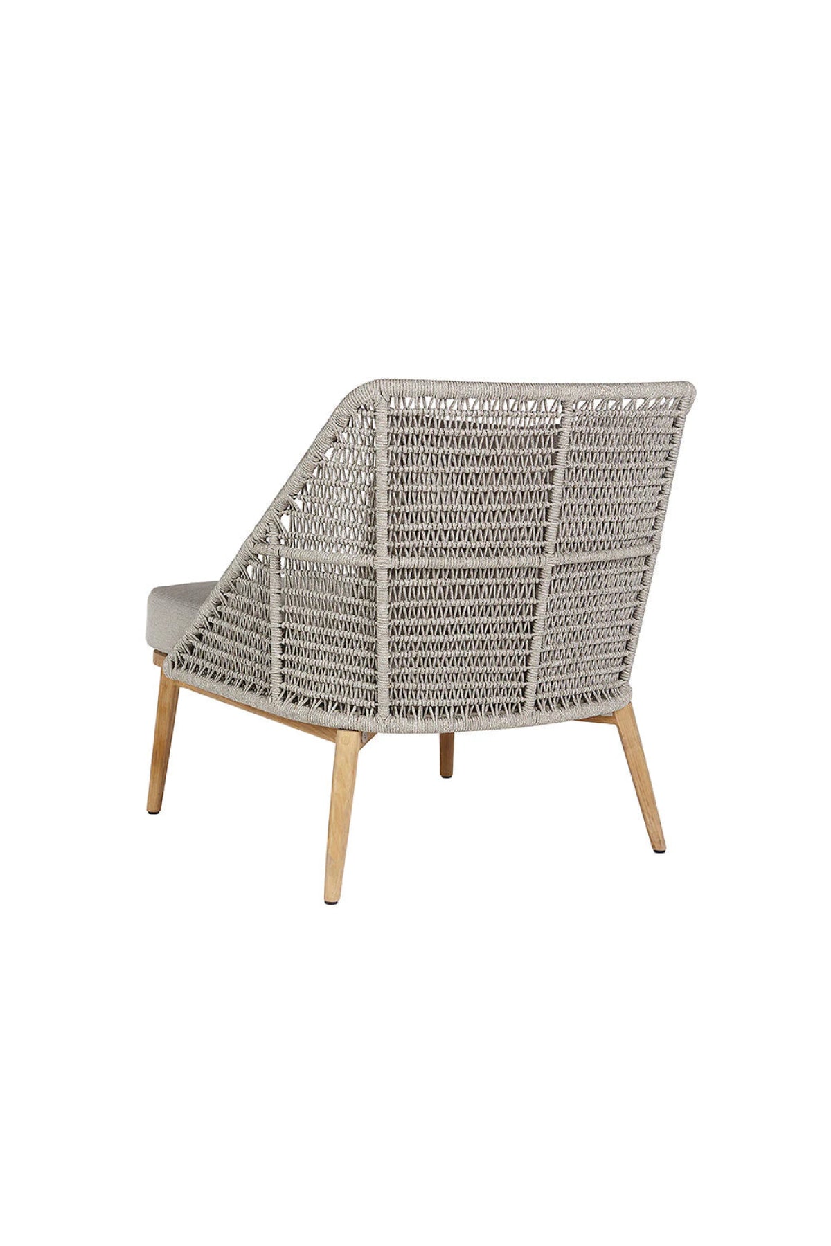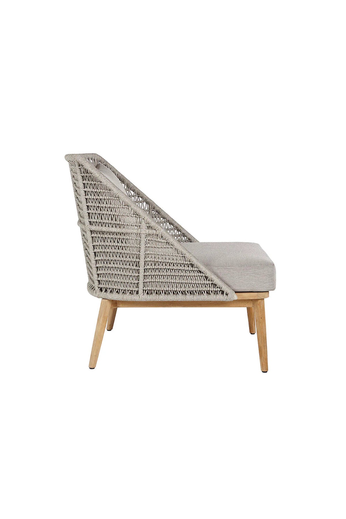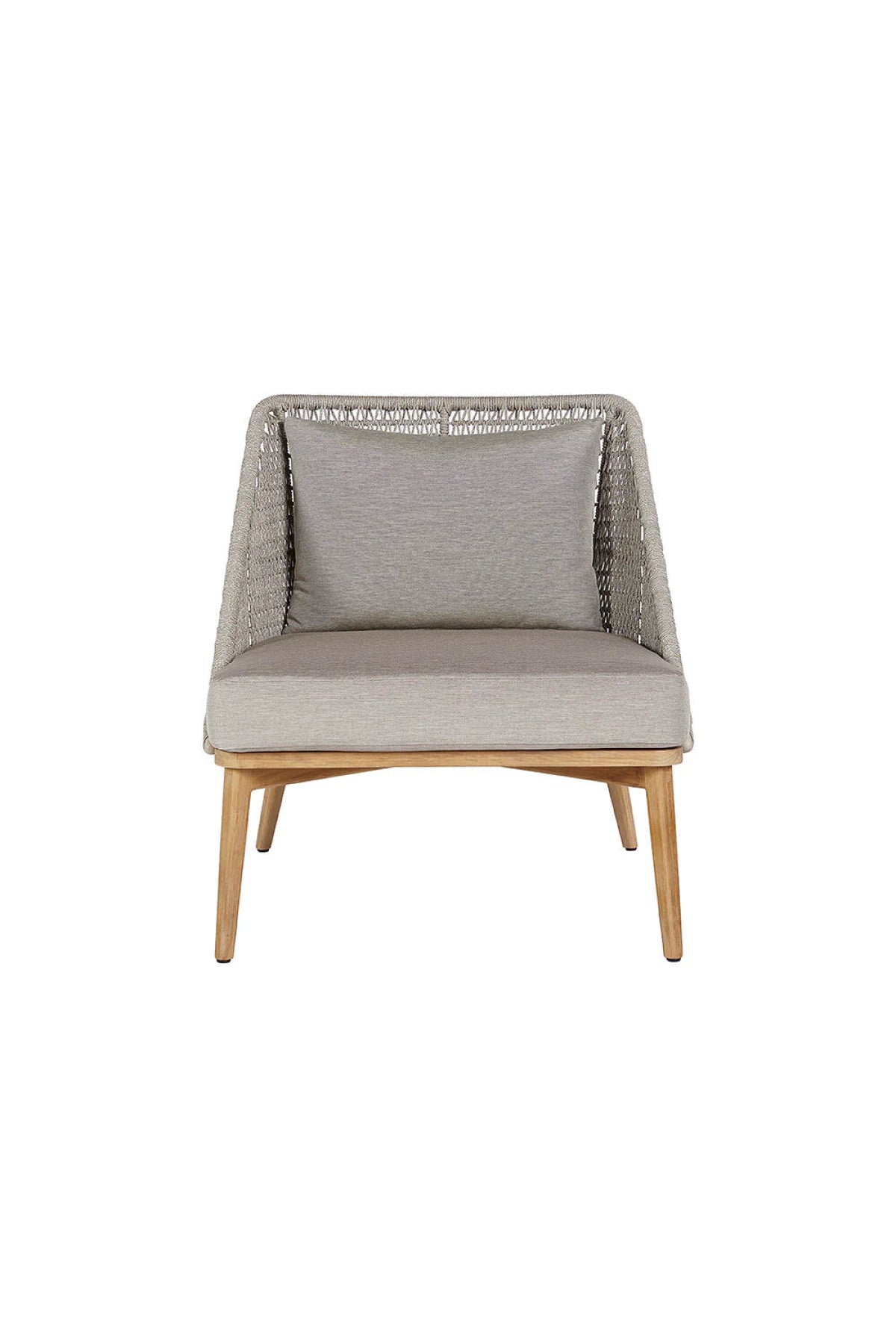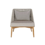 Lose track of time while relaxing in the Andria Lounge Chair. This modern design features a tapered seatback covered in greymix weave with a palazzo taupe seat and natural teak wood base. Teak wood will develop a silver-grey finish over time. Teak wood has a high oil content that enables its outdoor resistant properties. These natural oils may surface and potentially leave teak marks on fabrics upon contact, which can be easily washed away.