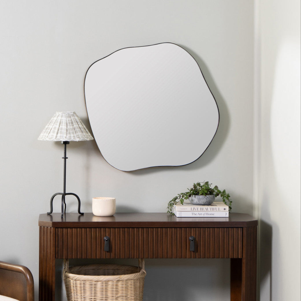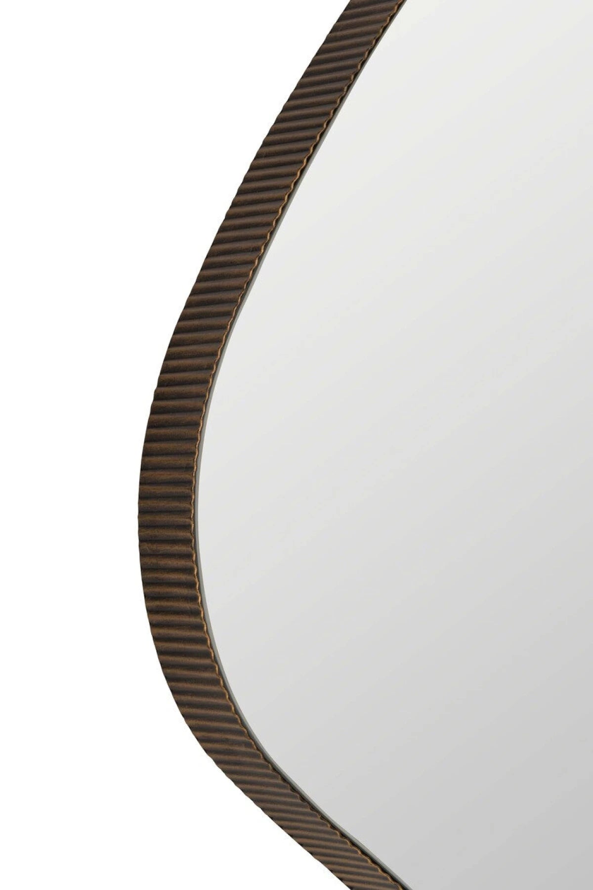 Elevate your space with the Andy Large Gold Wall Mirror, a statement piece that transcends mere functionality. Its distinctive abstract shape creates visual intrigue while the luxurious gold finish catches and reflects light with sophisticated eleganceWipe clean with a lint free, dry cloth. Hangs with 4-Hole Hanger. You can also hang this piece both ways!