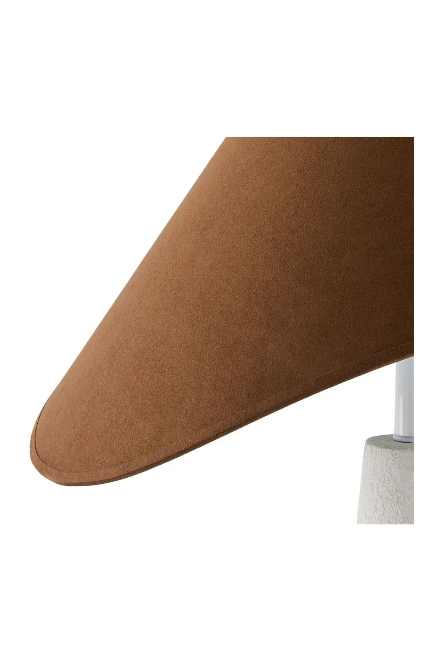 Meet the Apuila Accent Table Lamp. Transform your living space with this stunning concrete table lamp, where modern minimalism meets organic elegance through its clean lines and hand-painted white finish. The soft glow filtering through the tan fabric shade creates an intimate atmosphere that instantly elevates any room's ambiance. This artisanal piece serves as both a functional light source and a sculptural accent, making it a perfect statement piece for your bedside, living room, or home office. Bulb(s) not included.