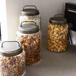 Meet the Archer Canister with Metal Lid. A pretty and practical option for storage, the thick glass jars are topped with a brushed galvanized lid. A hidden rubber seal helps to keep the lid closed tightly and the contents fresh.