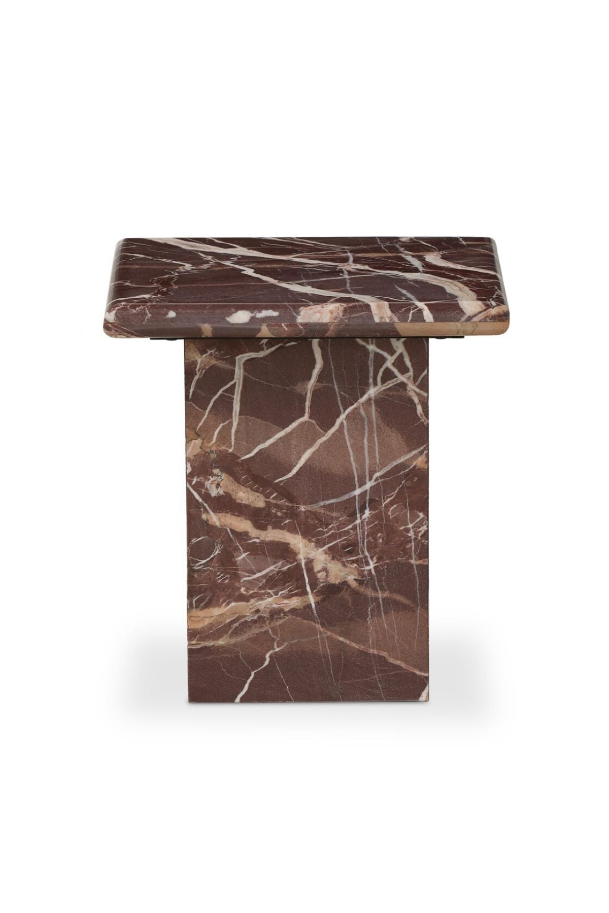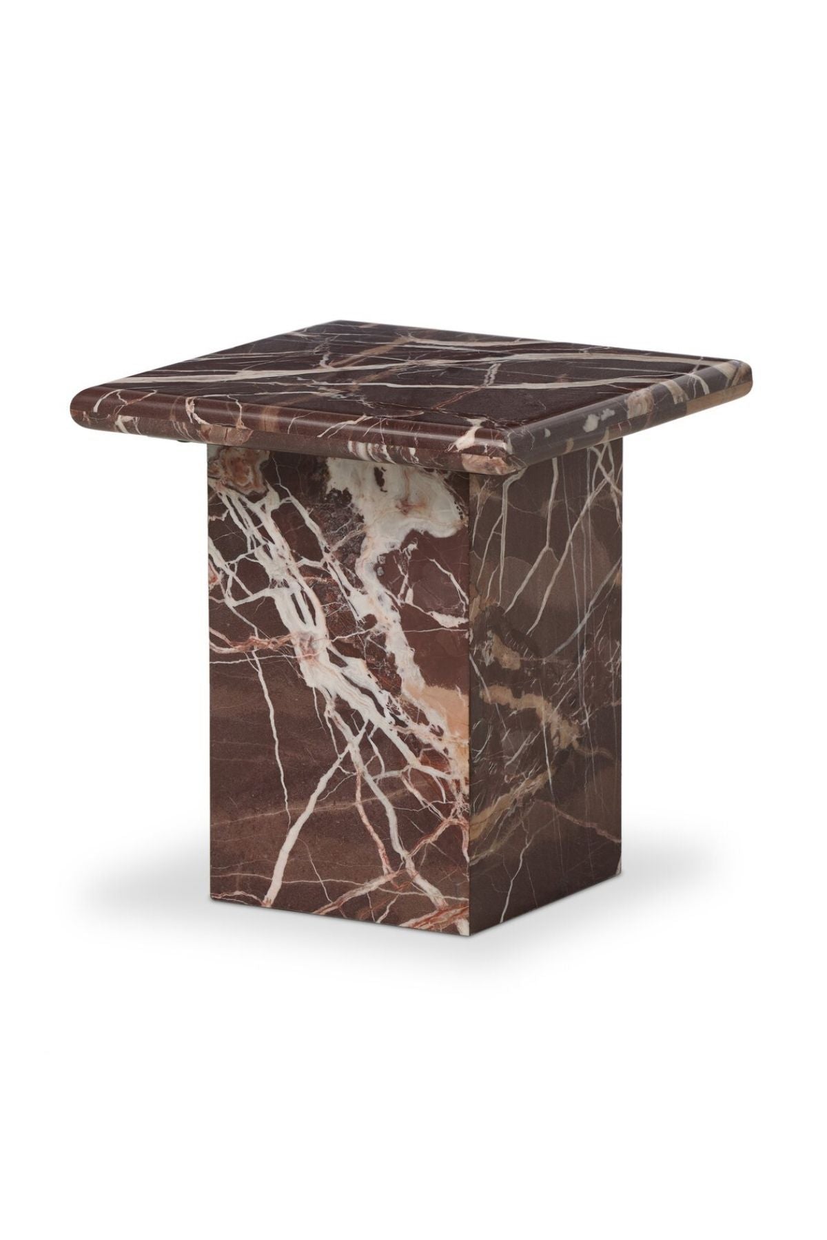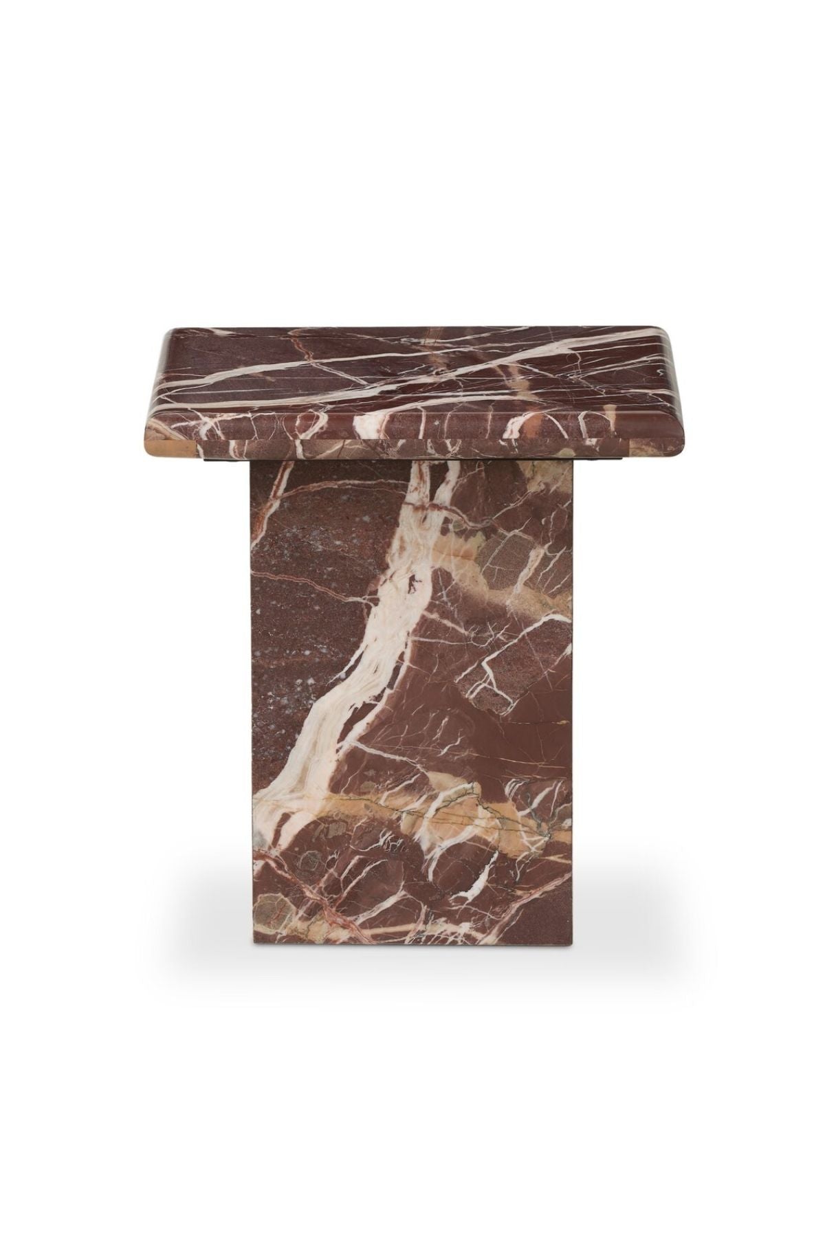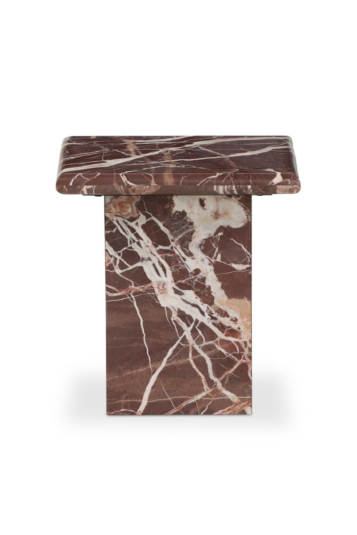 Meet the Arum End Table. Keep your favorite drink or book within reach with a monolithic end table inspired by Italian design of the 1970s. Made entirely from solid marble in a unique wine hue.