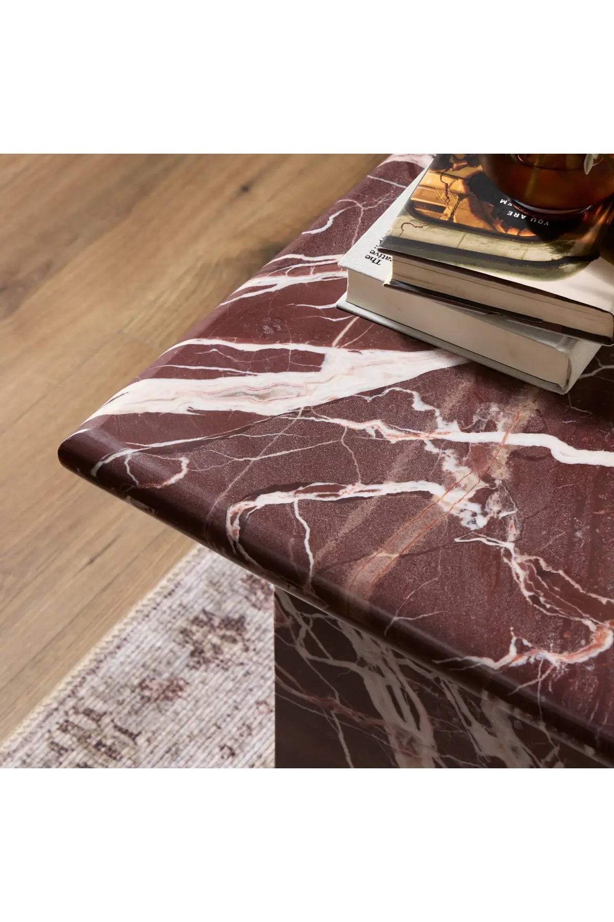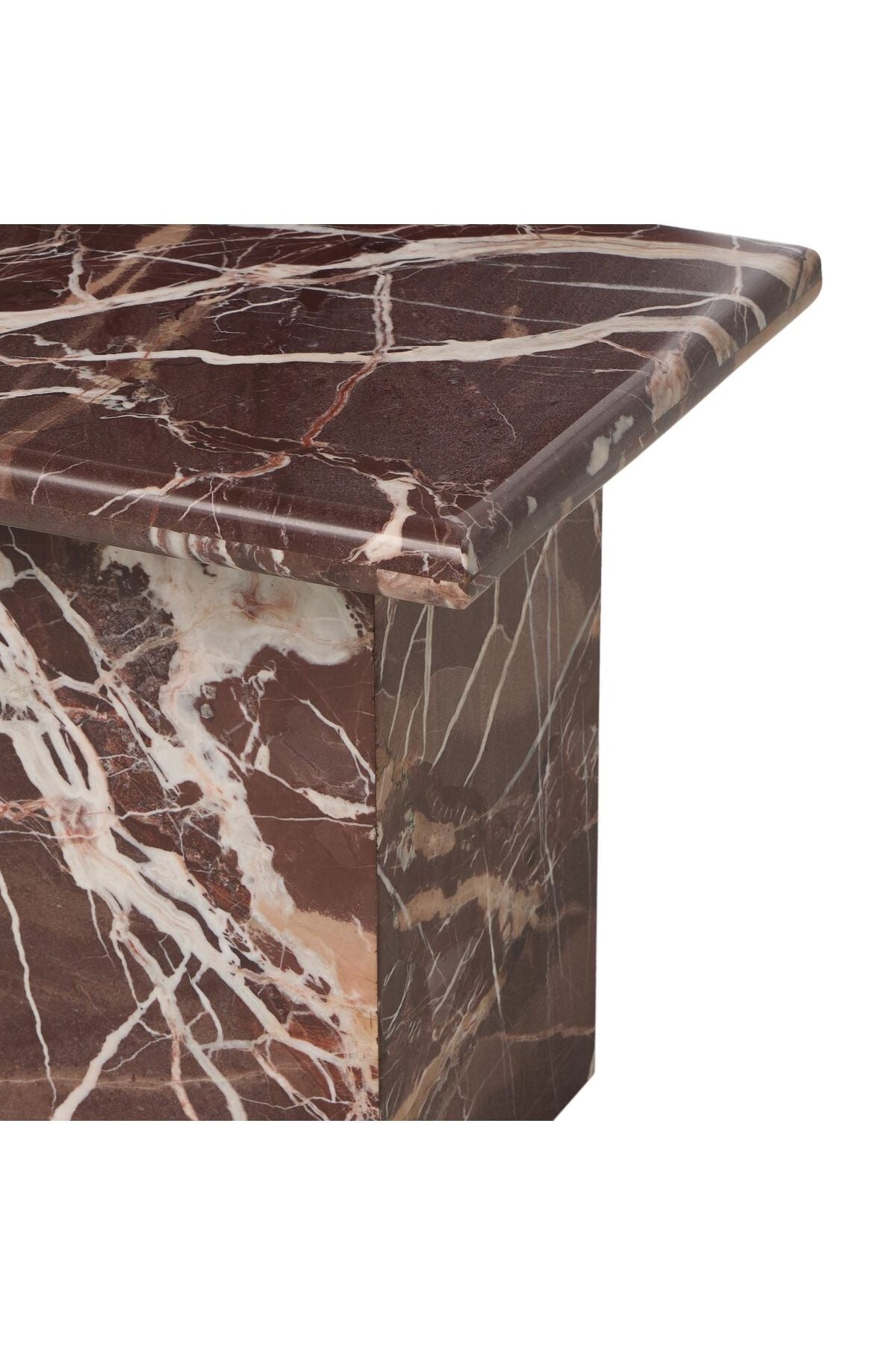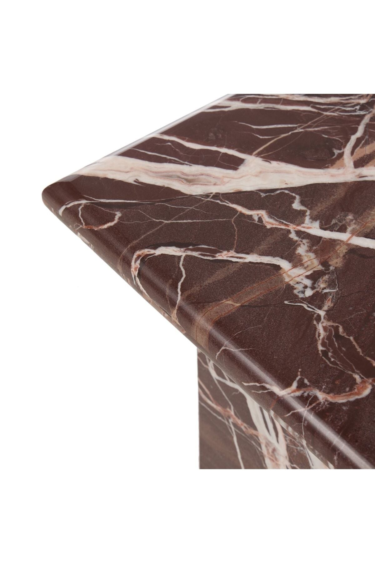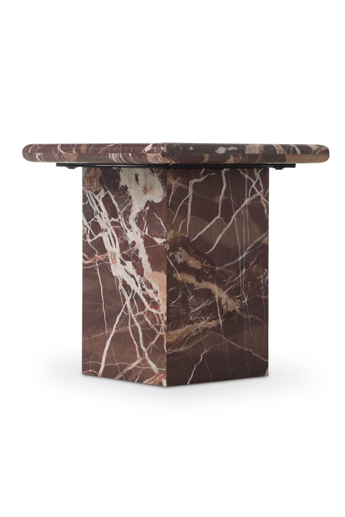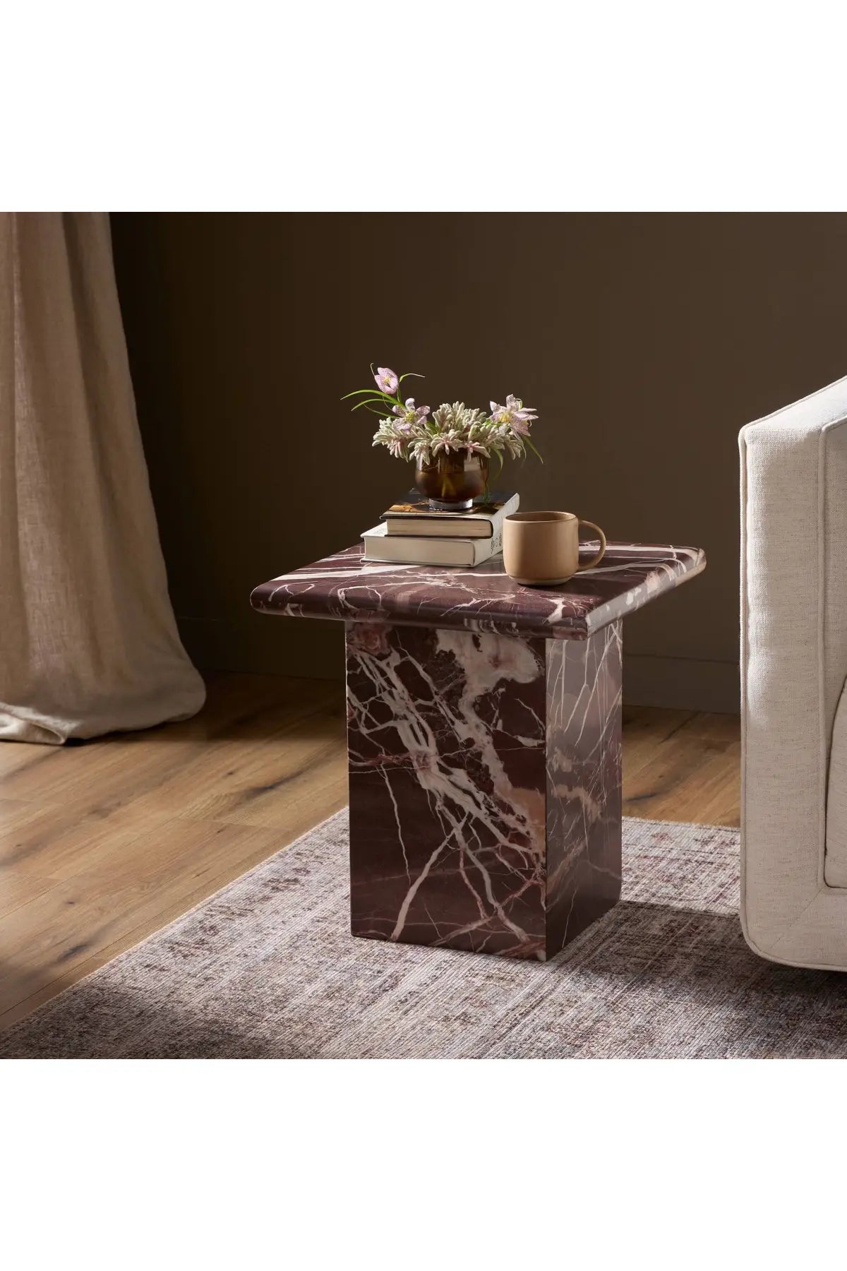 Meet the Arum End Table. Keep your favorite drink or book within reach with a monolithic end table inspired by Italian design of the 1970s. Made entirely from solid marble in a unique wine hue.