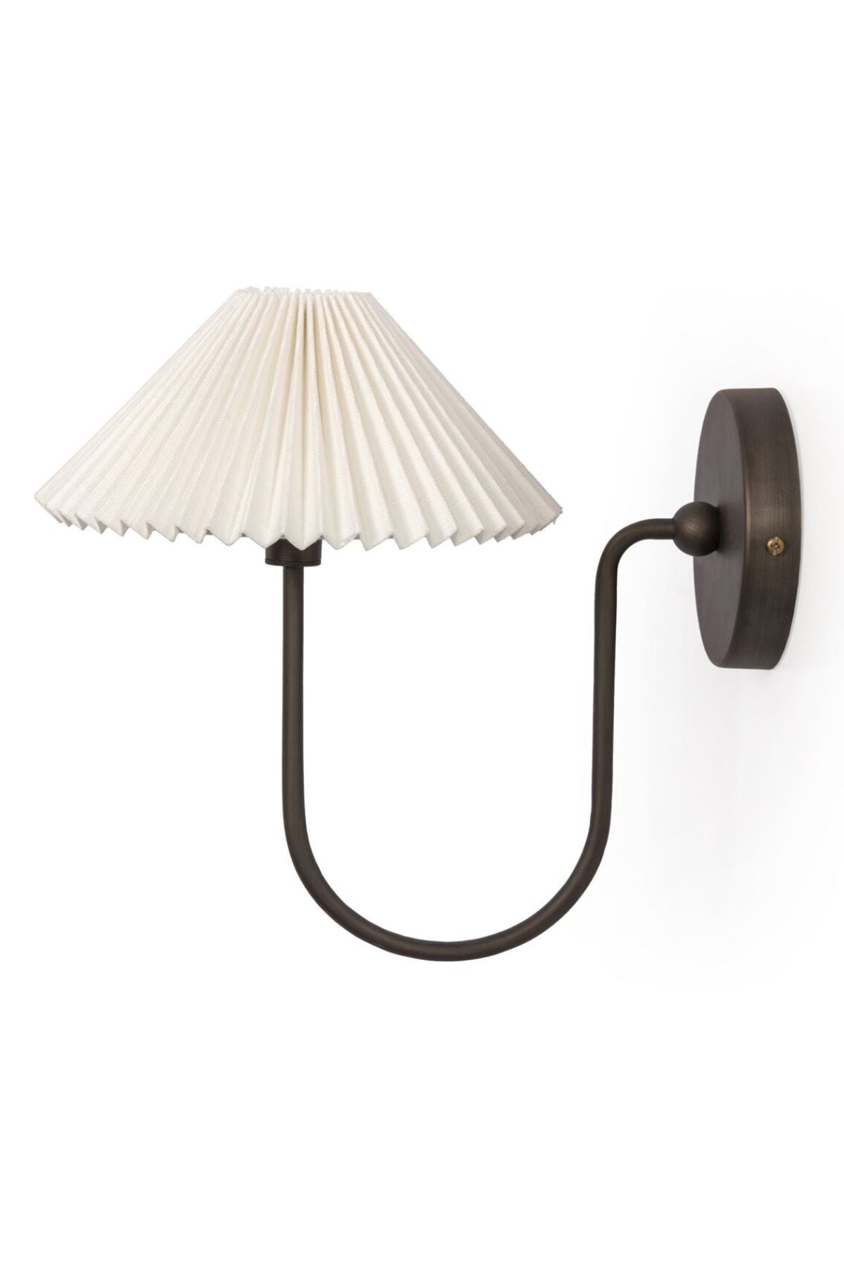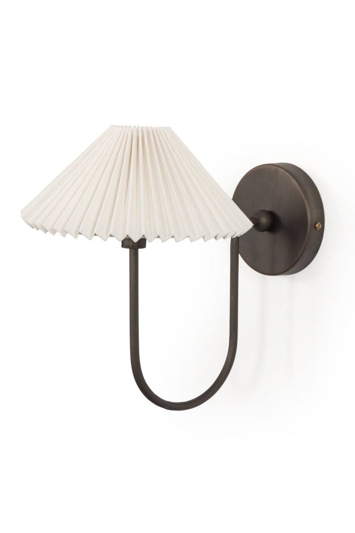 Meet the Ashby Sconce. French inspiration courses this slim sconce, as a curved bronzed arm extends from an iron backplate. Cream, accordion-pleated linen shade allows for a softened, more ambient light. Bulb(s) not included.