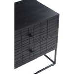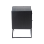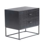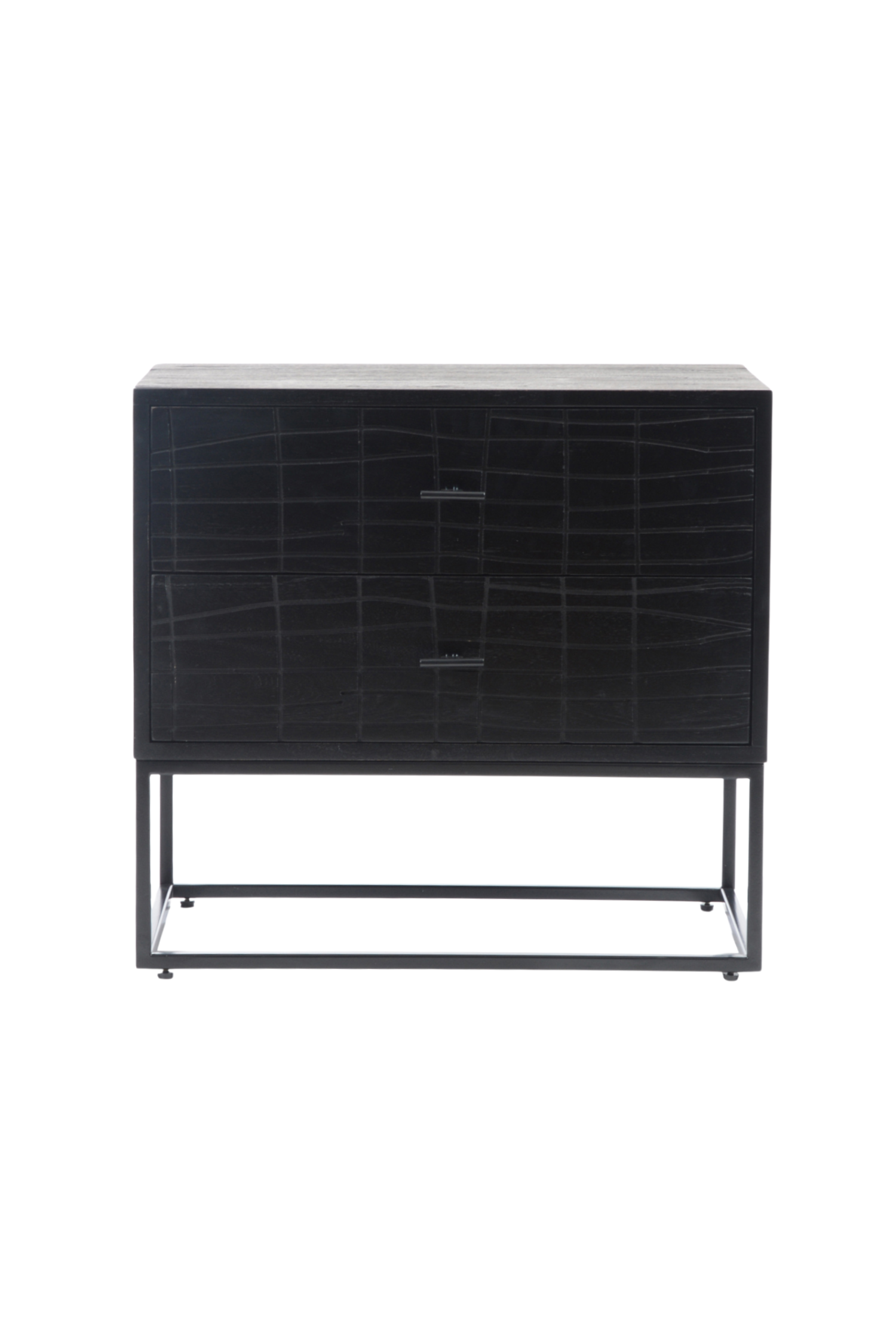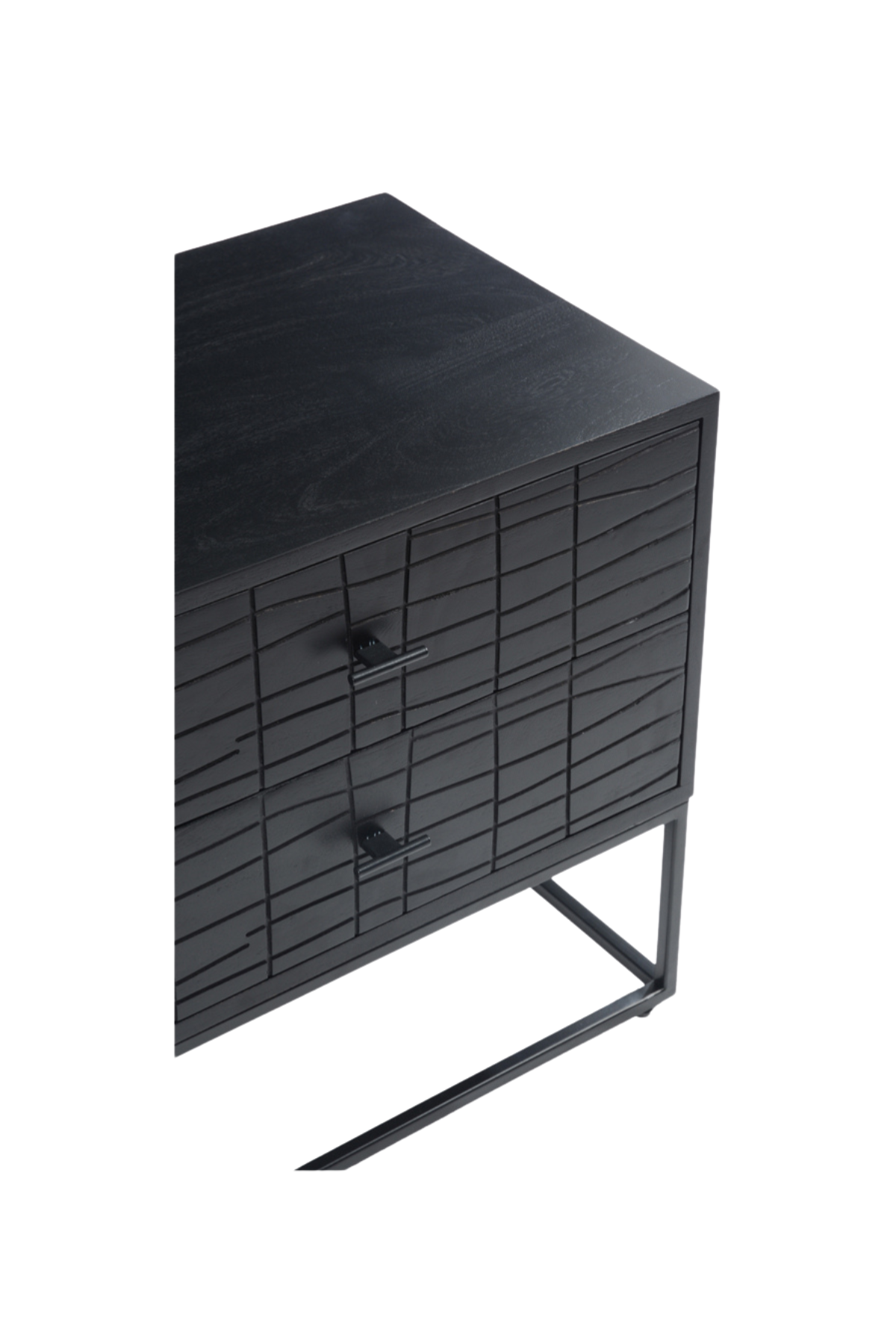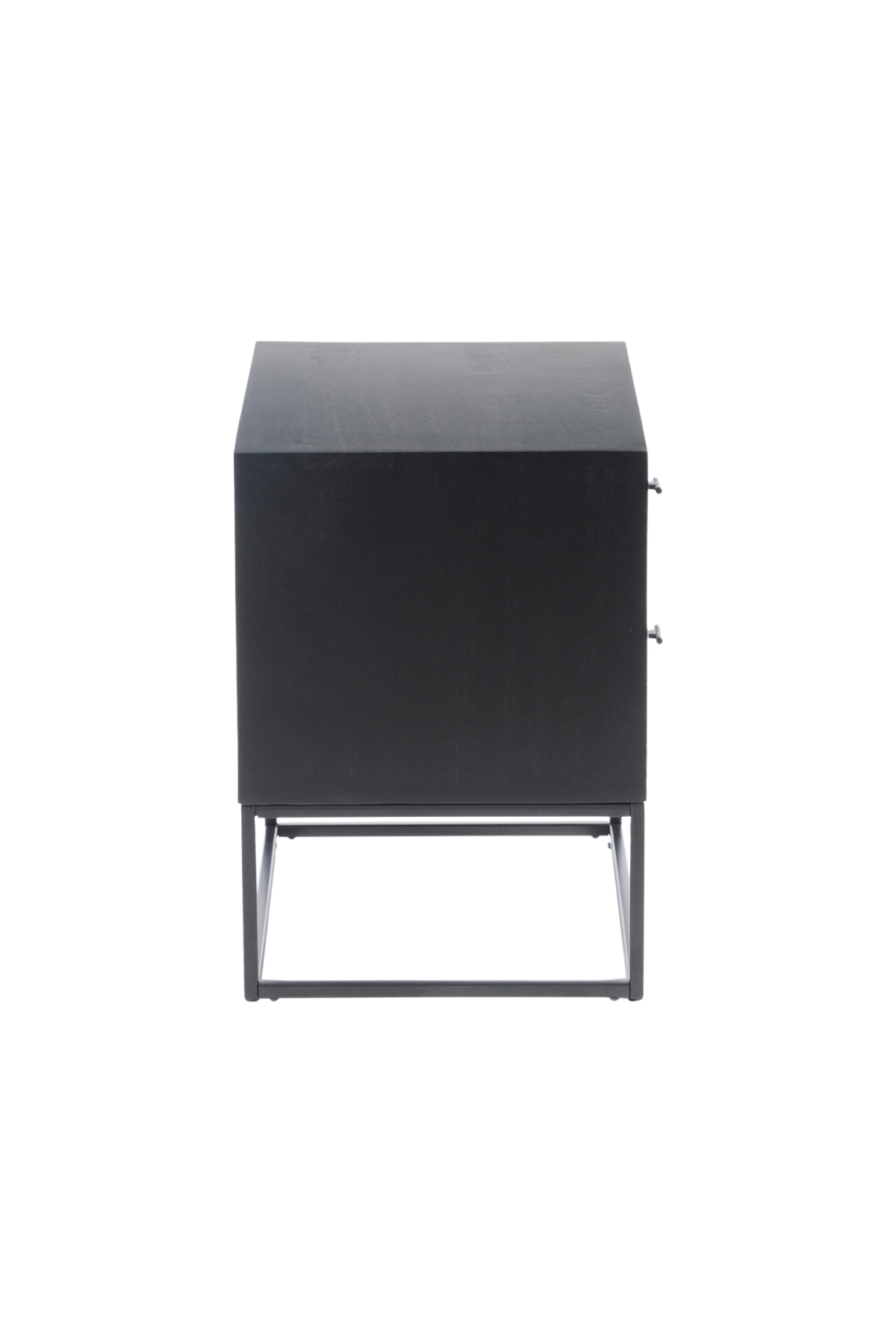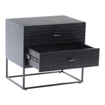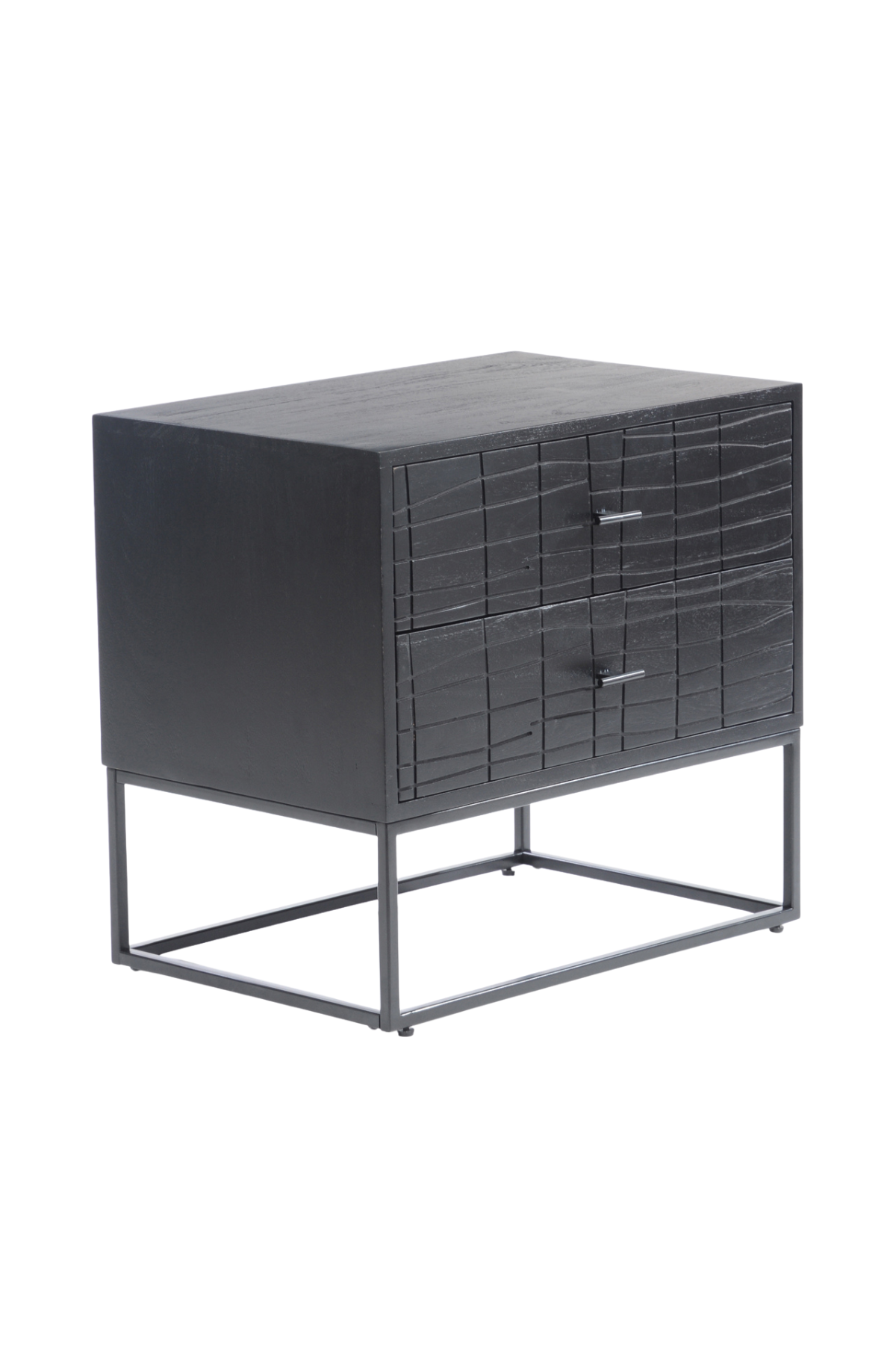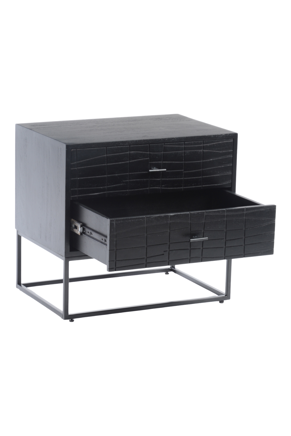 A slick, natural look. The Atelier Nightstand features two sliding drawers with textured detailing. A cool iron frame supports this minimal stand.