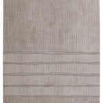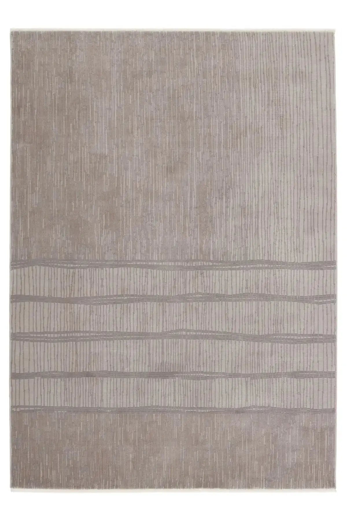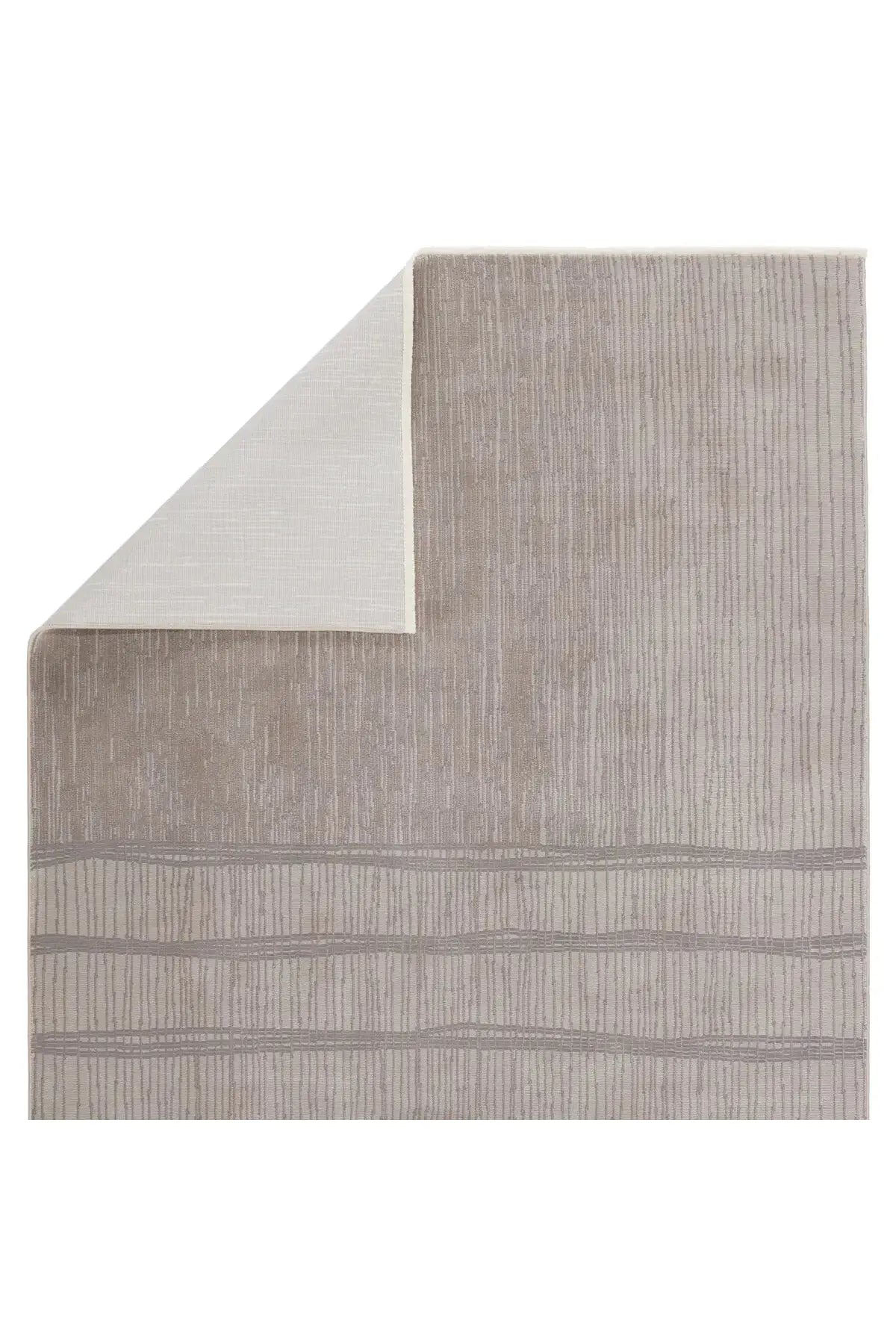 Meet the Aura Rug. This rug features a modern linear design with soft gray tones that fit any room. Made from durable polyester and viscose, it offers the elegant look of a hand-knotted rug at an affordable price. Its versatile style adds warmth and sophistication to your space.