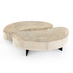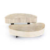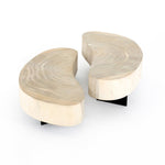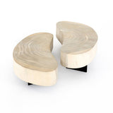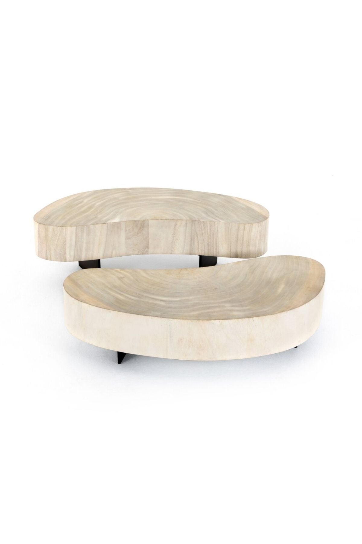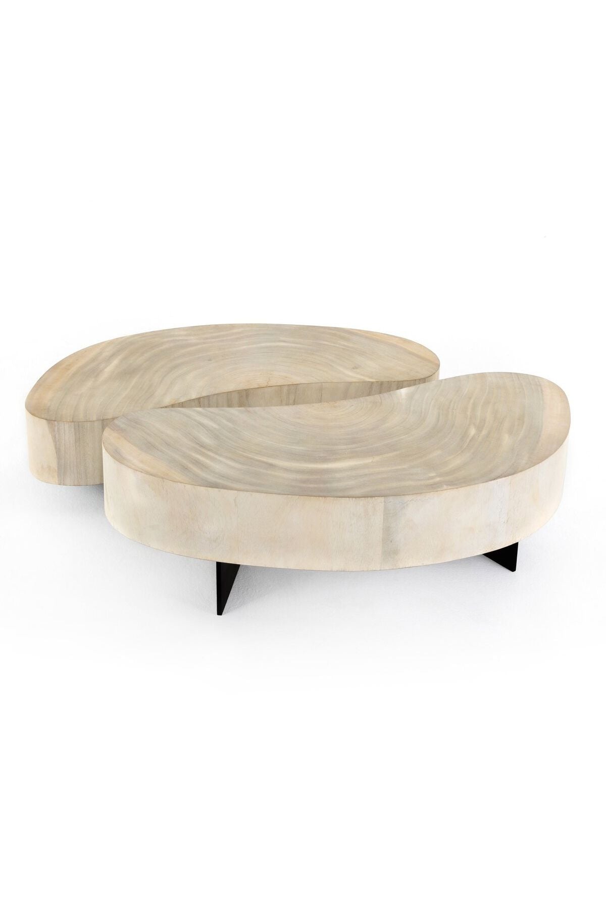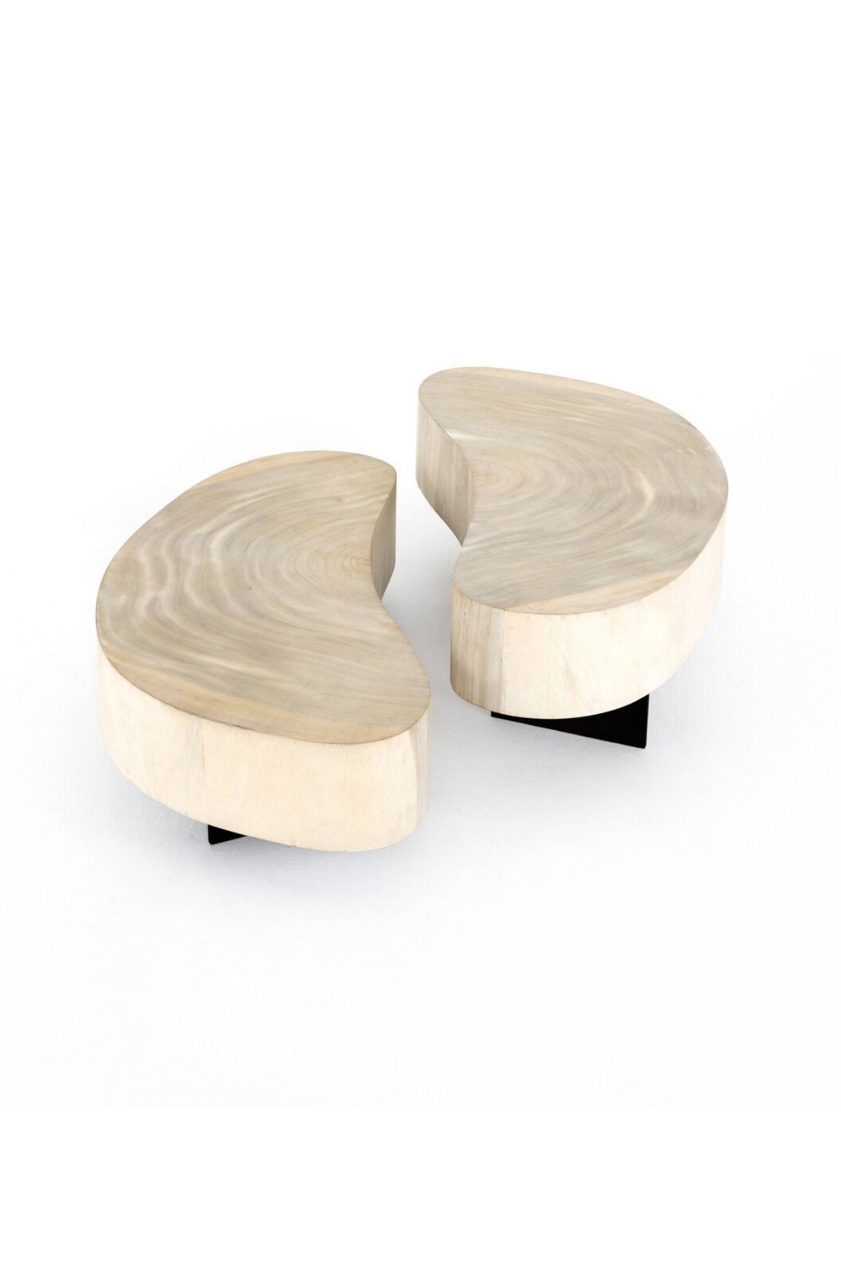 The Avett Coffee Table is a natural beauty, and a total novelty. Oyster-cut Guanacaste forms kidney-shaped coffee tables in varied heights, creating a beautifully layered look. Visible veneer rings speak to woods' natural graining, while a dark gunmetal-finished base provides clean contrast to the whole look. Tables sold as a set or separately.