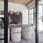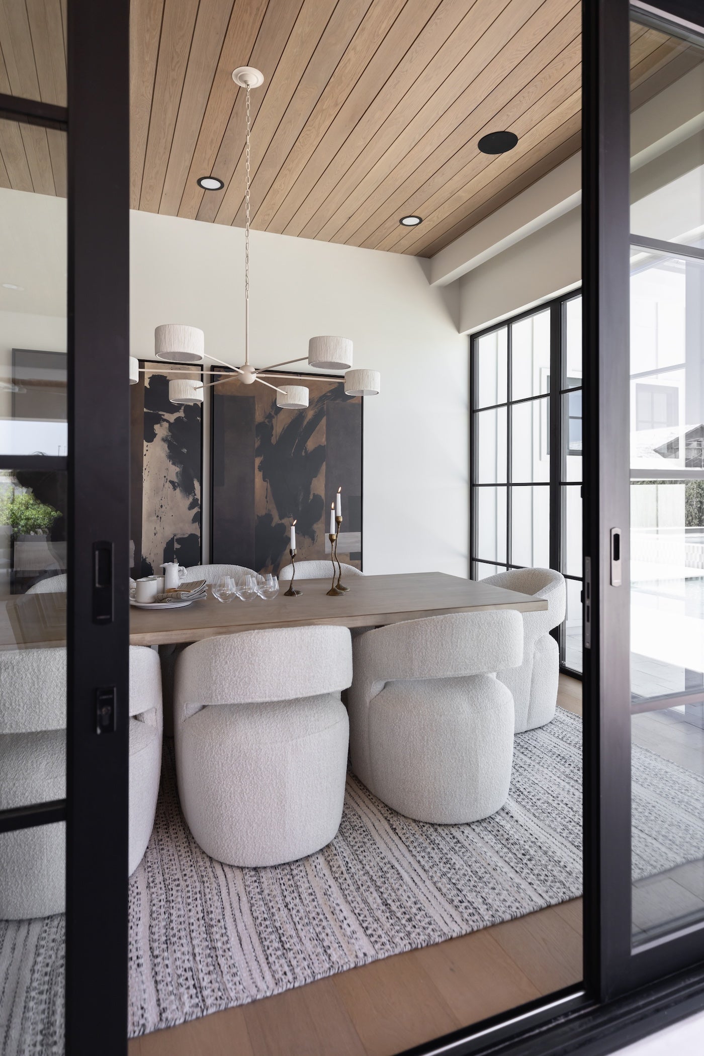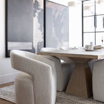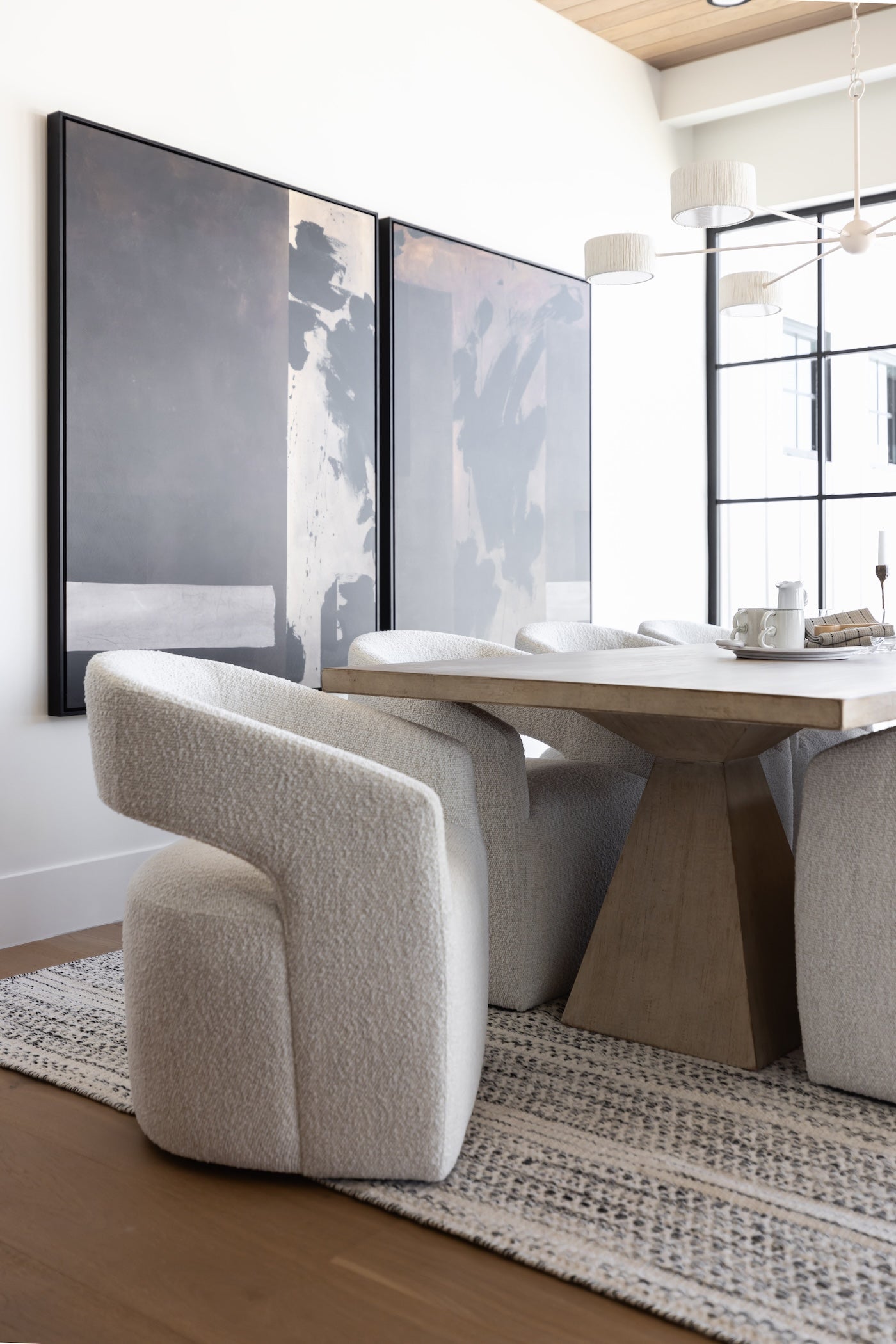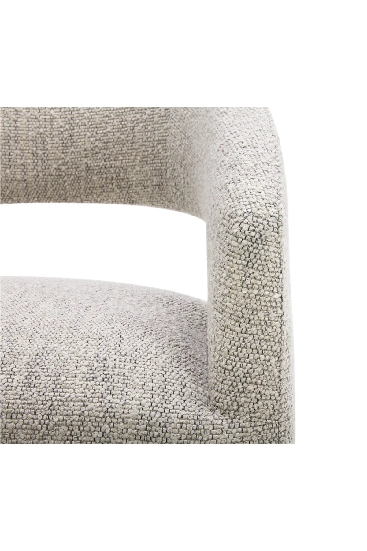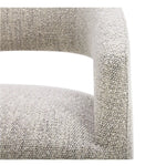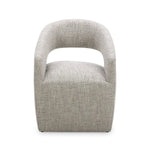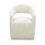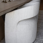 A contemporary dining chair upholstered with a NeverFear™ performance boucle, Barrow is easy to clean and easy on the eyes with a rolling base that lets you pass the peas and bounce from conversation to conversation. The curved back, along with the ultra-comfortable feather, high-density foam and poly-fill cushioned seat adds living room comfort to the dining experience.