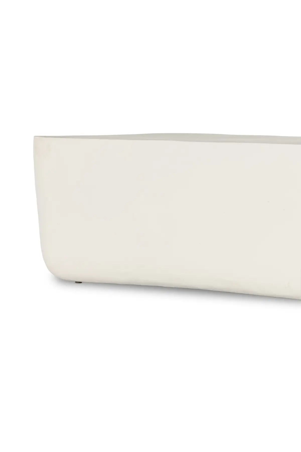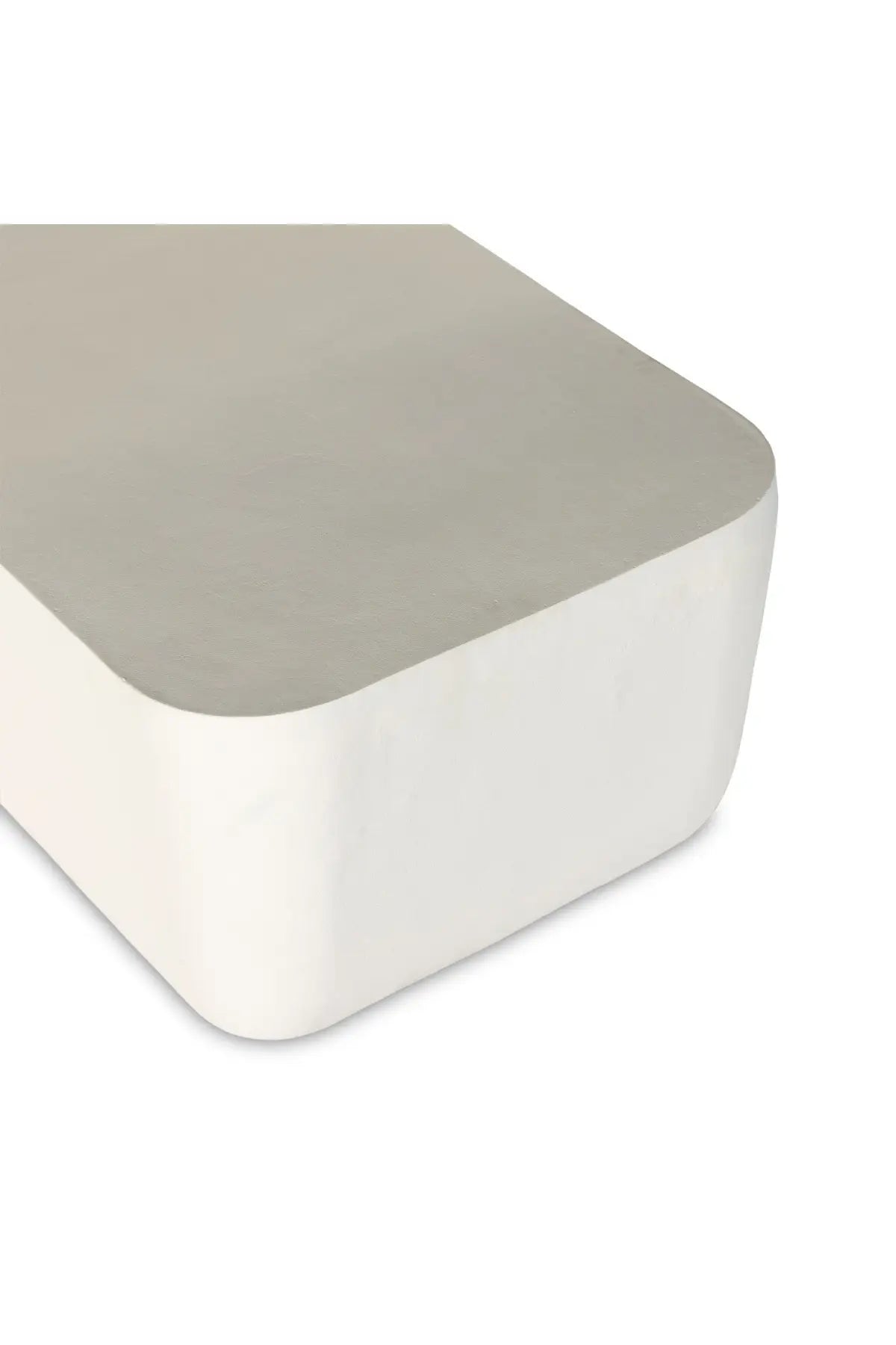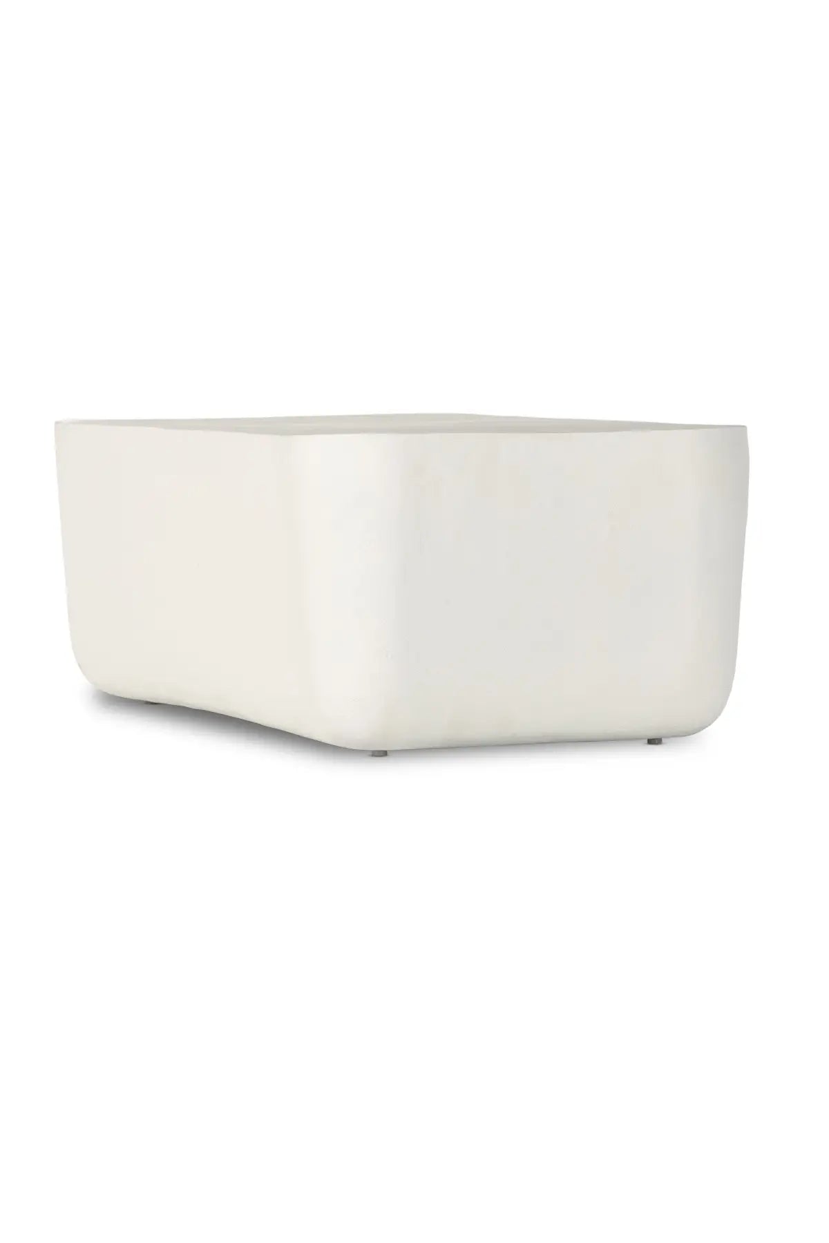The Basil Outdoor Rectangular Coffee Table is stylish indoors or out. A matte white or aged grey finish highlights this cast aluminum table's natural depth, for a sleek look with implied movement. Cover or store indoors during inclement weather and when not in use.