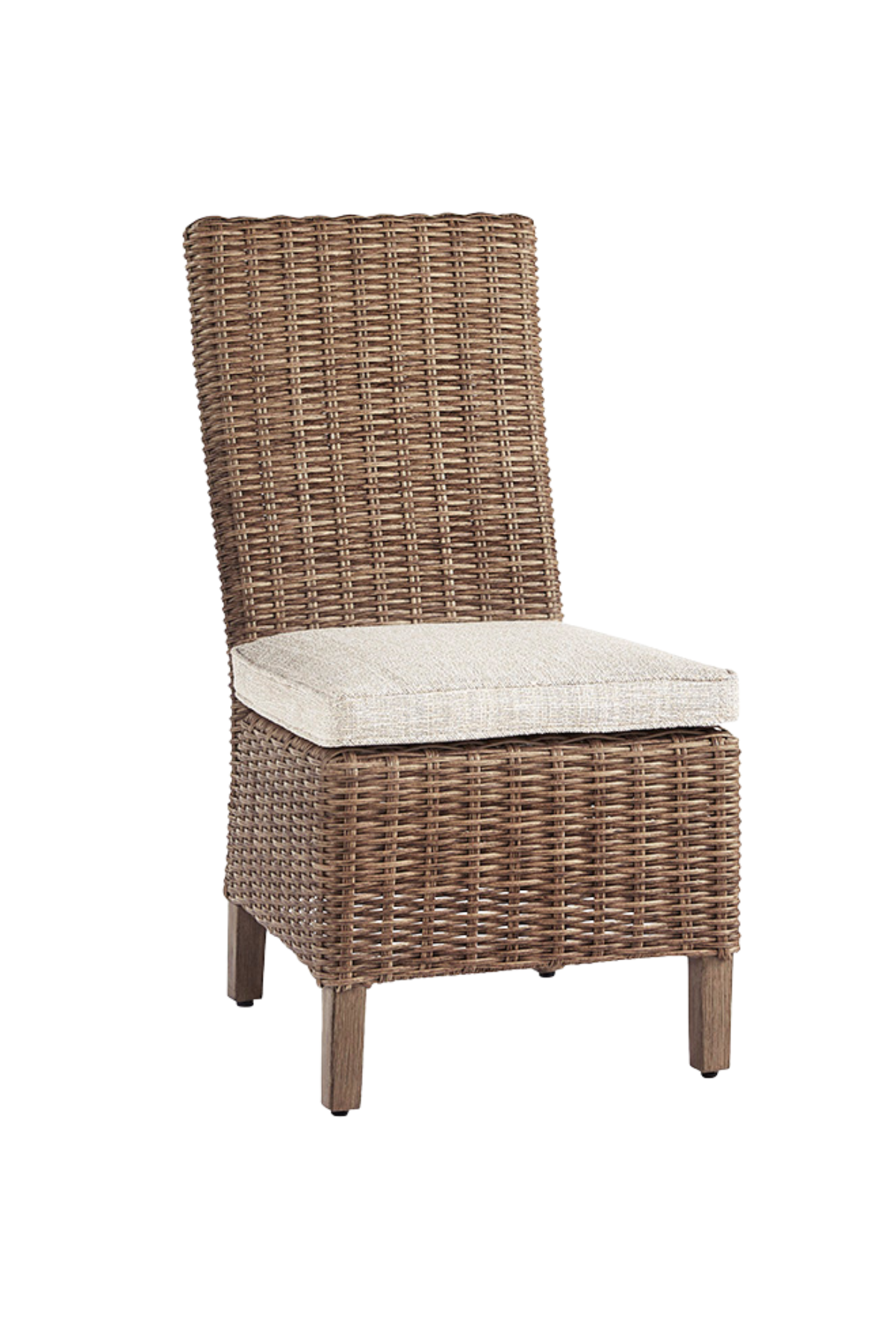 Meet the Beachcroft Outdoor Side Chair. These side chairs features a driftwood-inspired design perfect for indoor and outdoor use. Each includes a plush, removable cushion covered in easy-to-clean Nuvella® fabric for lasting comfort and style.