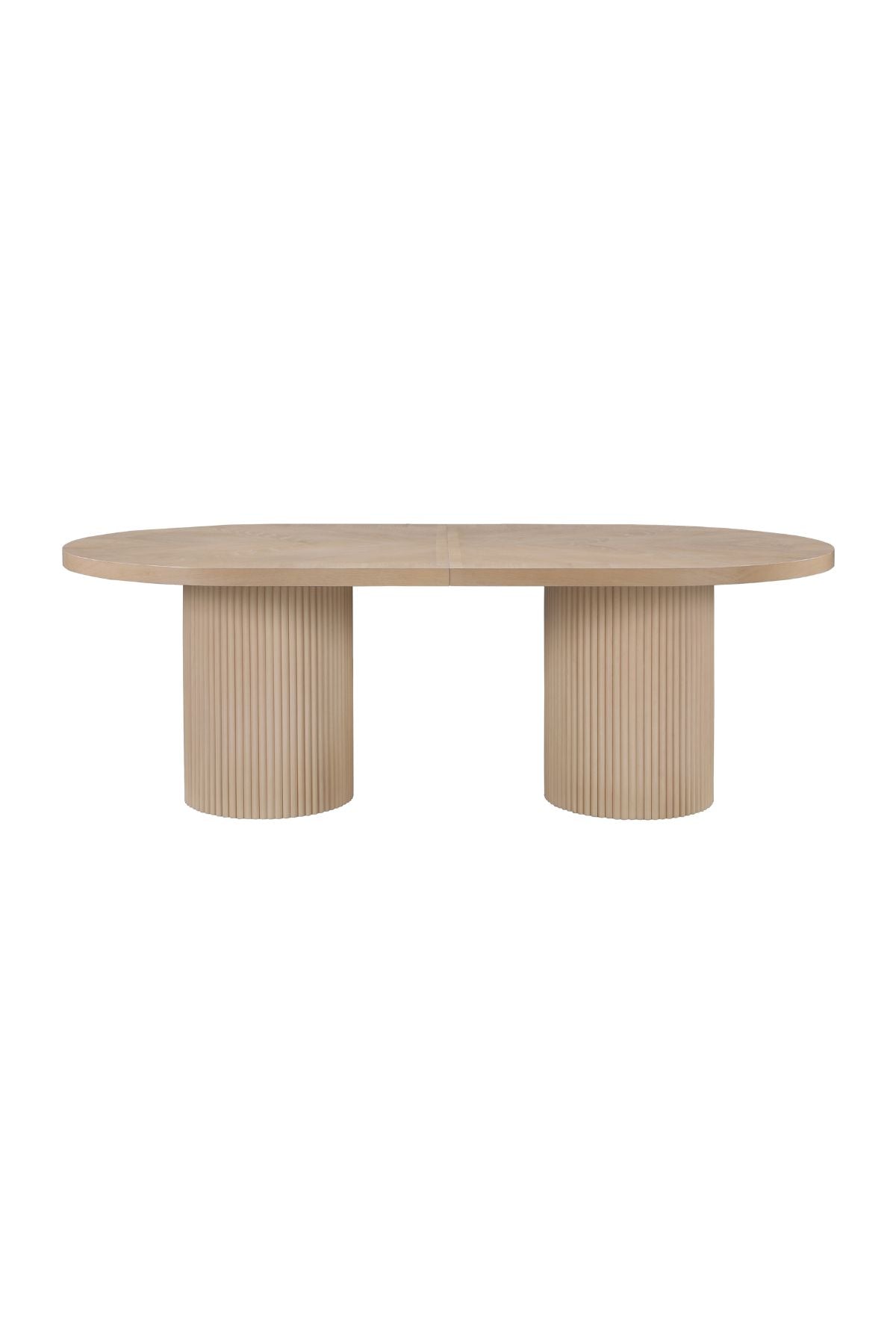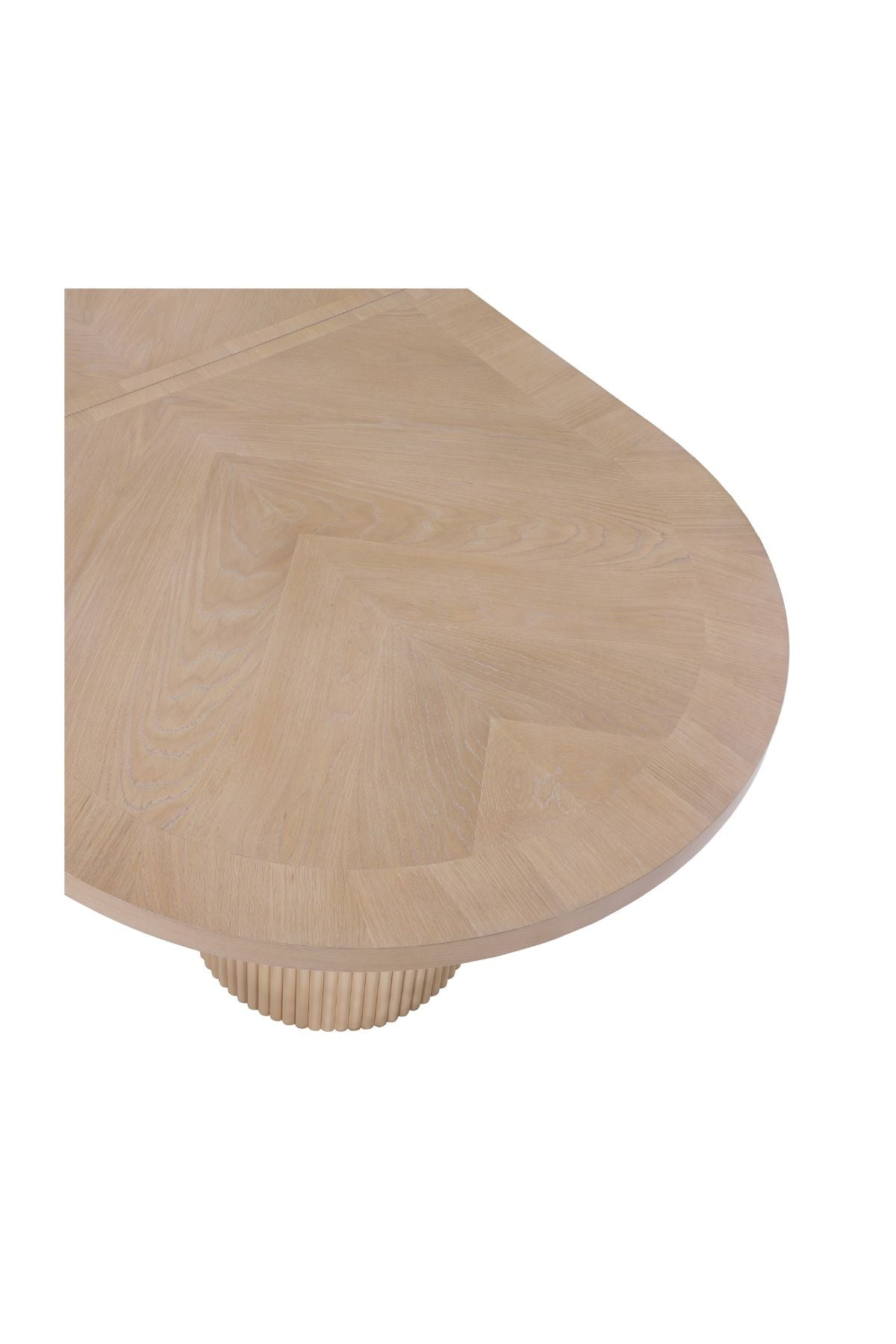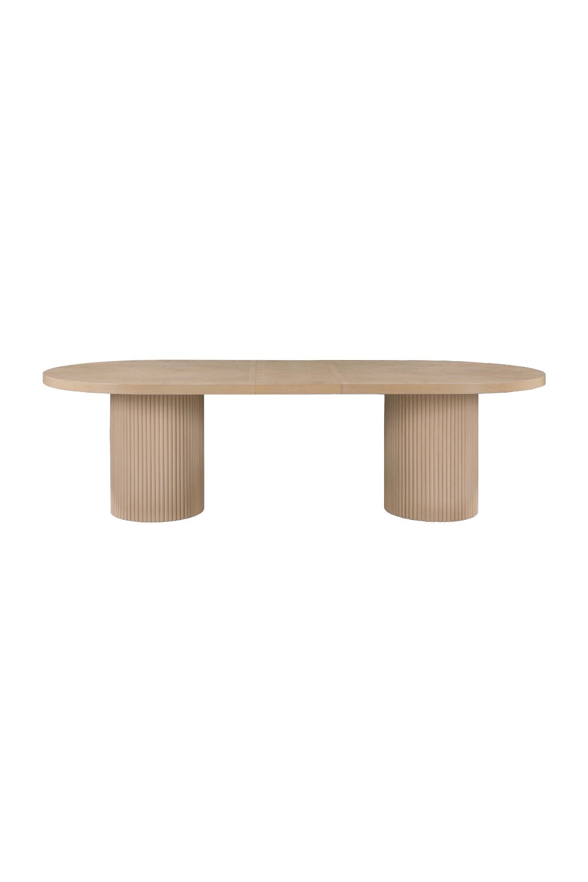 Meet the Belinda Extendable Dining Table. Its modern oval design is perfect for any contemporary dining space, while its fluted bases provide durability as well as make a unique fashion statement. Two leaves are included, so you can adjust the length of the table according to how many guests you're entertaining. Assembly required. Due to natural factors, no item has the same grain finish or wood knots.