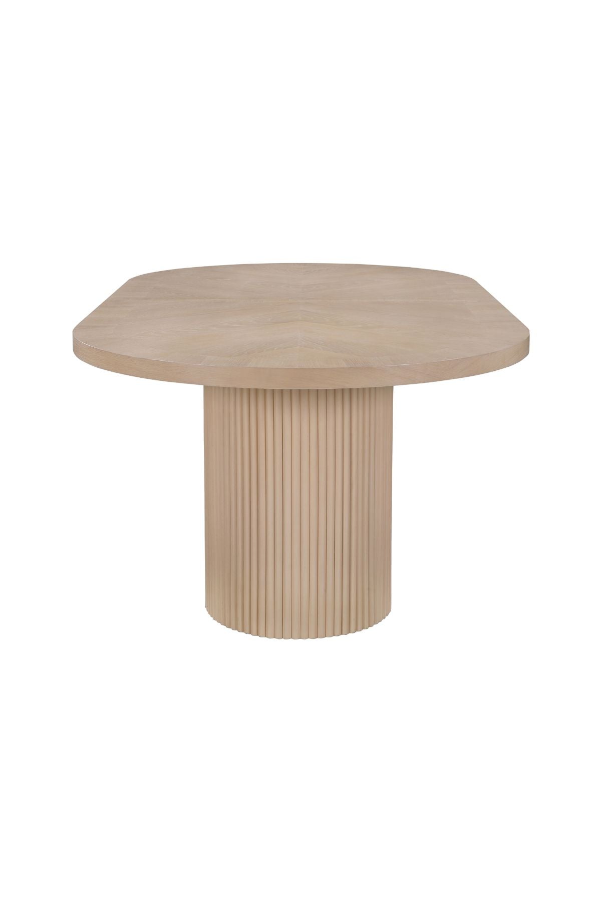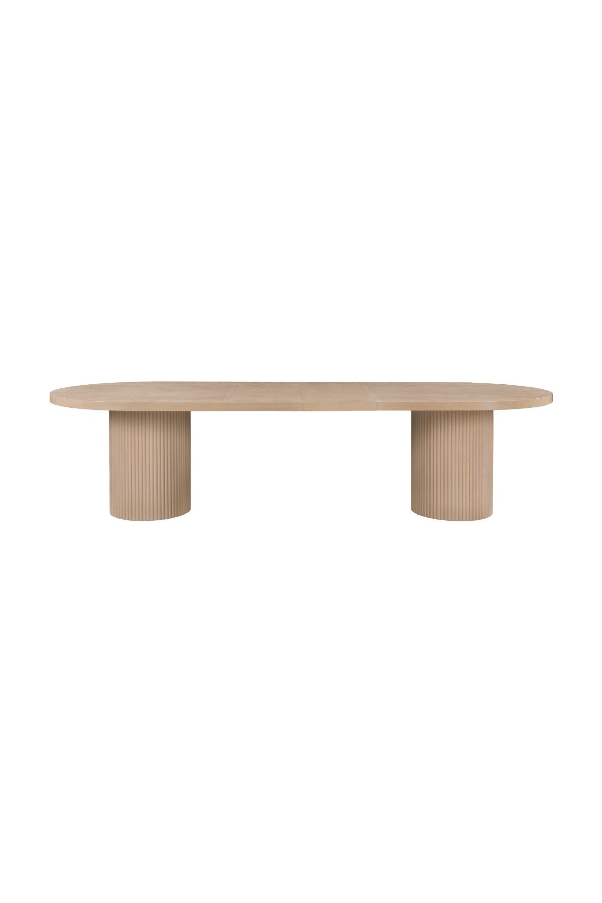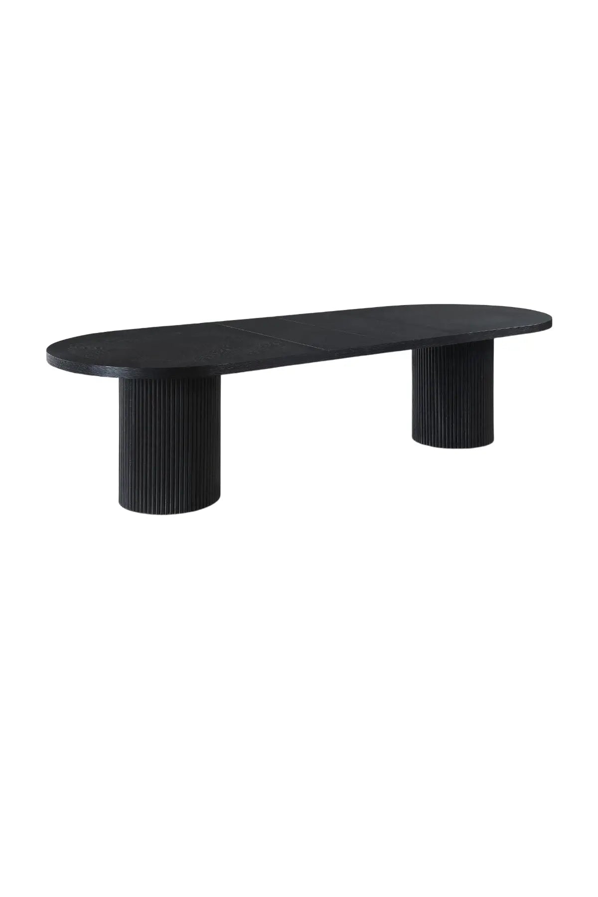 Meet the Belinda Extendable Dining Table. Its modern oval design is perfect for any contemporary dining space, while its fluted bases provide durability as well as make a unique fashion statement. Two leaves are included, so you can adjust the length of the table according to how many guests you're entertaining. Assembly required. Due to natural factors, no item has the same grain finish or wood knots.