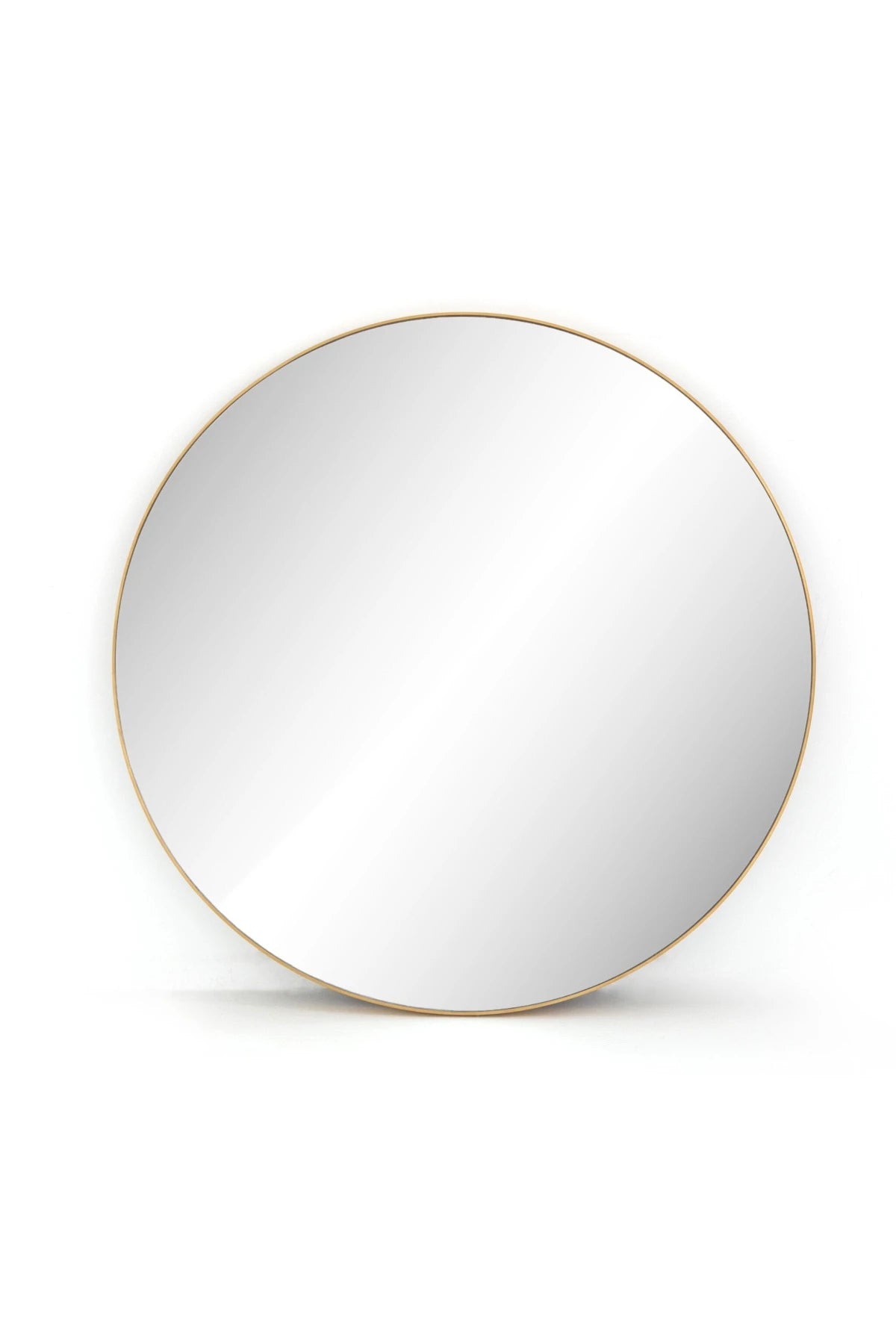 The Bellvue Round Mirror exudes grace on the edge of modernity. Round stainless steel takes on a polished brass tone to let clean, mirrored glass speak for itself.