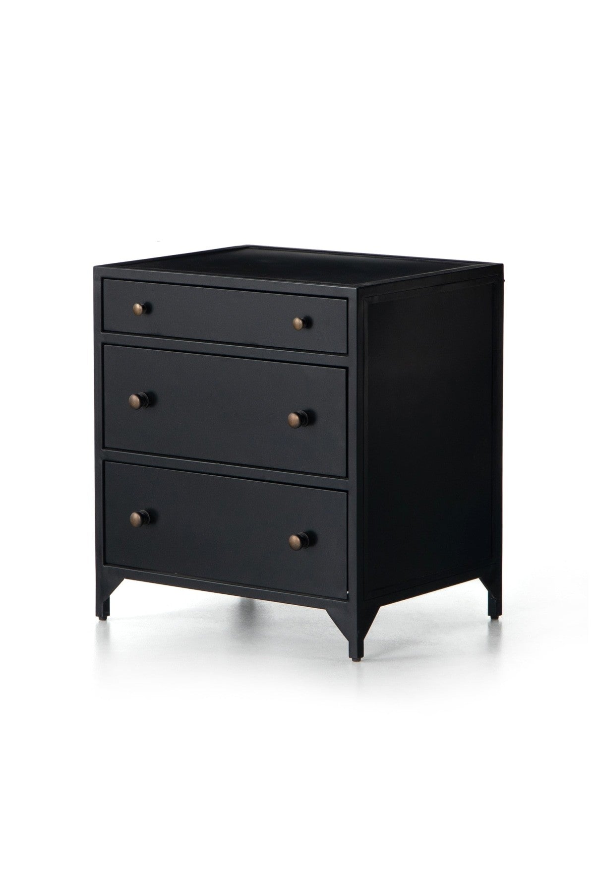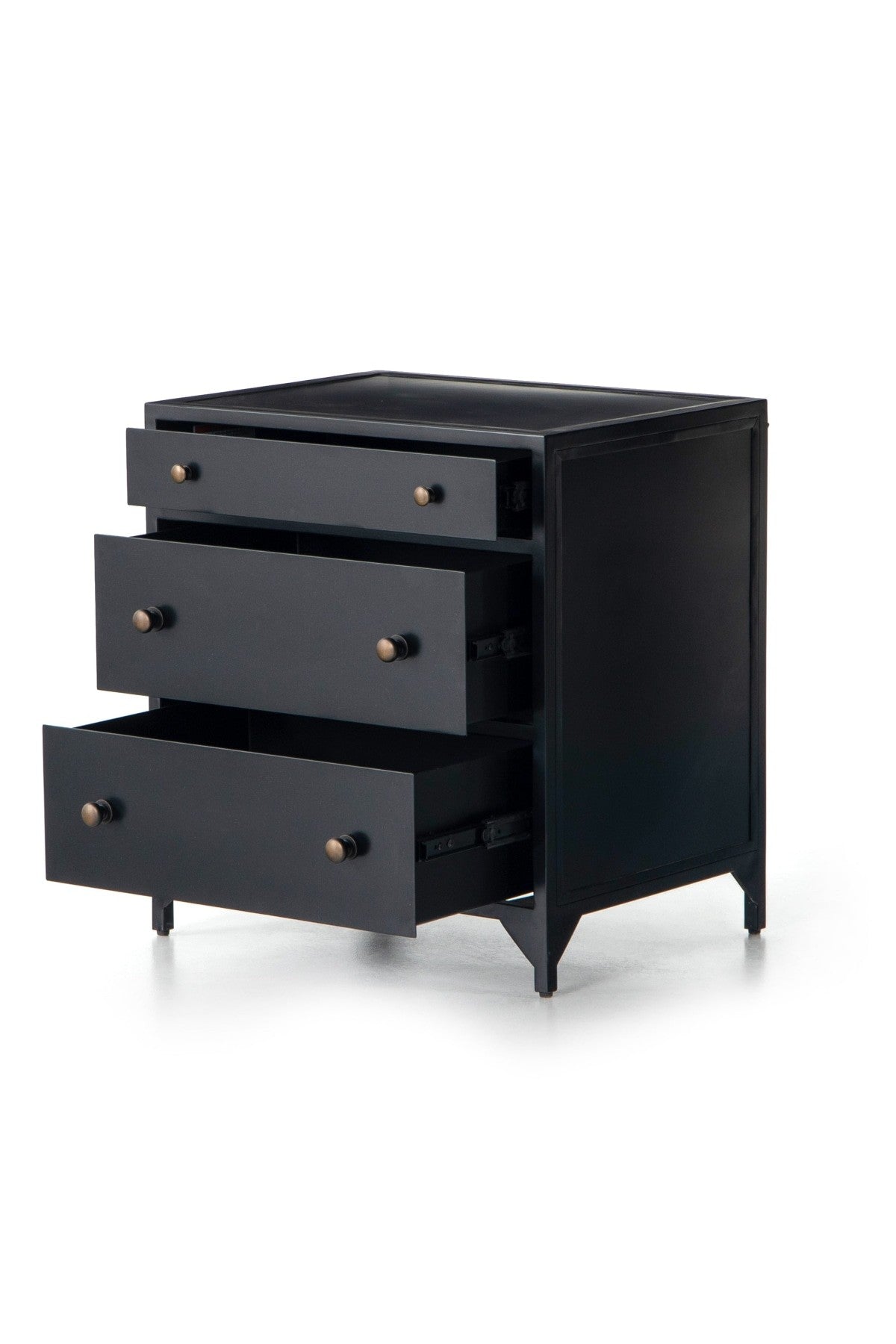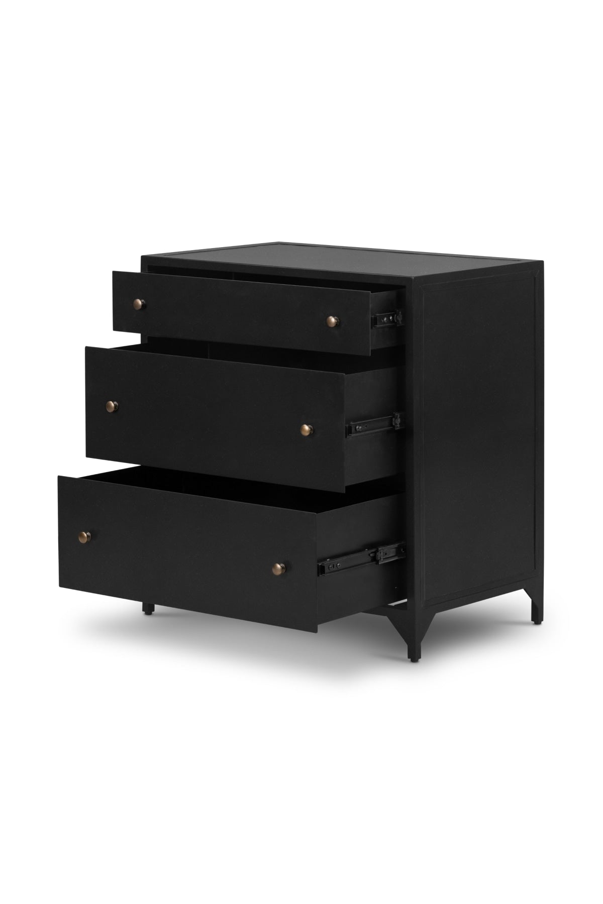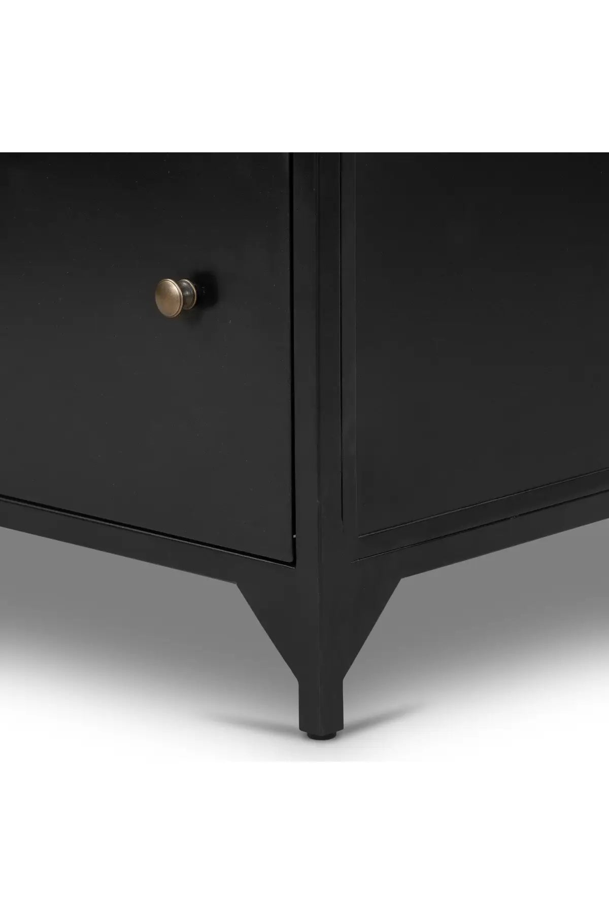 Sleek and industrial-inspired, black iron forms the spacious Belmont Storage Nightstand, with and brass knobs for cool contrast. Great solo or doubled up for stylish bedside storage.