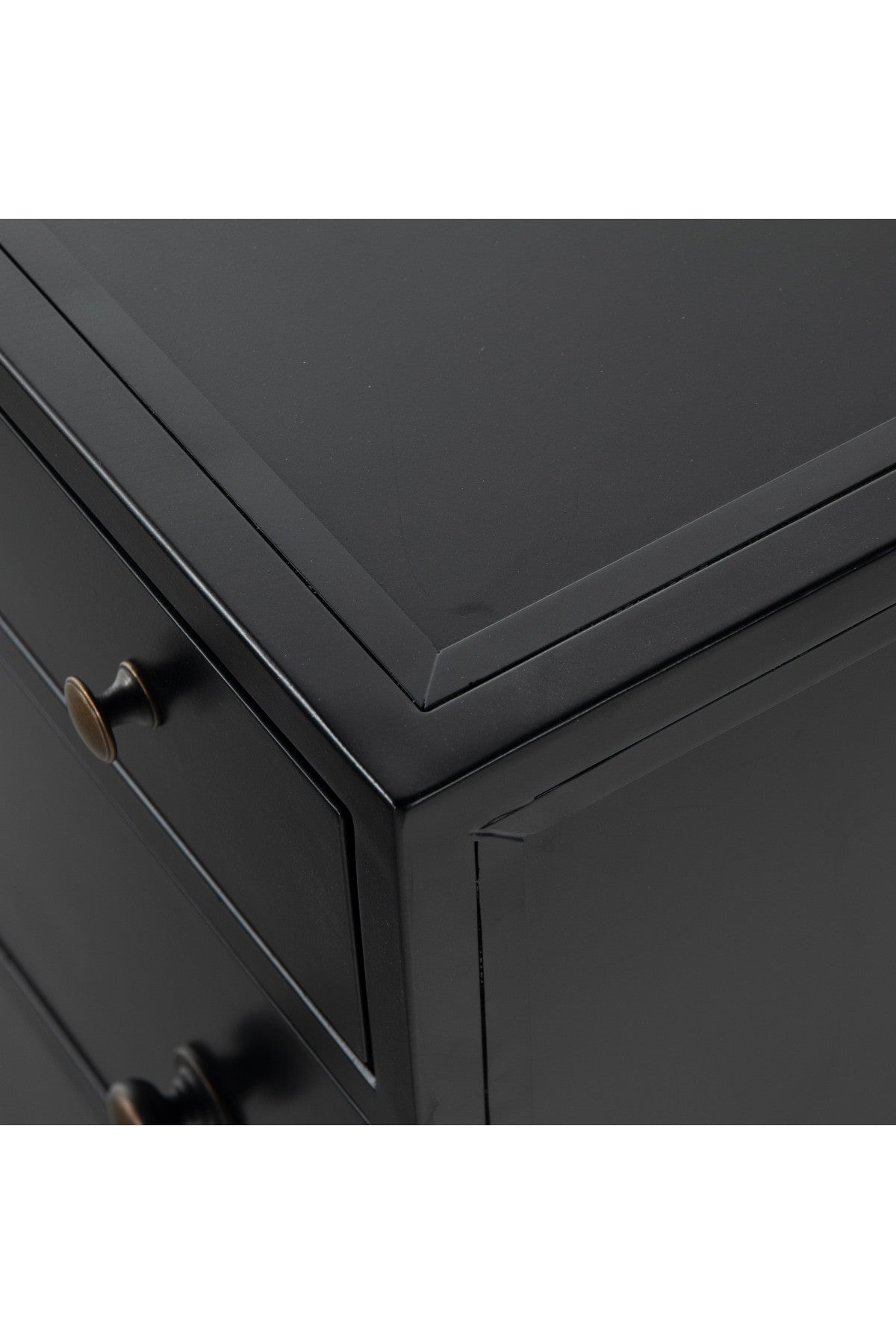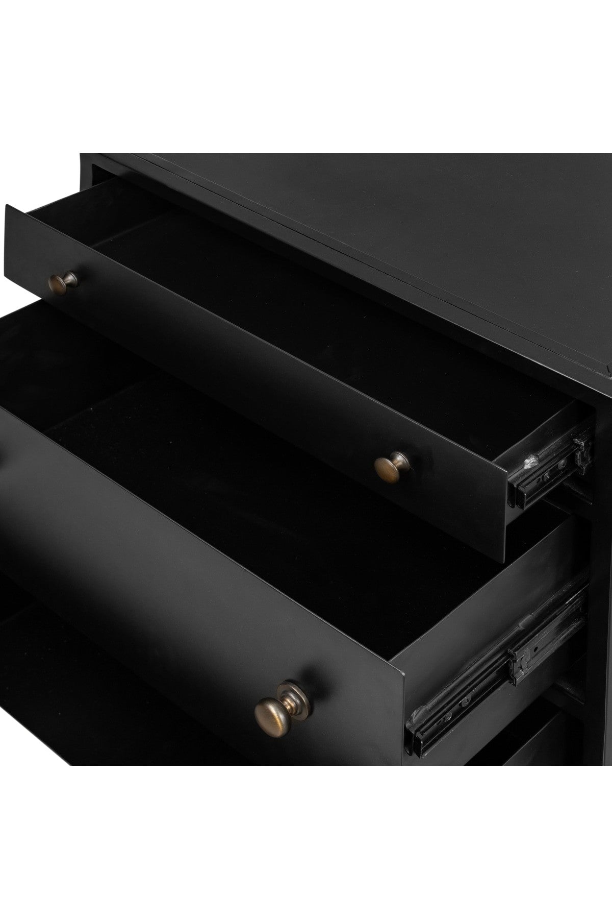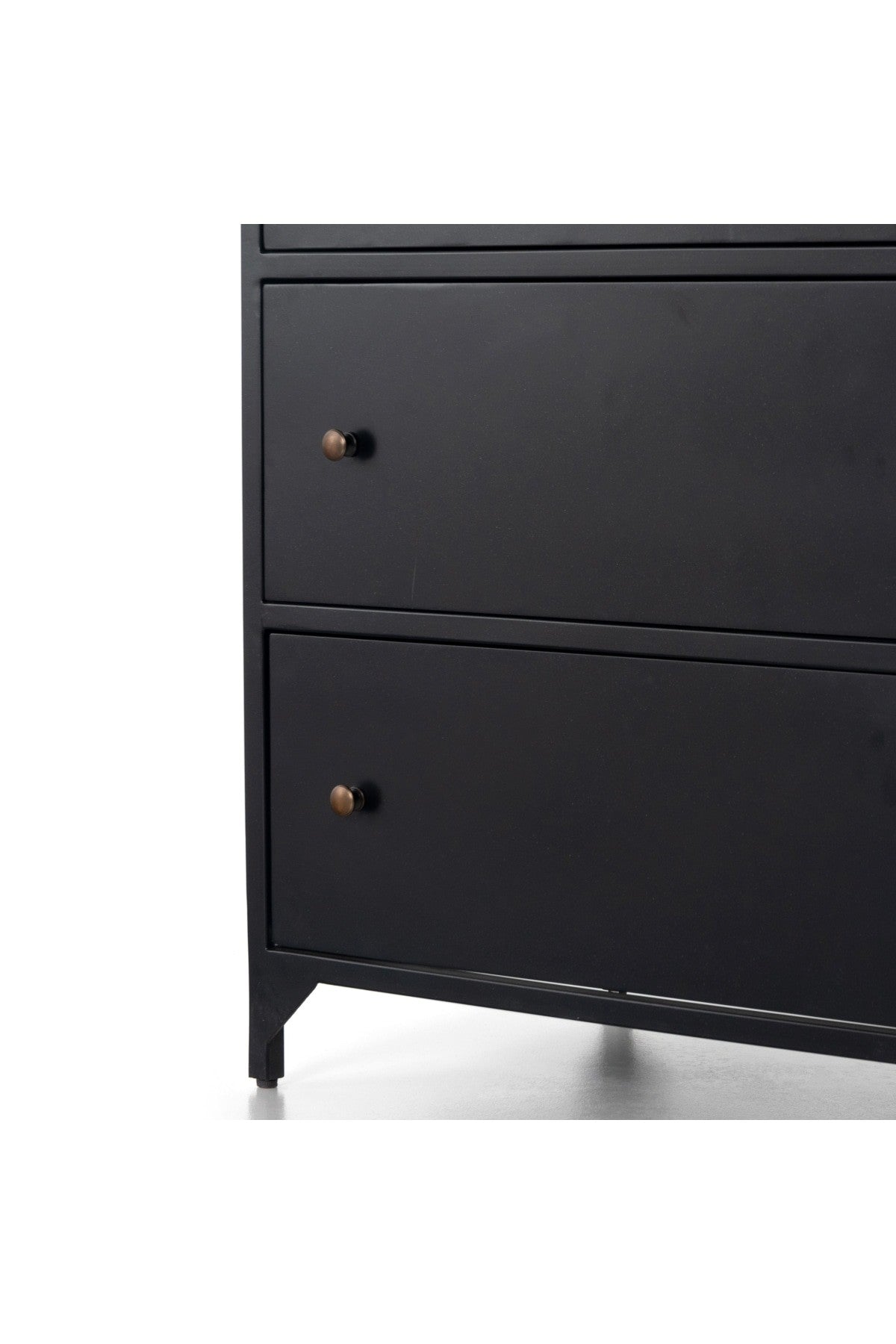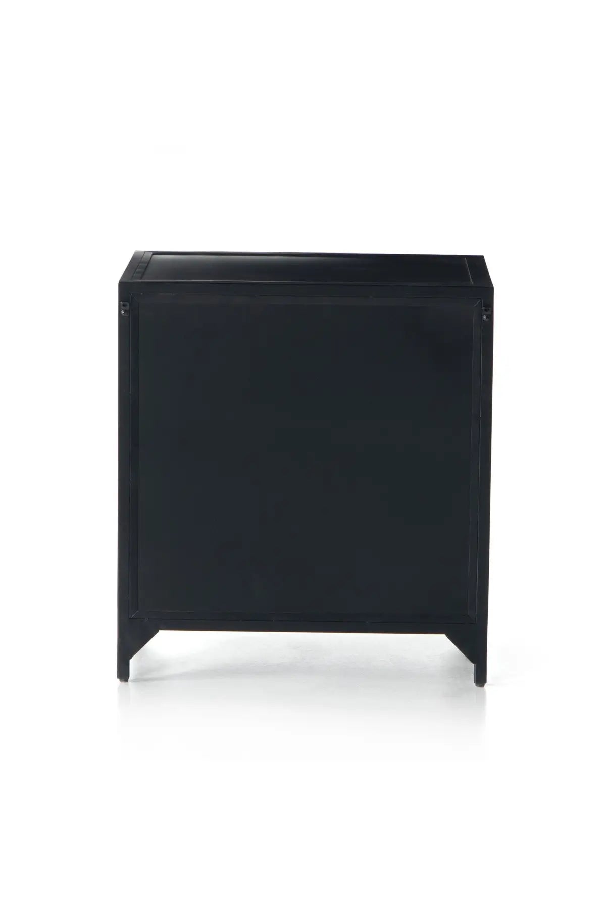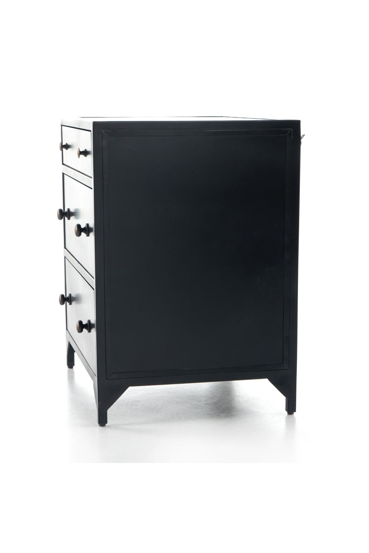 Sleek and industrial-inspired, black iron forms the spacious Belmont Storage Nightstand, with and brass knobs for cool contrast. Great solo or doubled up for stylish bedside storage.