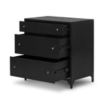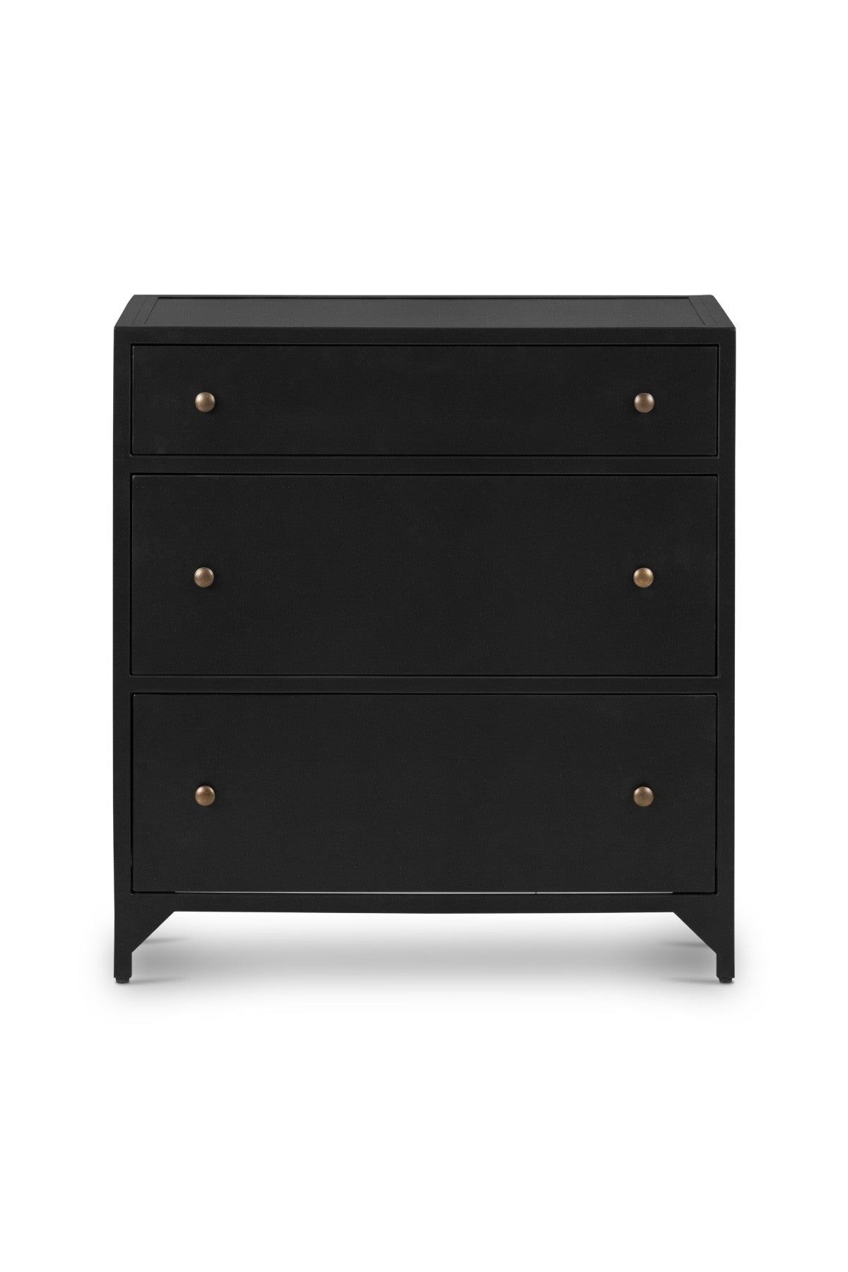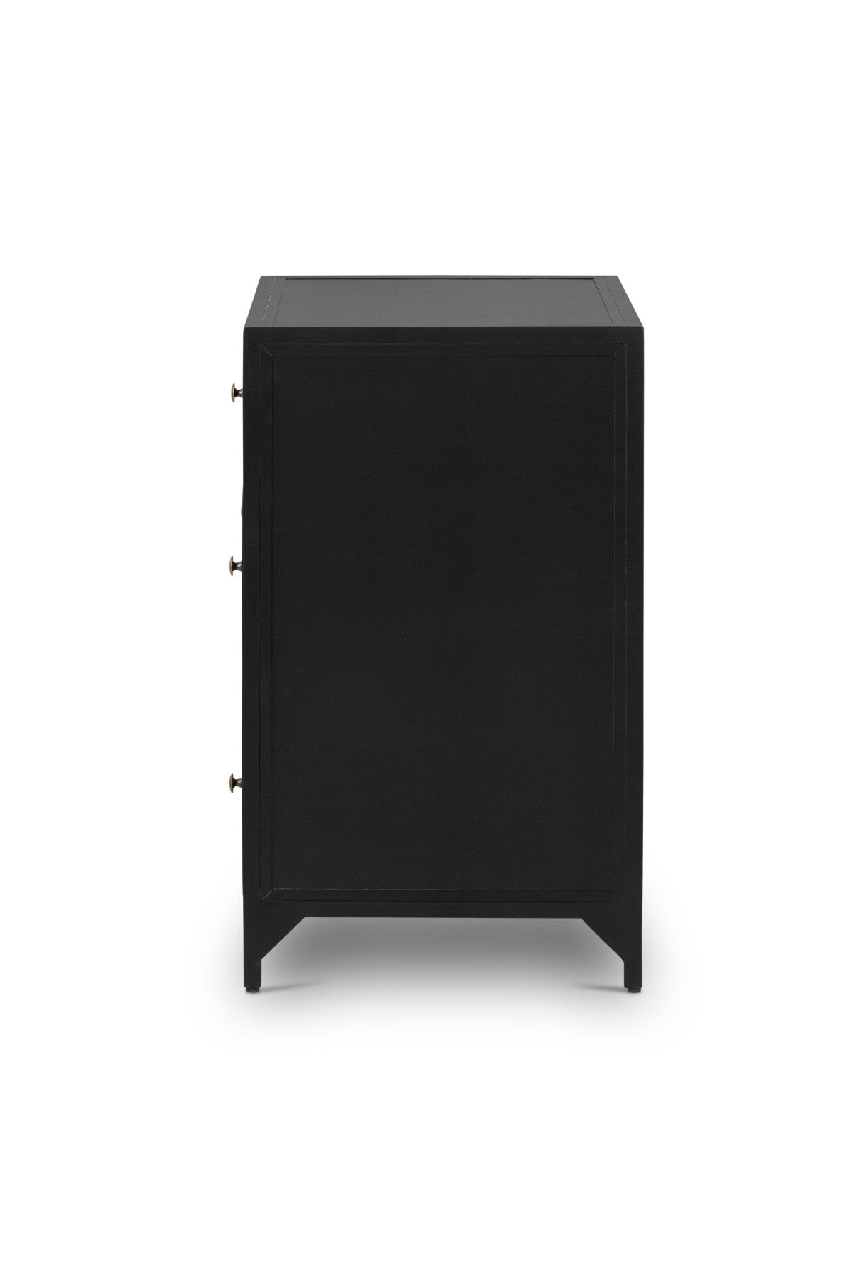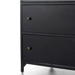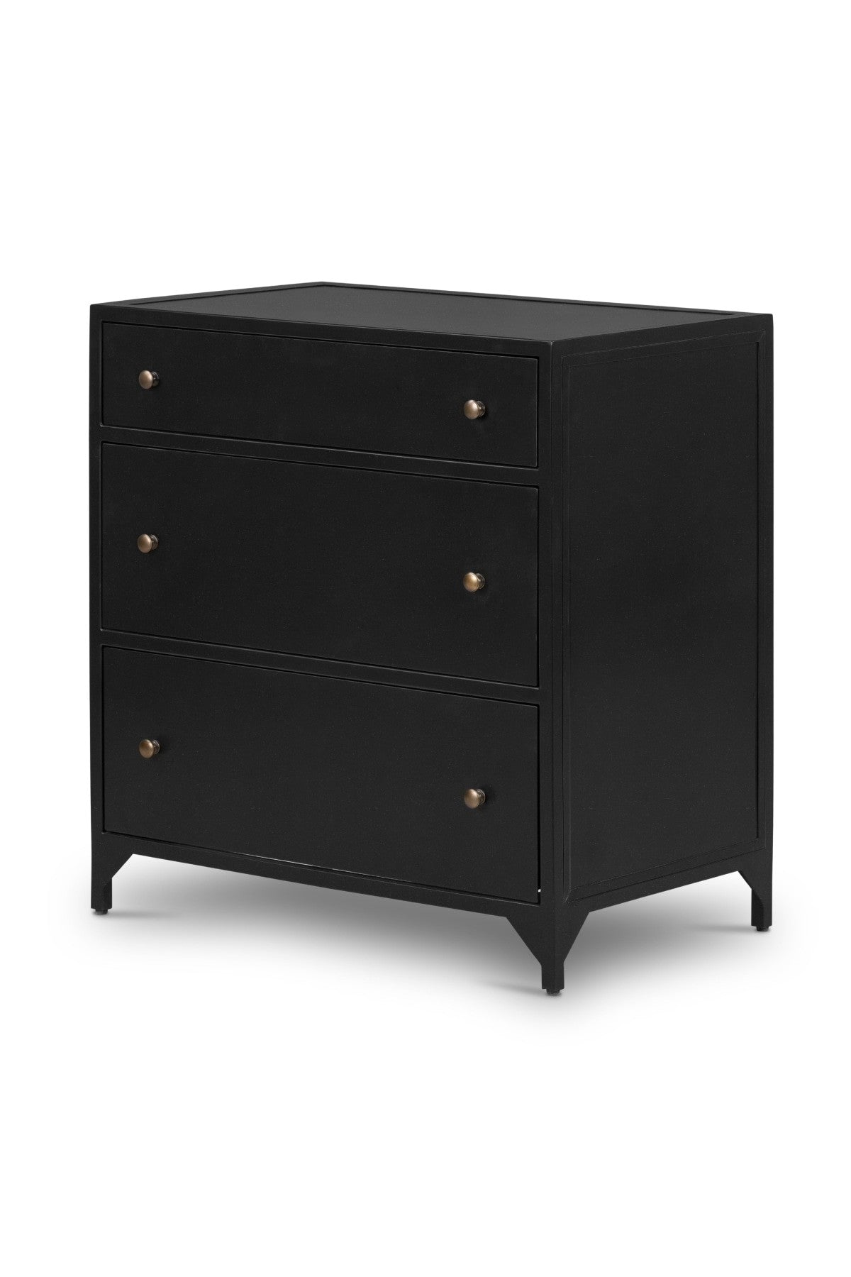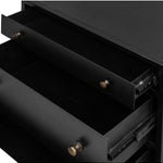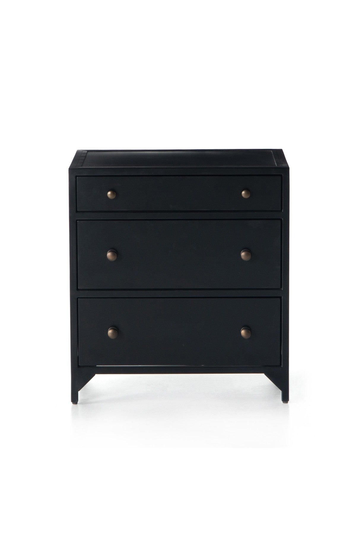 Sleek and industrial-inspired, black iron forms the spacious Belmont Storage Nightstand, with and brass knobs for cool contrast. Great solo or doubled up for stylish bedside storage.
