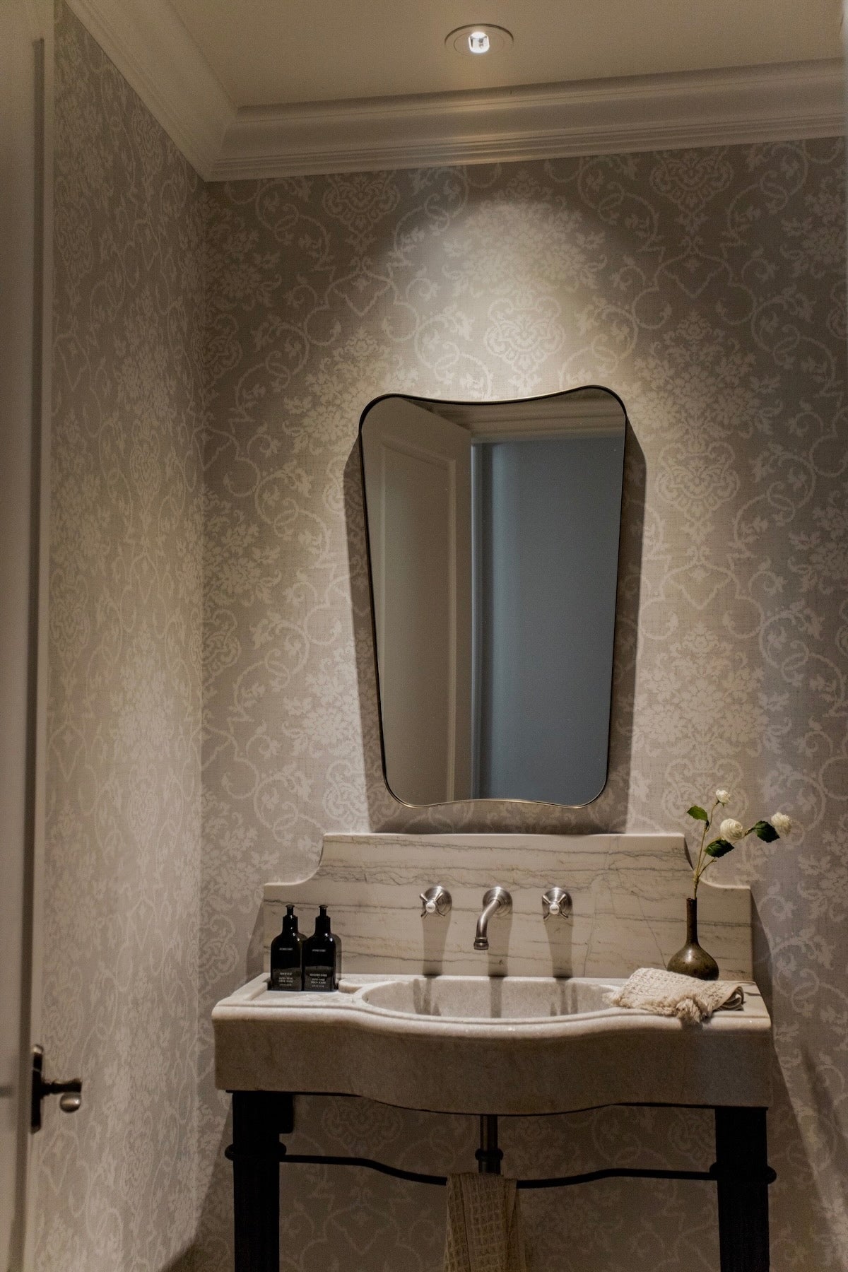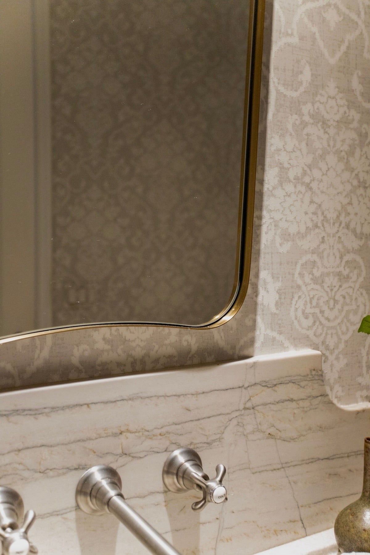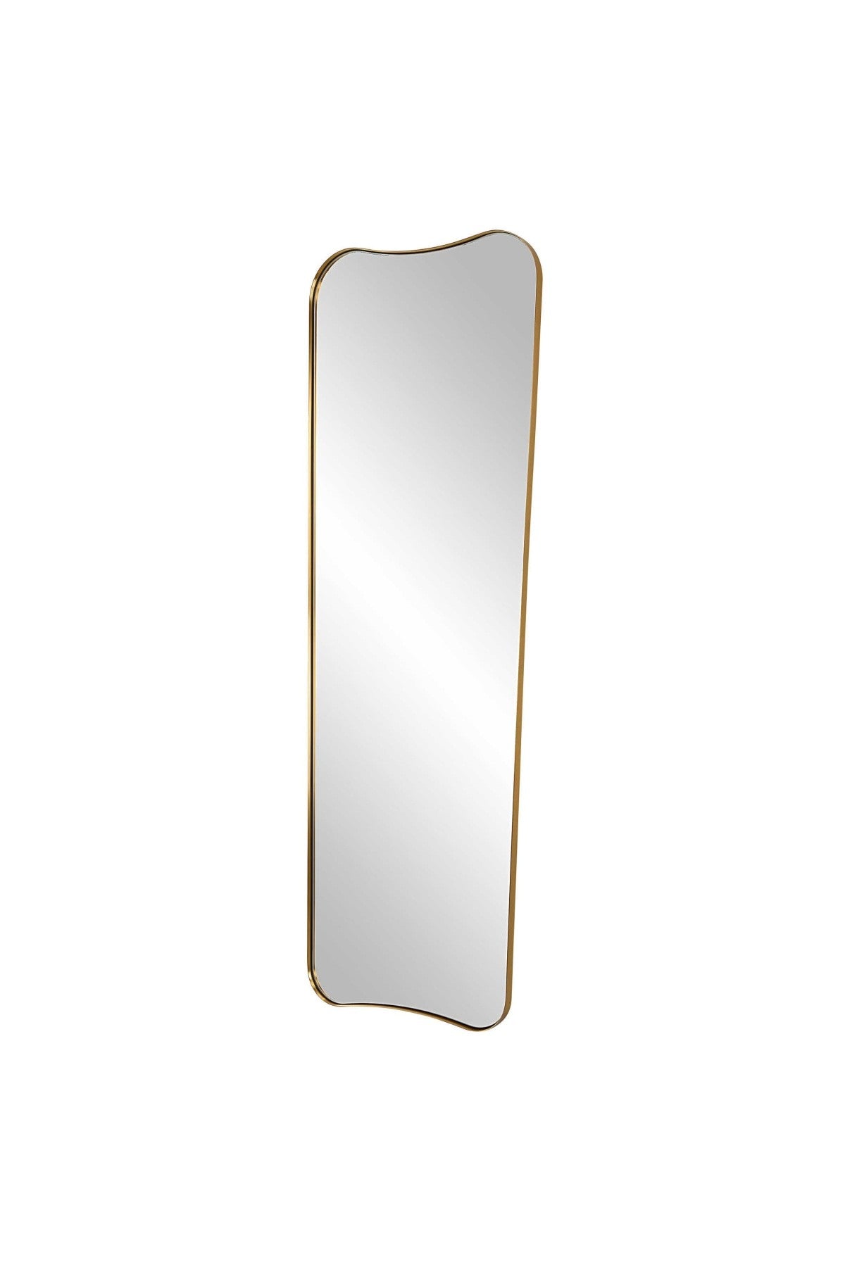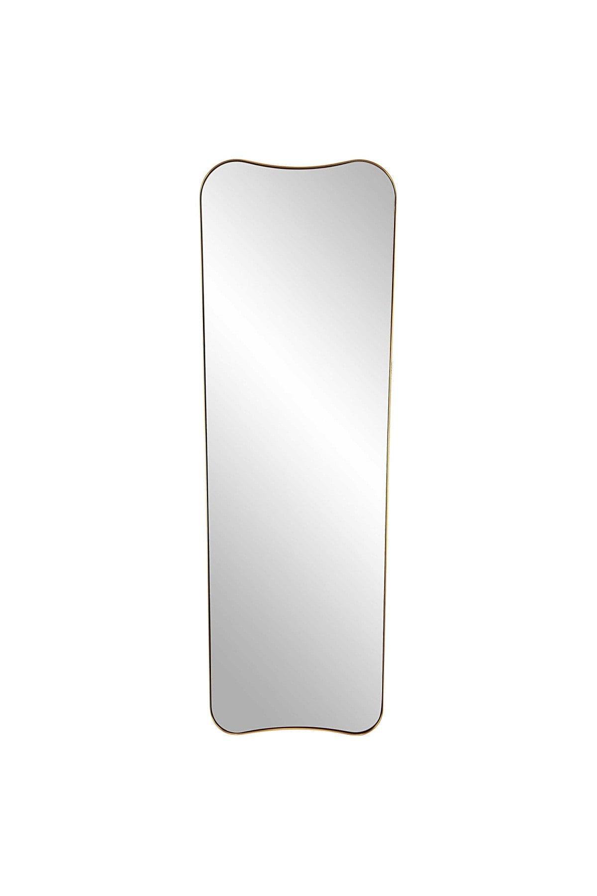 The Belvoir Mirror features a sophisticated stainless steel frame finished in a rich antique brass. The curved silhouette adds a contemporary feel to this piece.